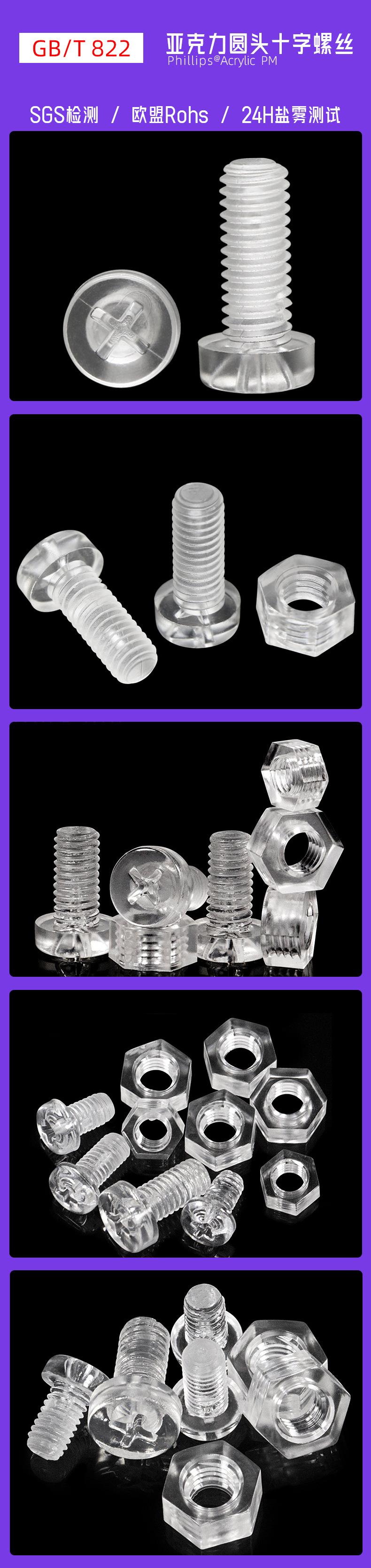 Tornillo de plástico acrílico transparente PMMA M2-M6, cabeza redonda, con aislamiento cruzado, para máquina de plástico, tuerca