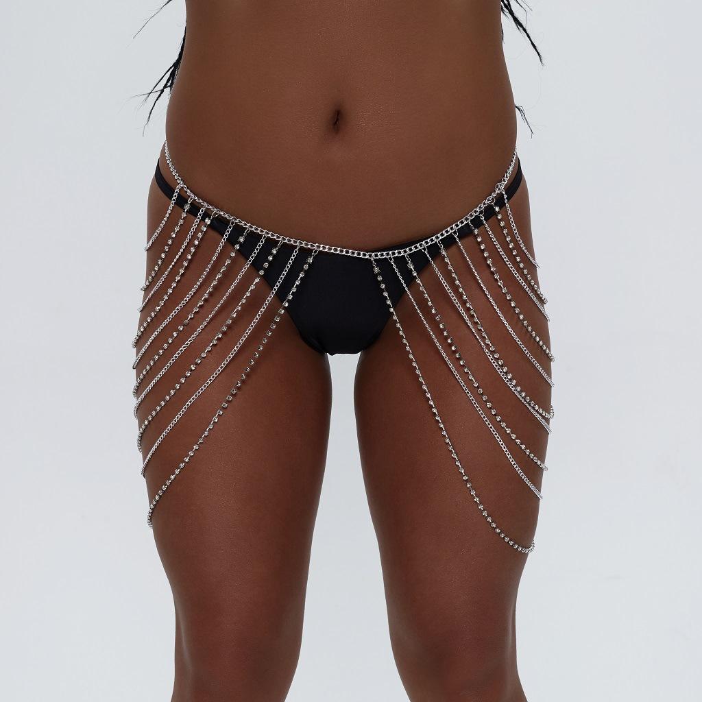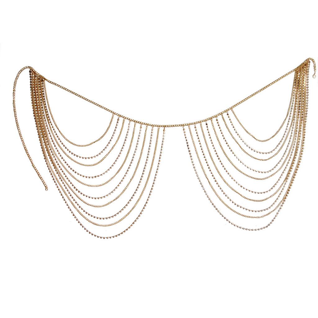 Cadena de cintura multicapa de verano con joyas transfronterizas, cadena de cuerpo de aleación europea y americana con diamantes de imitación sexy para discoteca, cadena de cuerpo femenina