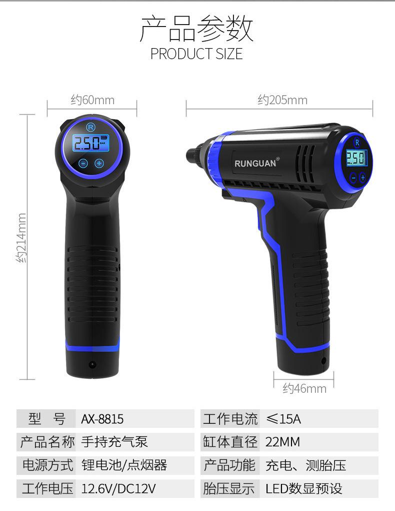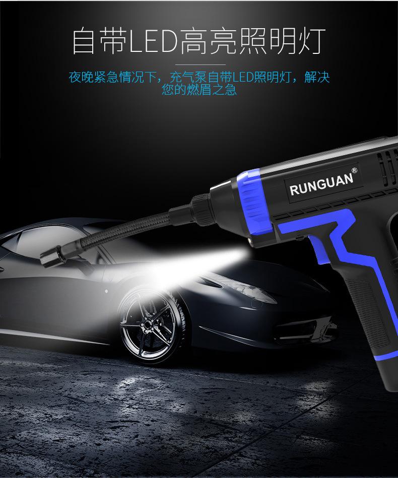Wired hand-held air pump (cigarette lighter to take electricity), Wireless handheld inflatable pump (USB charging)