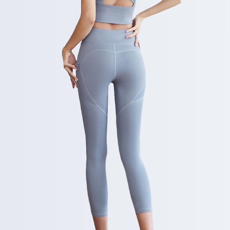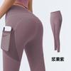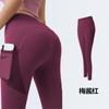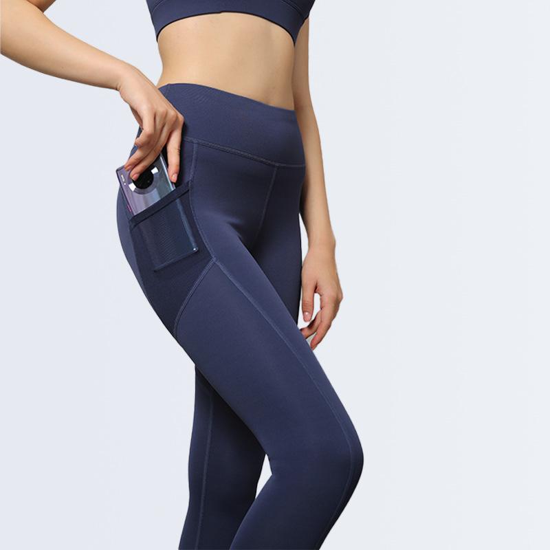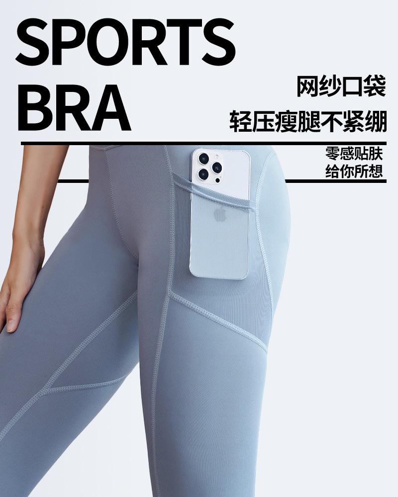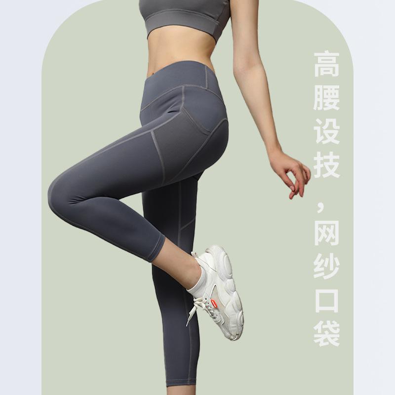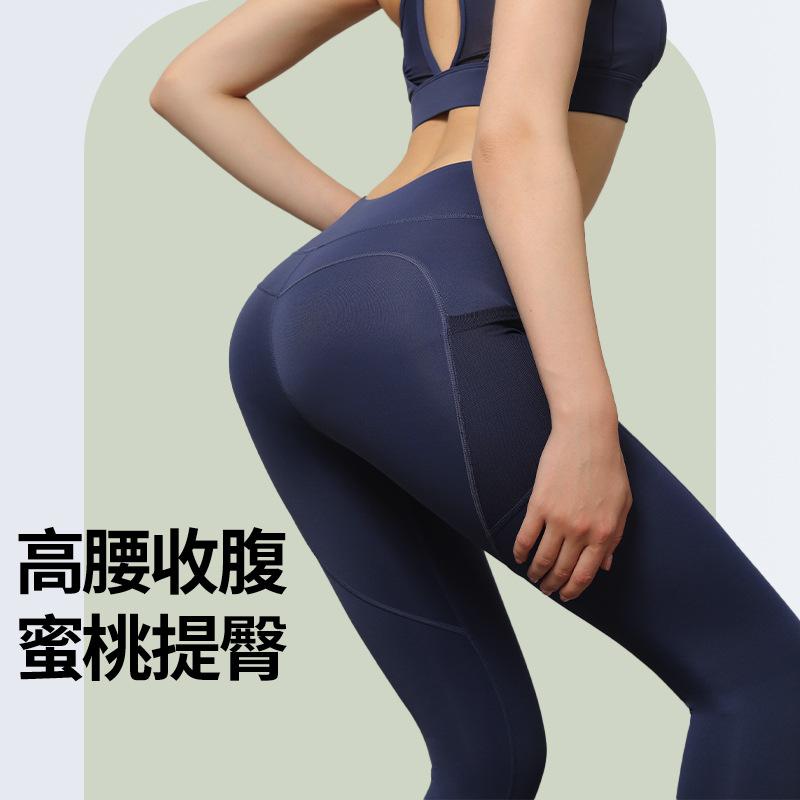 Pantalones de yoga de malla con bolsillos laterales para mujer, de verano, de secado rápido, elásticos, color melocotón, para correr, yoga y fitness.