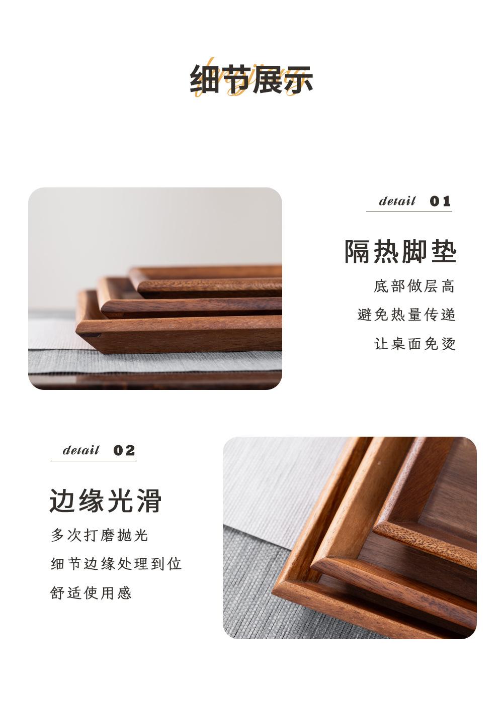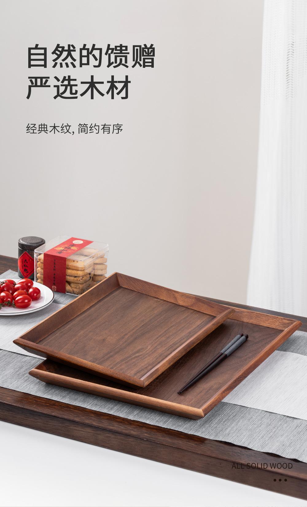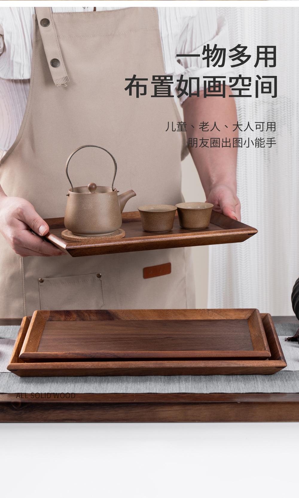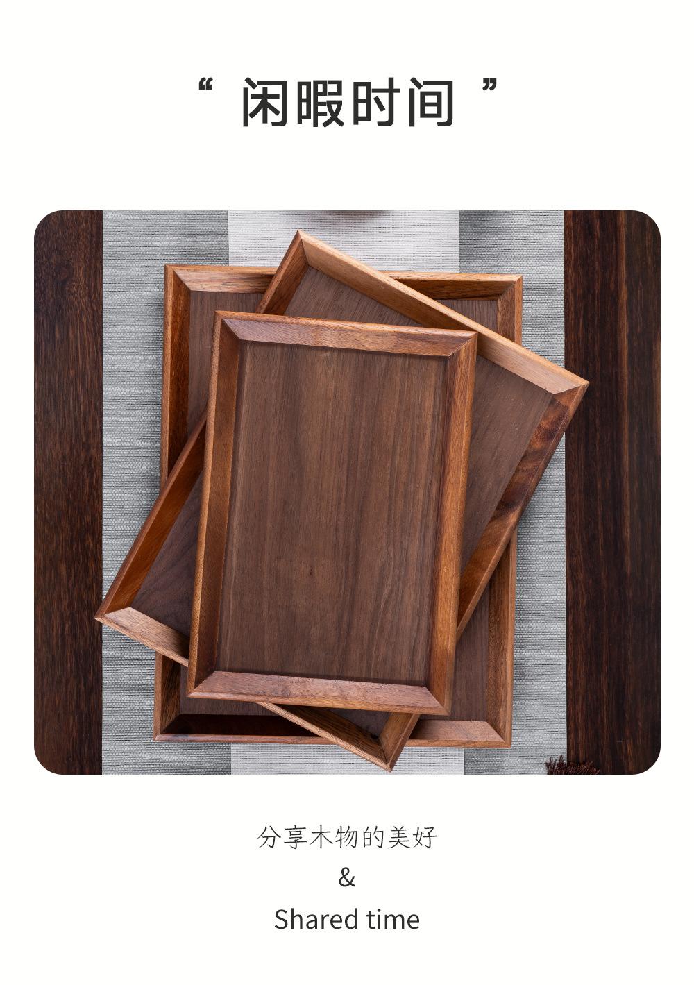 Bandeja rectangular de madera de nogal para el hogar, sencilla, de fábrica, venta al por mayor, para hotel, plato de comida, plato de fruta, madera maciza