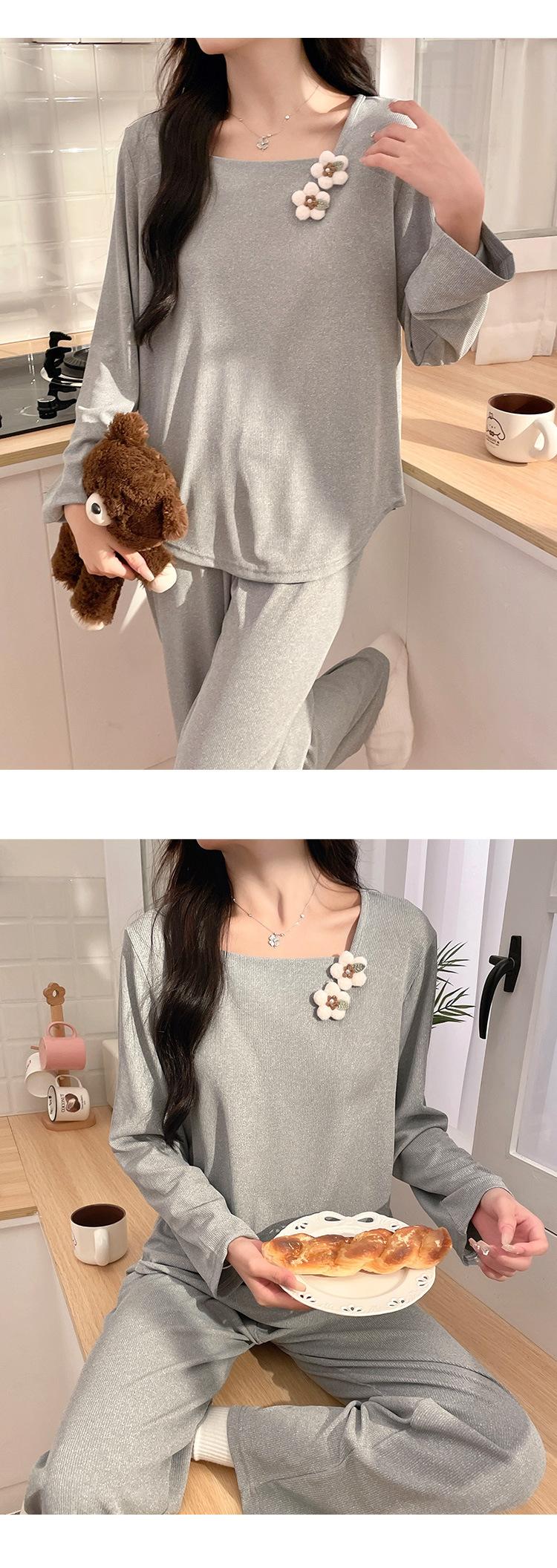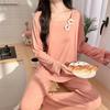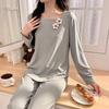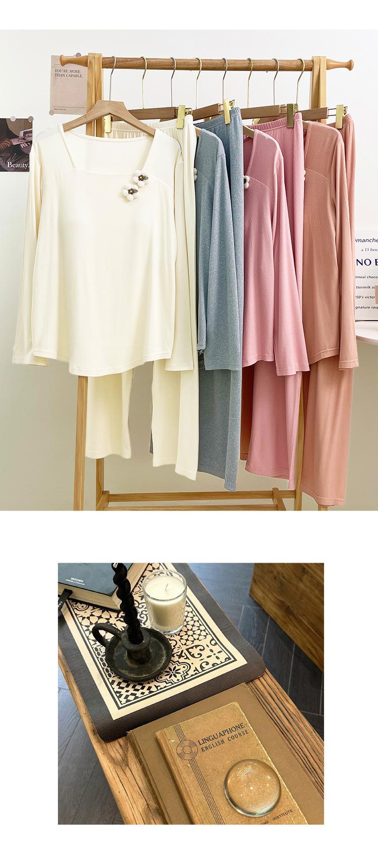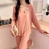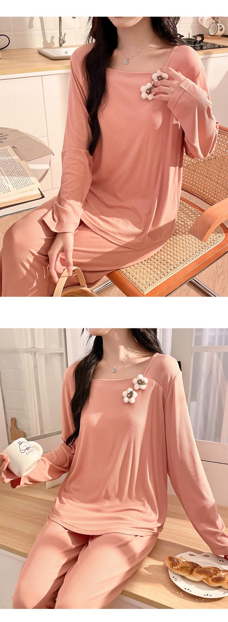 Pijama Modal para Mujer Primavera y Otoño Manga Larga con Almohadilla en el Pecho Cuello Redondo Sencillo Delgado Estilo Coreano Holgado Traje Ropa de Casa