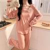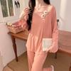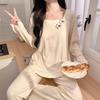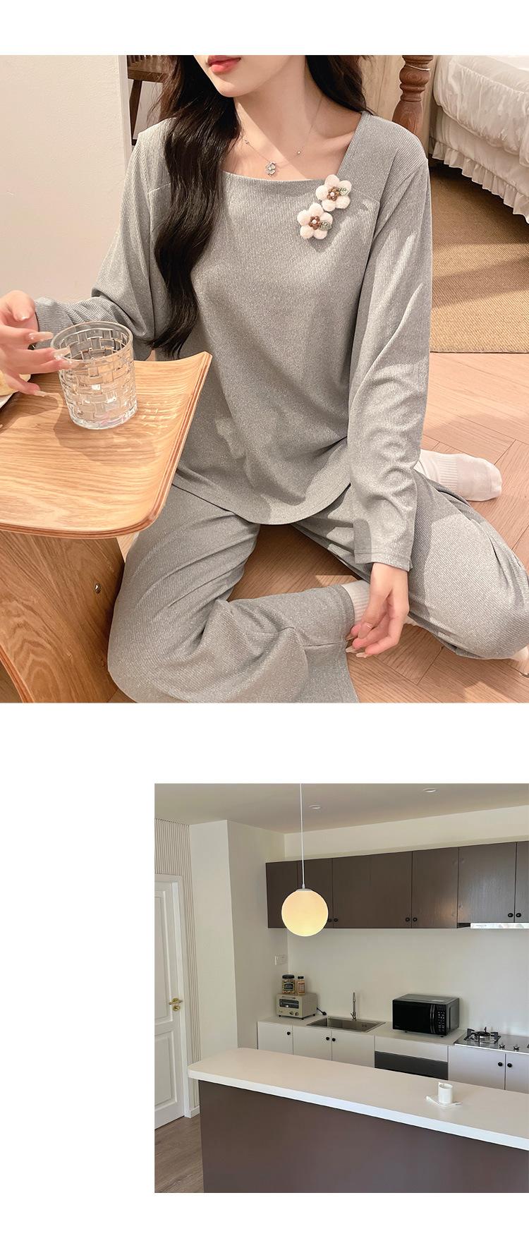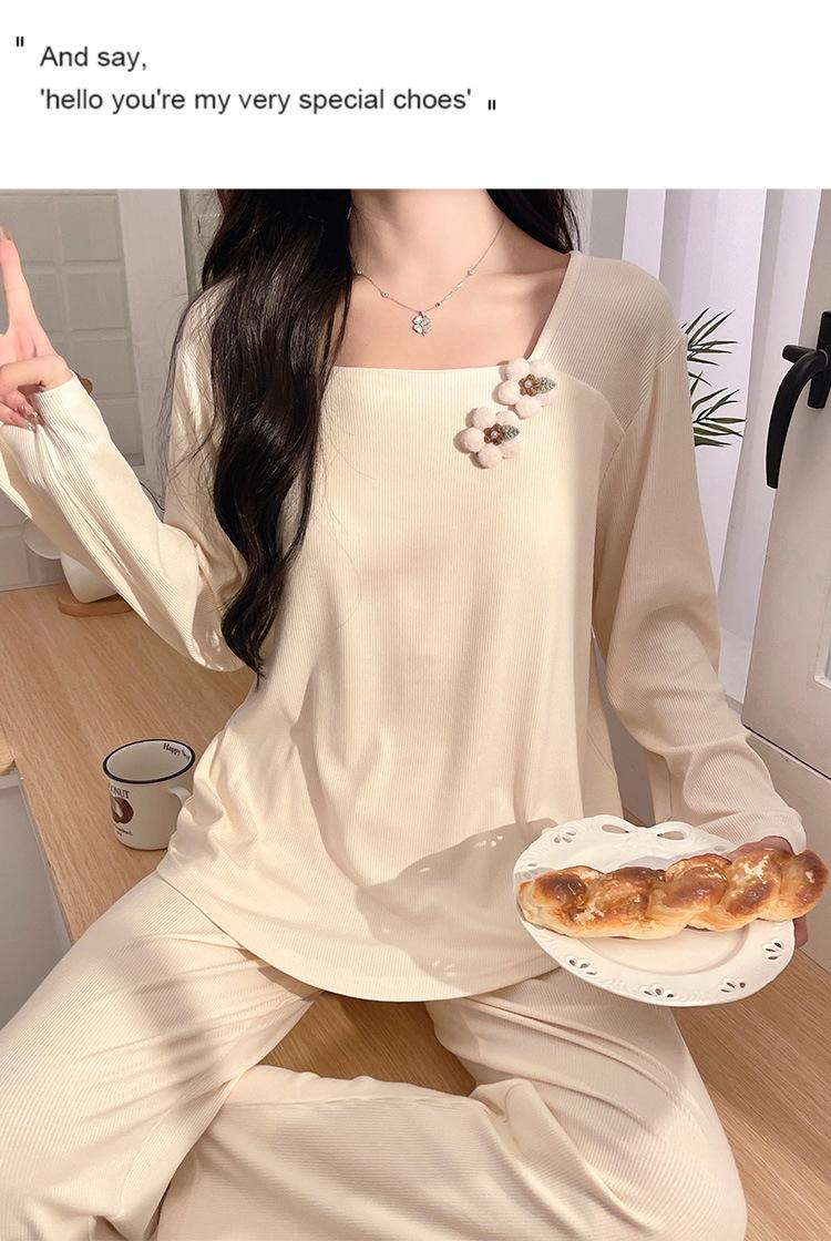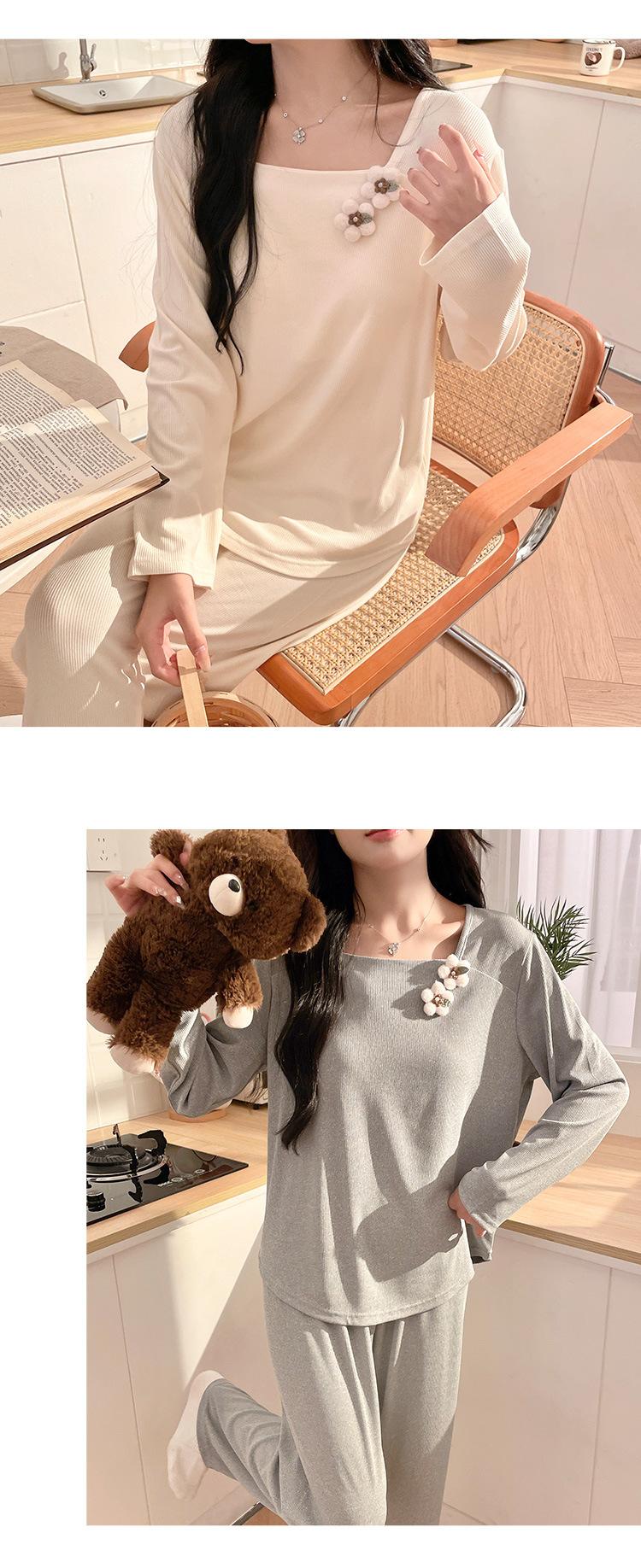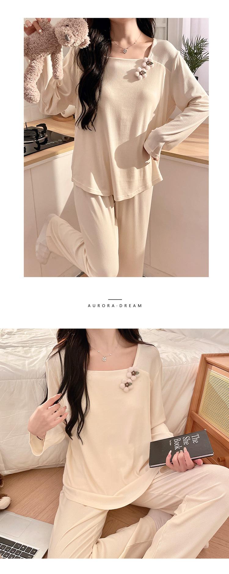 Pijama Modal para Mujer Primavera y Otoño Manga Larga con Almohadilla en el Pecho Cuello Redondo Sencillo Delgado Estilo Coreano Holgado Traje Ropa de Casa