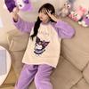 Pijamas Lindos para Mujer Otoño e Invierno Vellón Coral Cuello Redondo Ropa para el Hogar Traje Pulóver de Medio Terciopelo Forrado de Vellón Espesado Nuevo