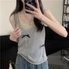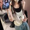 Estilo Perezoso Color Contrastante Chica Hot Dos Piezas Tirantes Nuevo Chaleco Verano Lazo Rizado Tejido Agujero Top Exterior