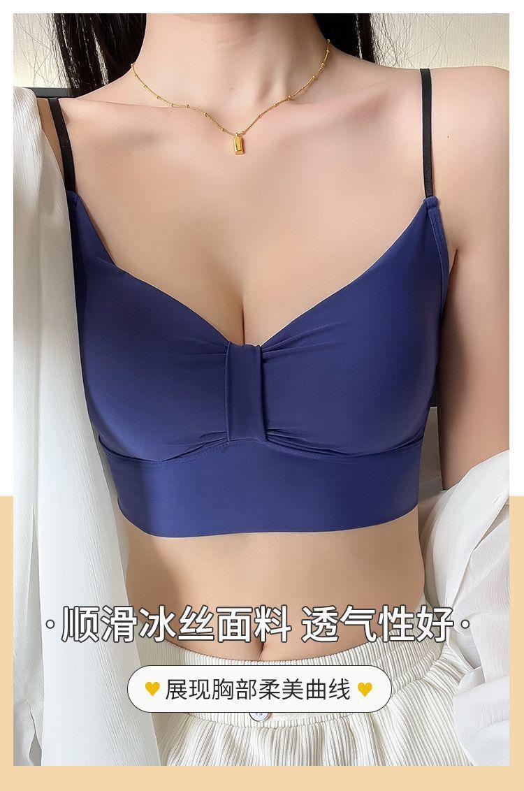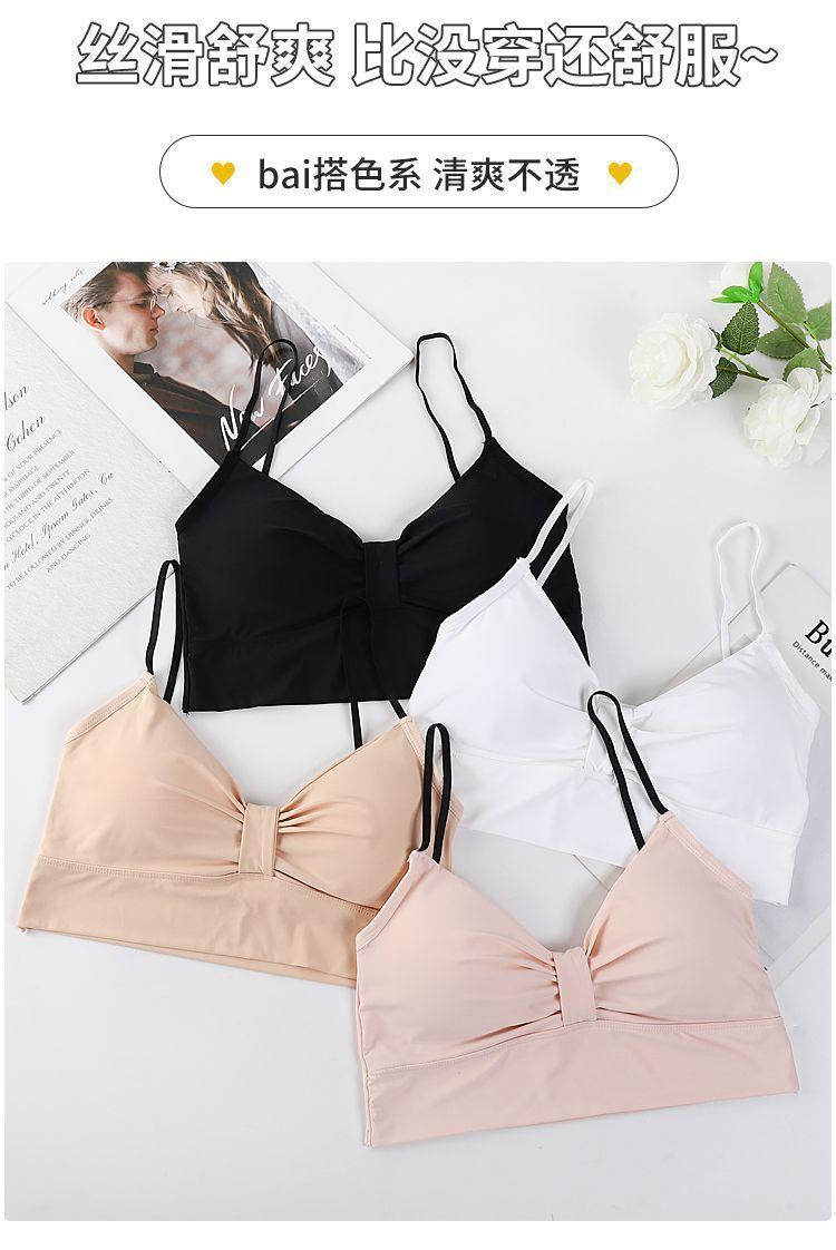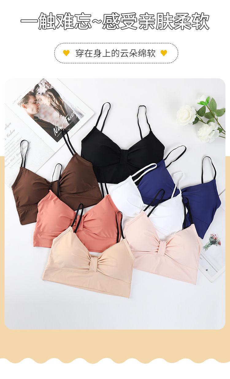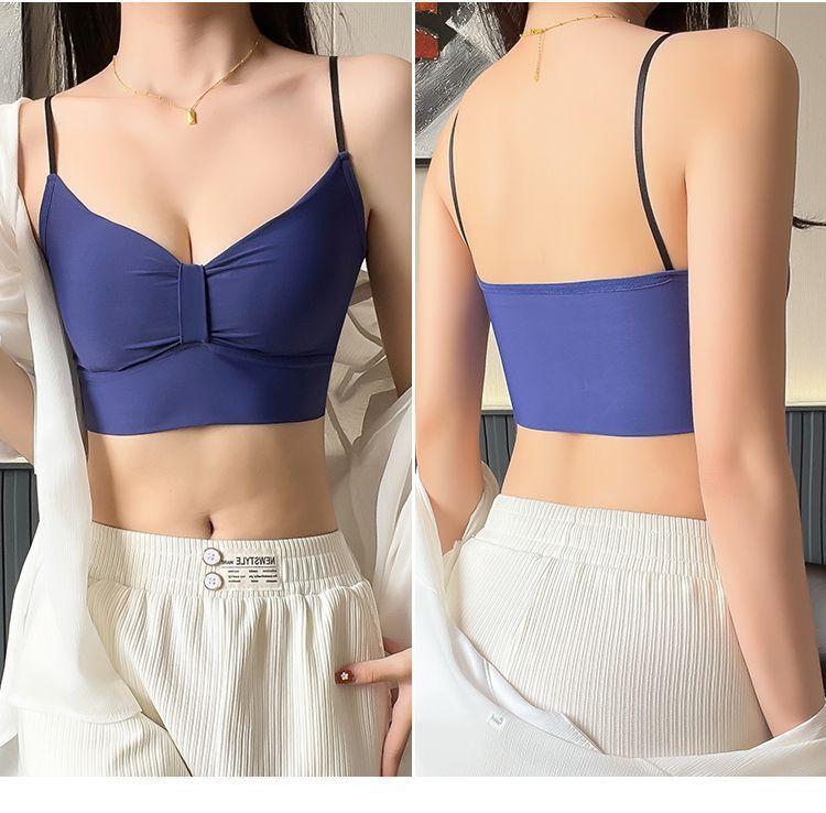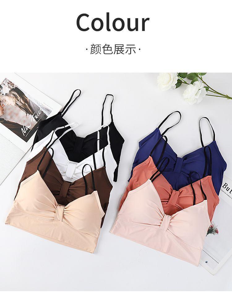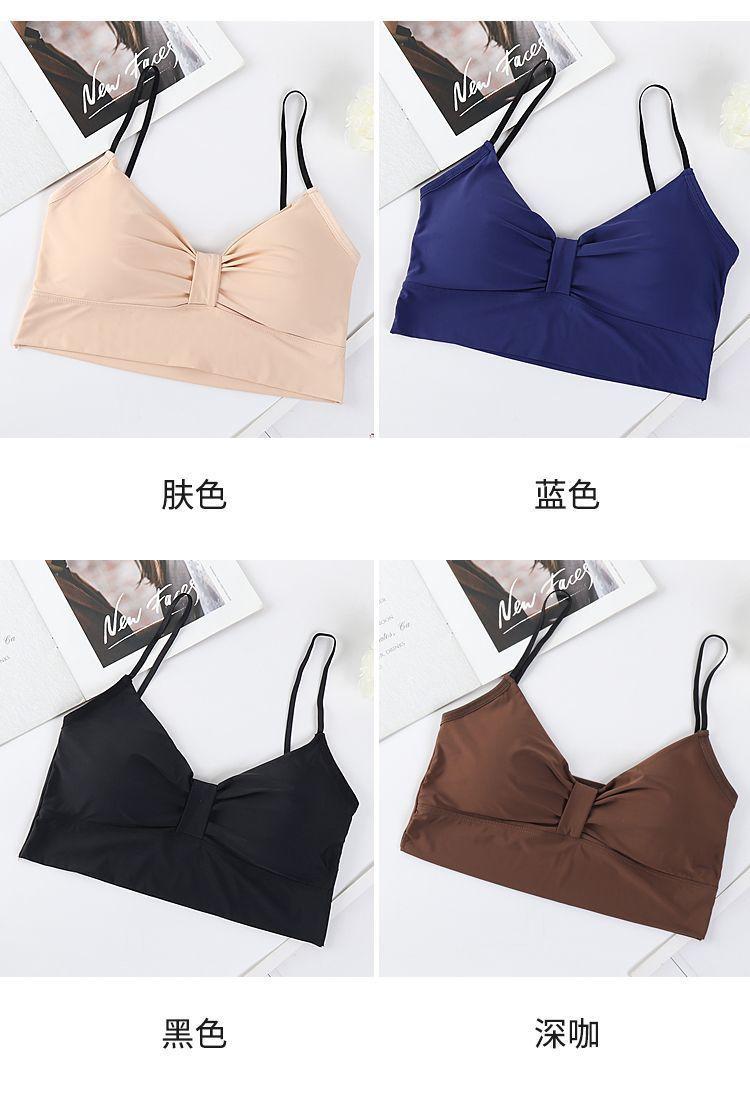 Compra Seda de Hielo Color Contraste Lazo Tirante Pequeño Ropa Interior Espalda Hermosa Verano para Mujer Pecho Envuelto Sexy Plisado Copa Triangular Chaleco a Cuadros al por mayor en Joom.pro