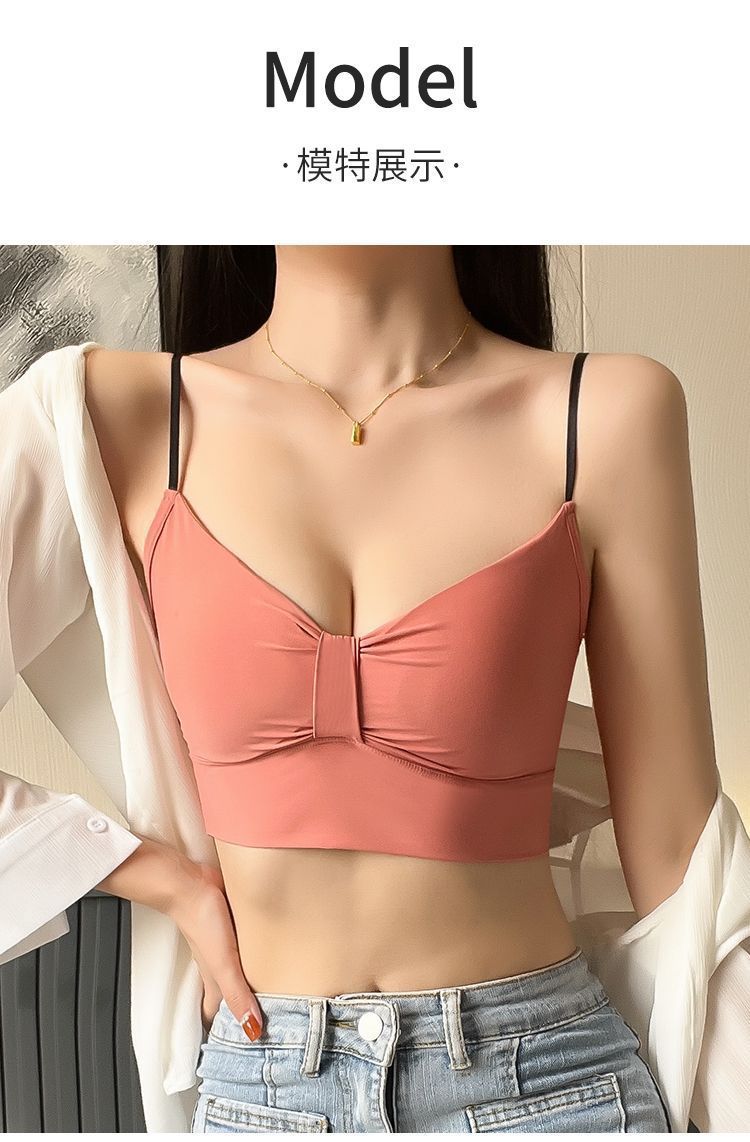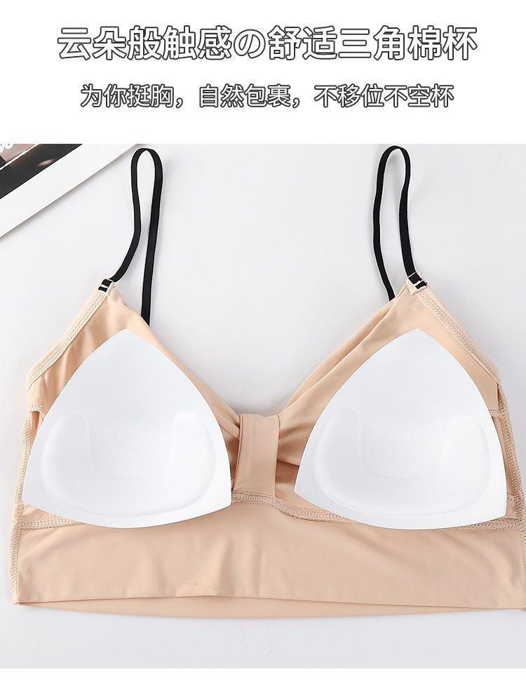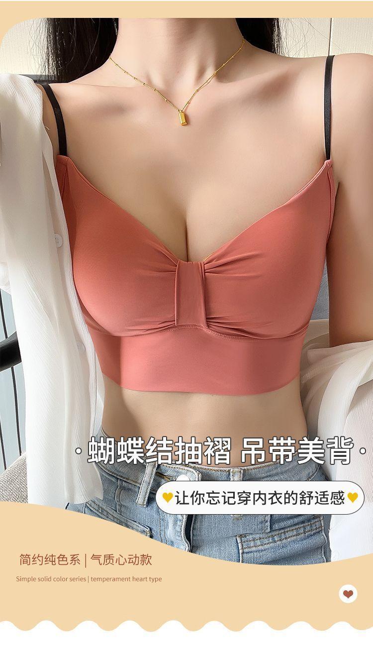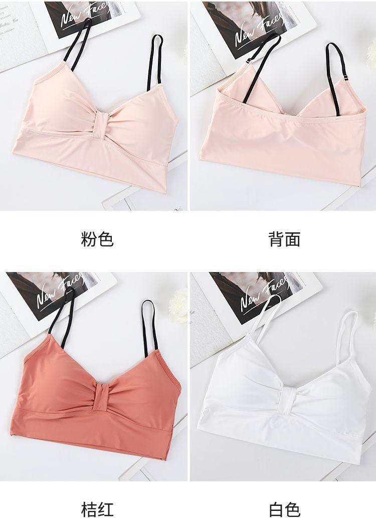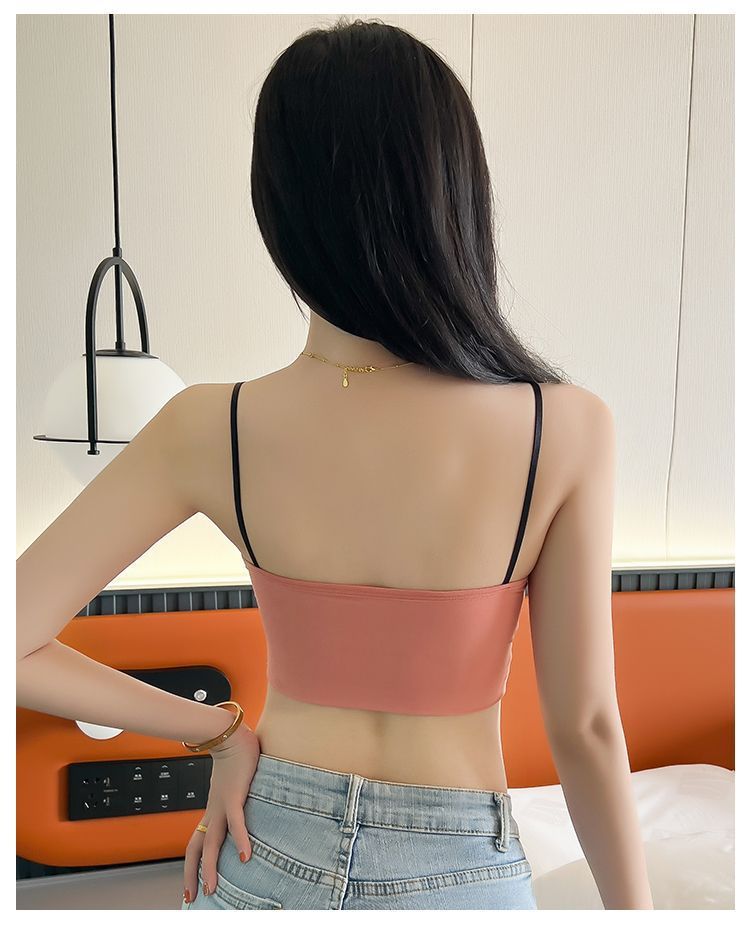 Compra Seda de Hielo Color Contraste Lazo Tirante Pequeño Ropa Interior Espalda Hermosa Verano para Mujer Pecho Envuelto Sexy Plisado Copa Triangular Chaleco a Cuadros al por mayor en Joom.pro