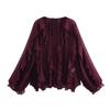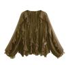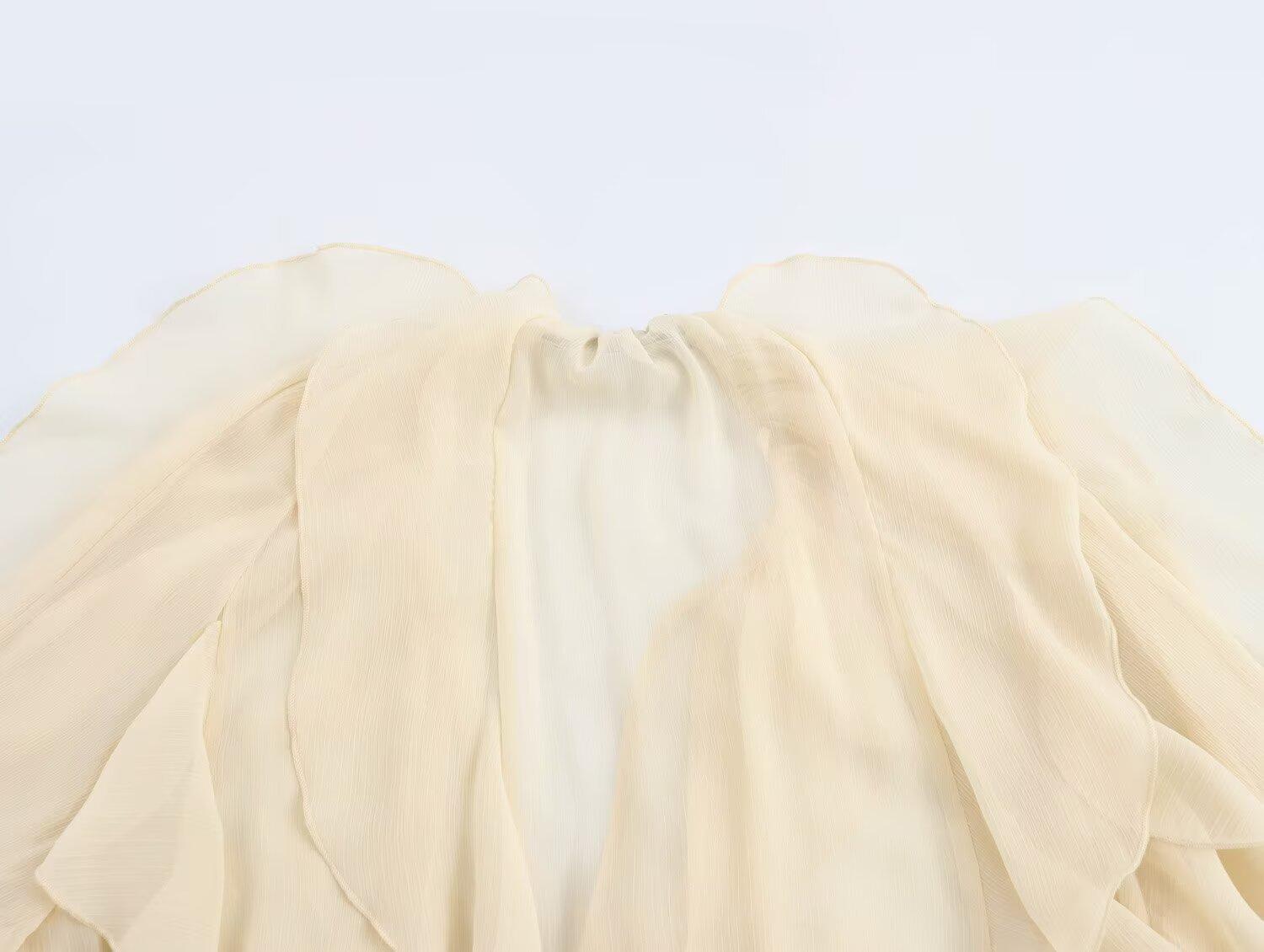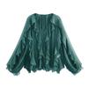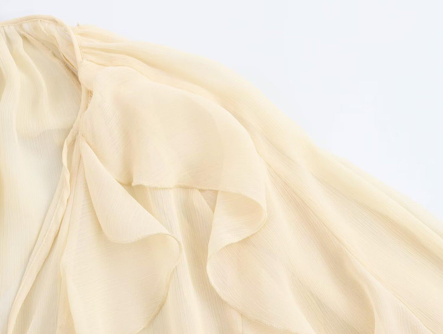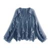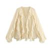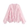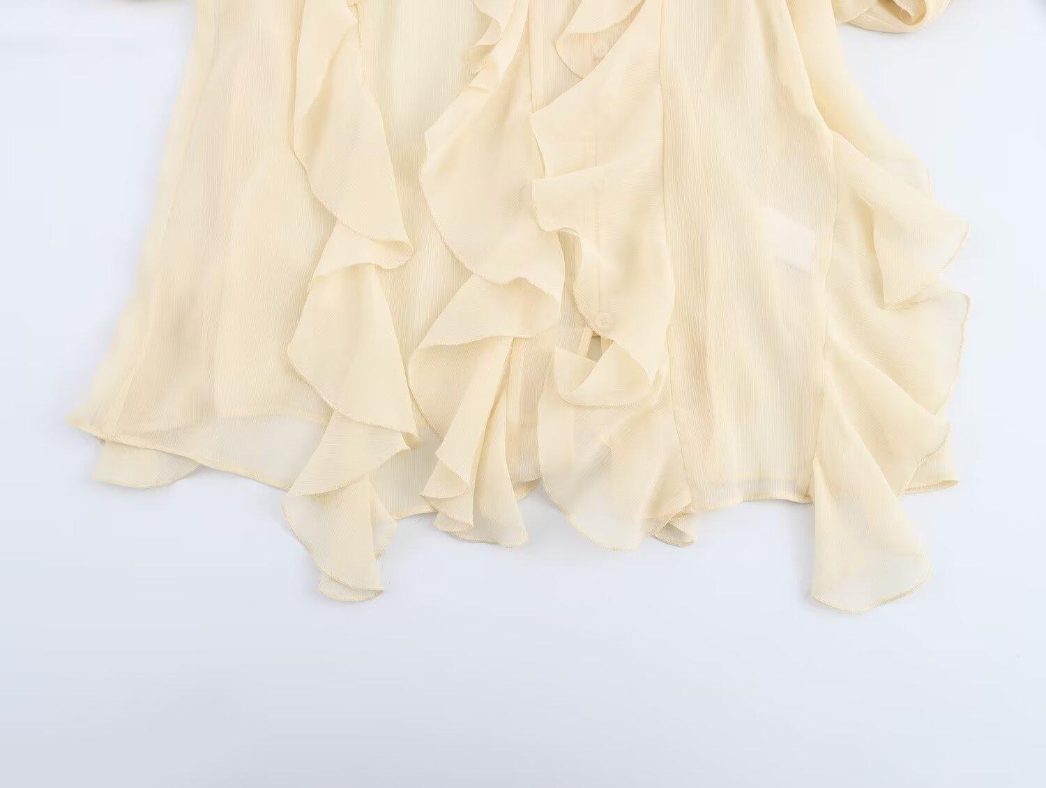 Camisa de gasa de manga larga con volantes, cuello en V, estilo europeo y americano, nueva primavera y verano de 2025 para mujer
