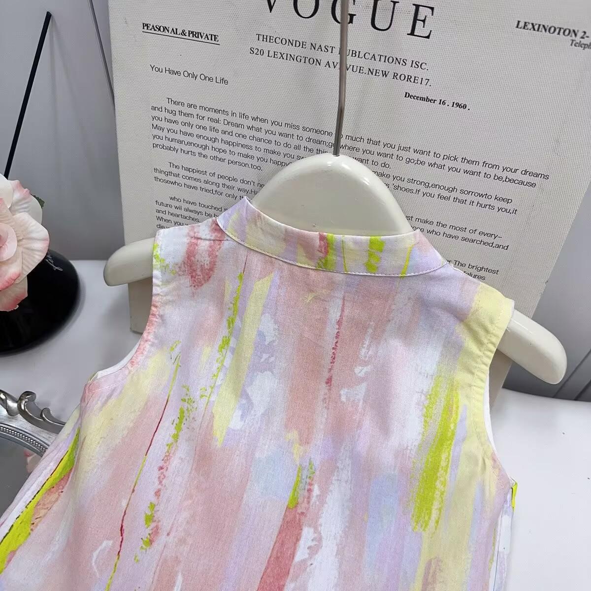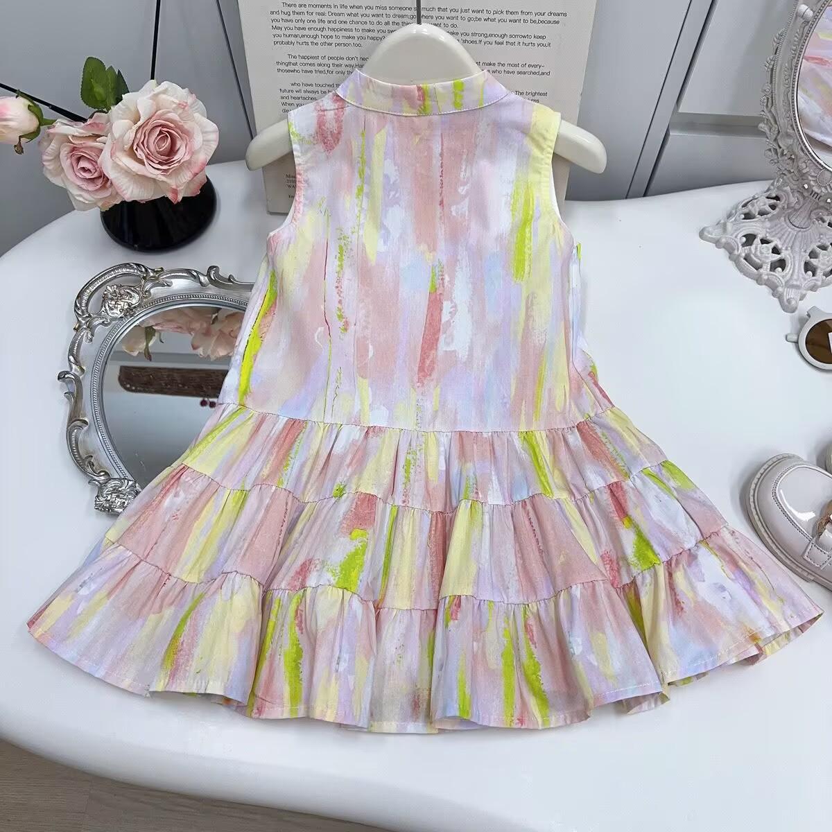 Vestido Arcoíris de Verano 2025 para Niñas Vestido Chaleco de Flores sin Mangas para Bebé Vestido Dulce de Princesa Cabello Transfronterizo