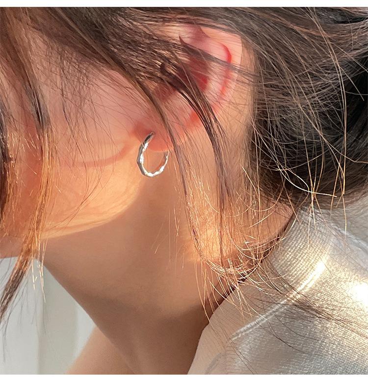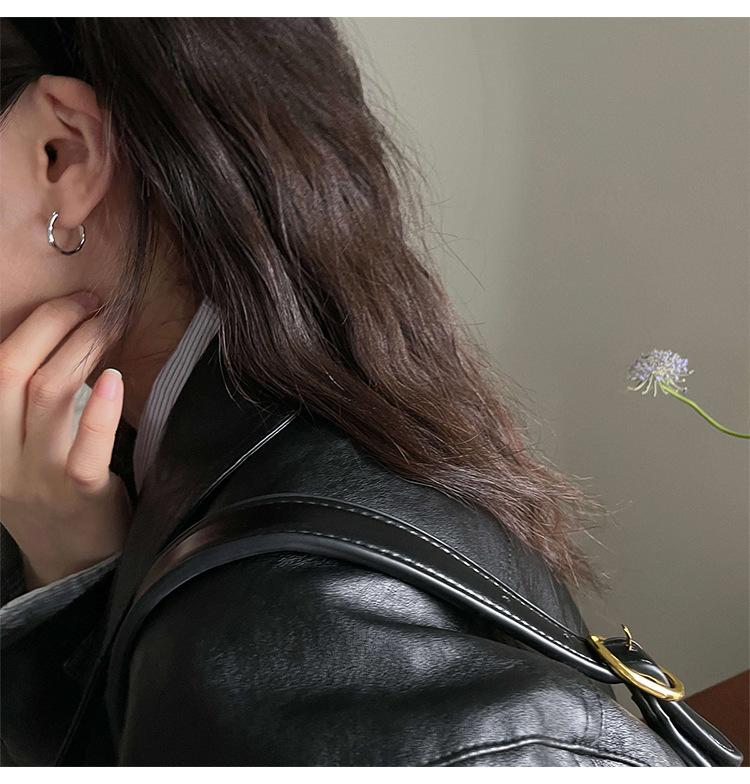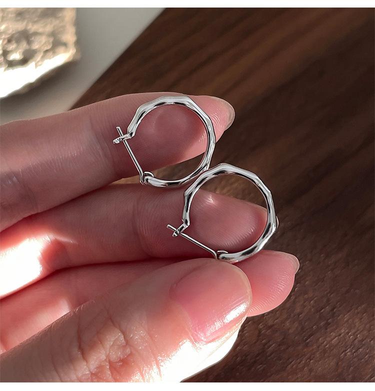 Pendientes de aro sencillos, diseño de nicho de alta gama, pendientes sencillos con temperamento, pendientes de plata de estilo frío para mujer.