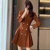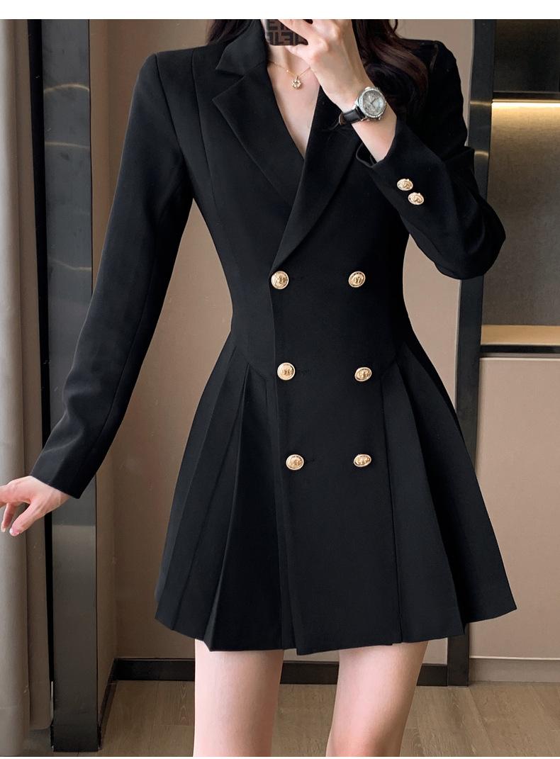Traje profesional de estilo universitario pequeño para ocasión formal, vestido de mujer 2025 nuevo de primavera y otoño, corte ajustado, doble botonadura, falda