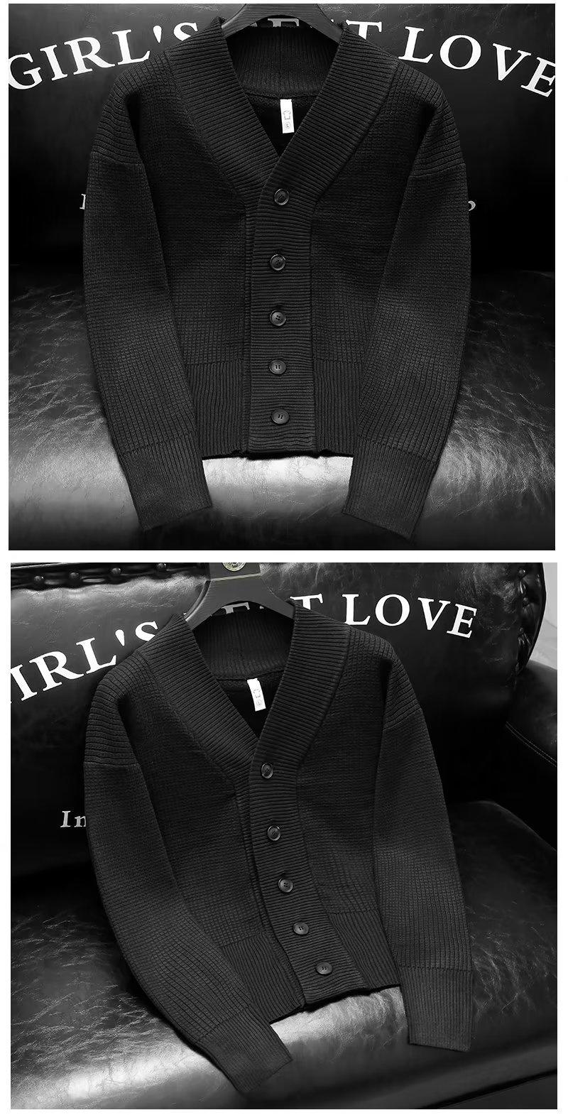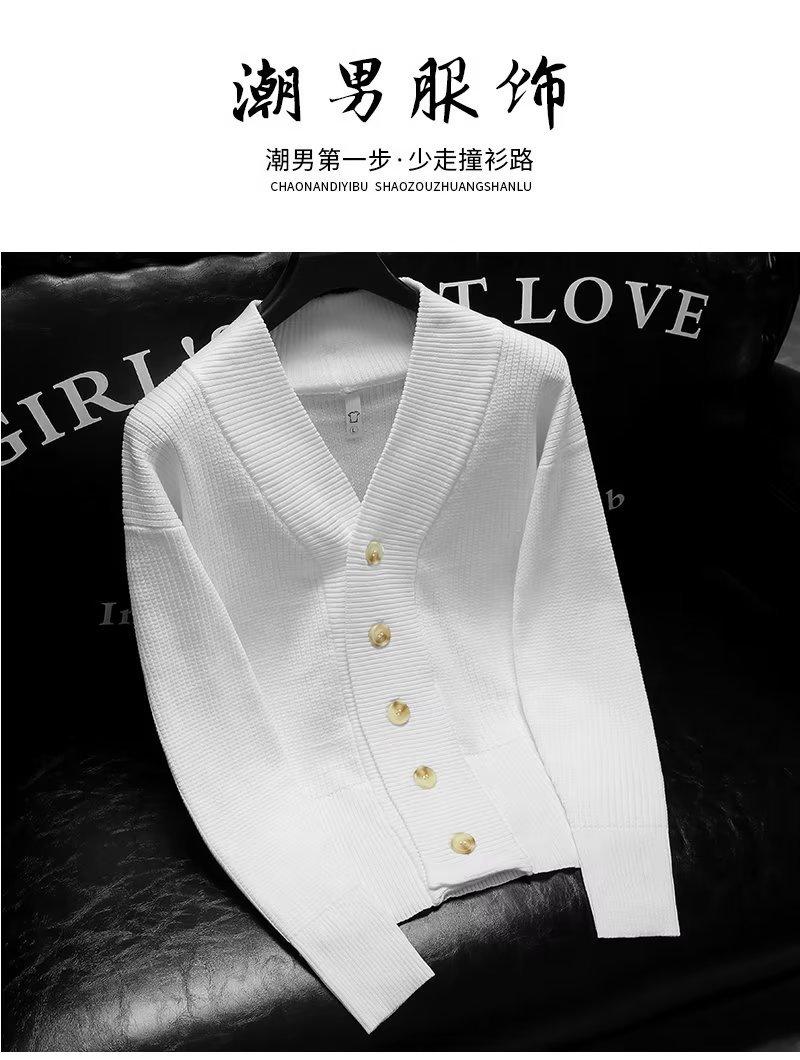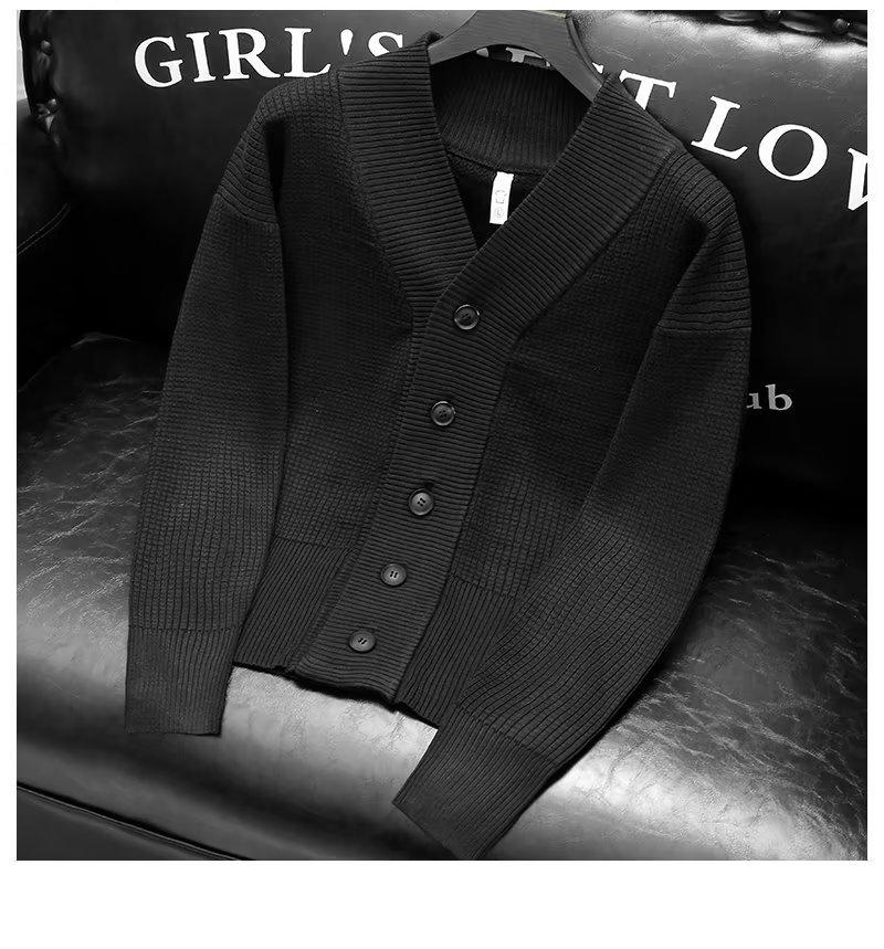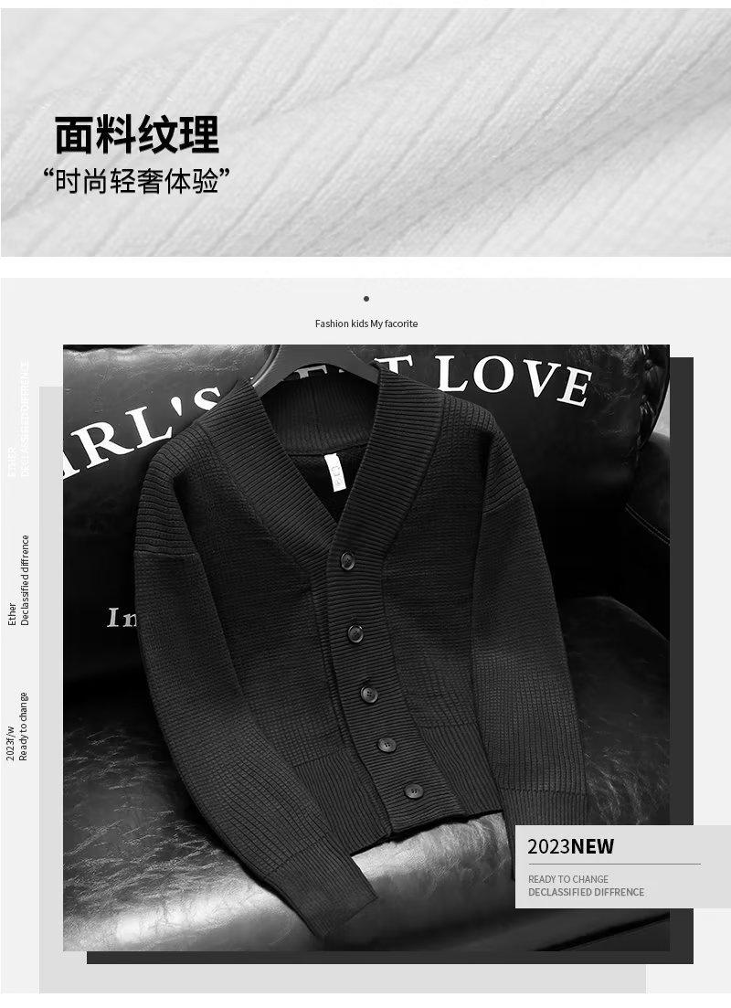 Cárdigan suéter nuevo de otoño 2023 para hombre, corto, estilo coreano, abrigo moderno personalizado, suéter con cuello en V, estilo británico