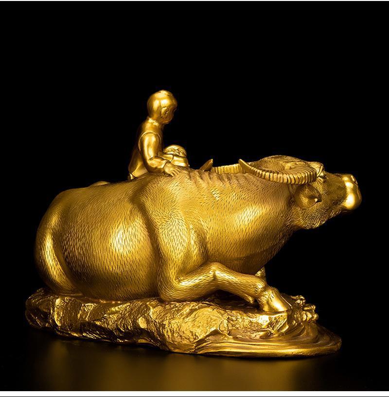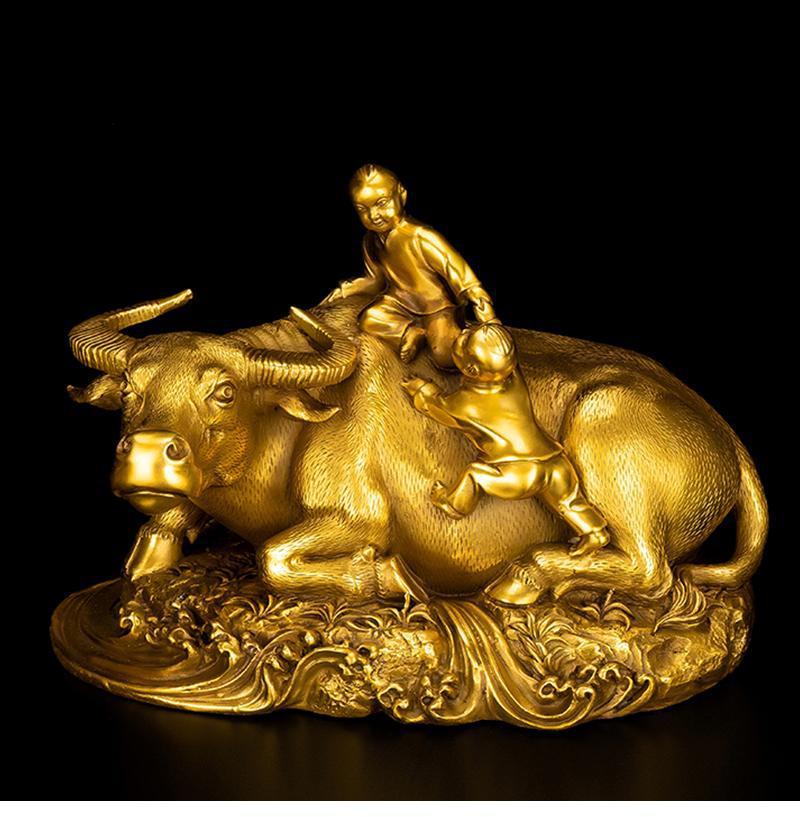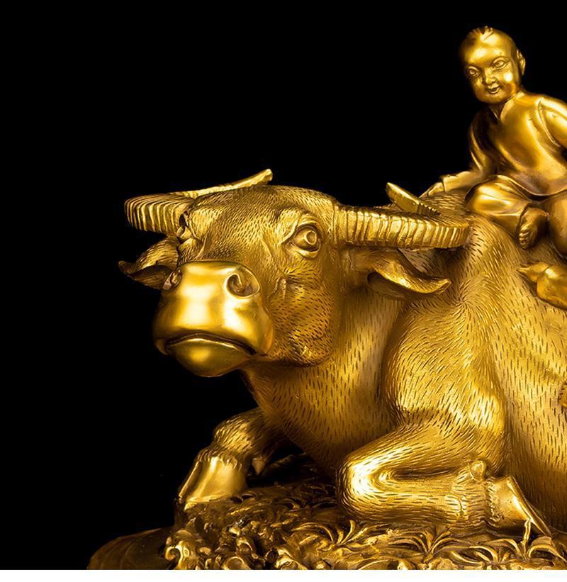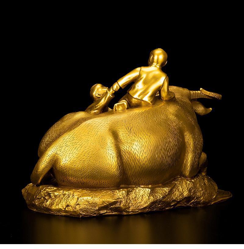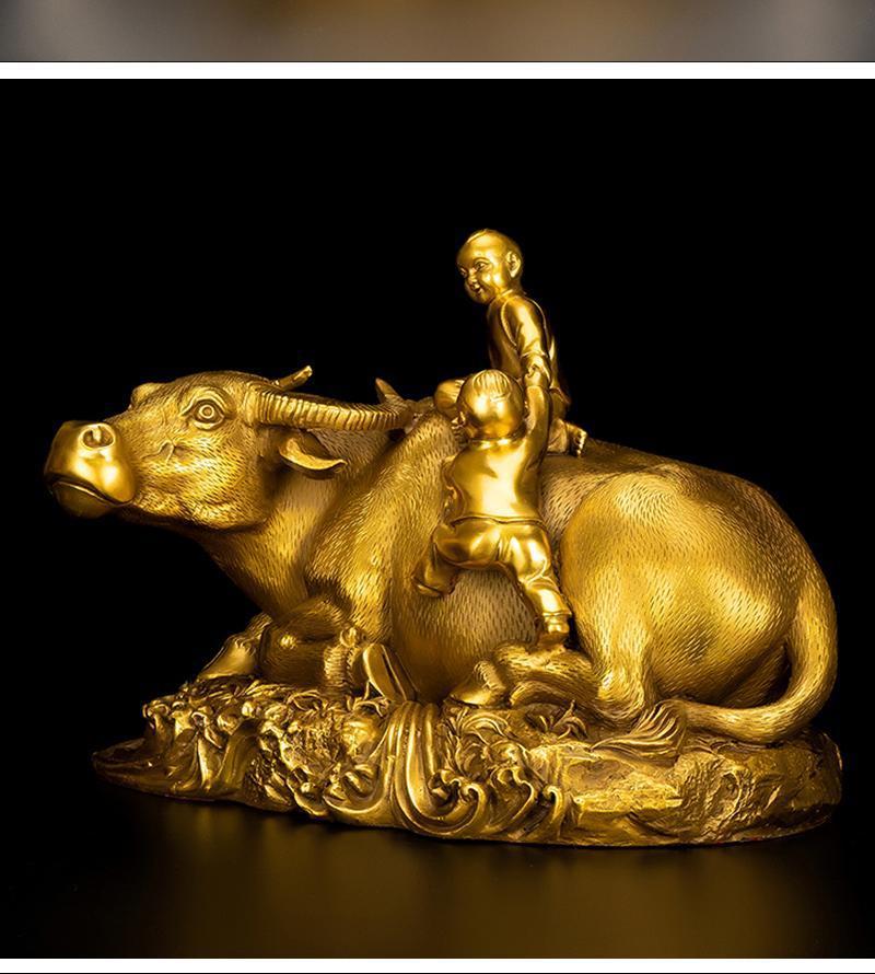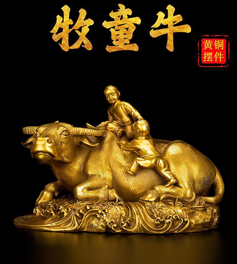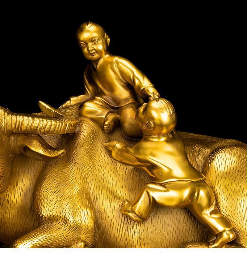 Figurilla de Niño de Bronce Montando una Vaca, Buey del Zodíaco de Bronce, Búfalo de Agua Grande, Hogar Estudio Oficina, Niño Pastor Montando una Vaca Artesanía Regalo