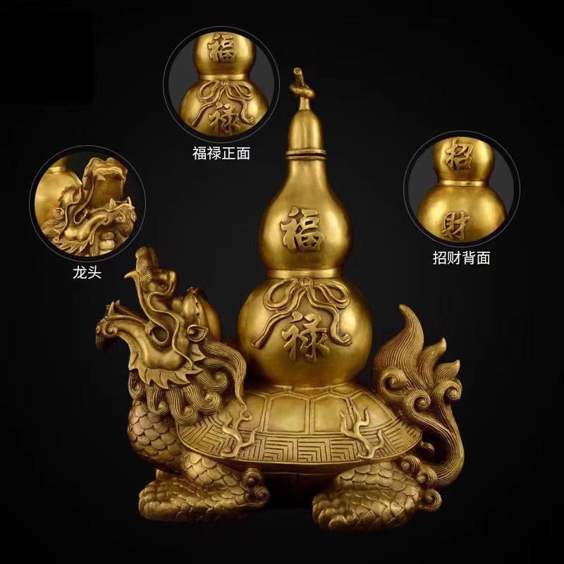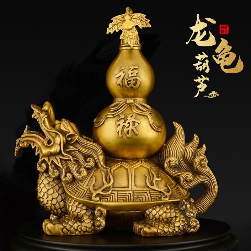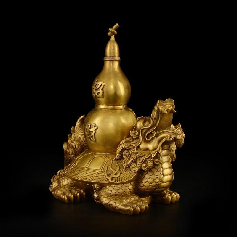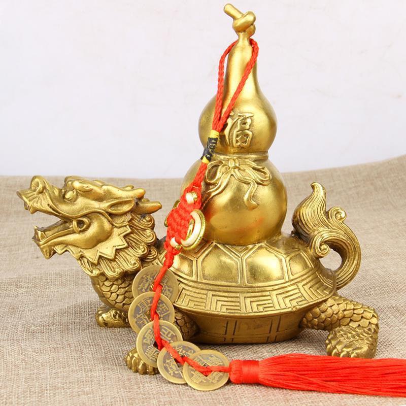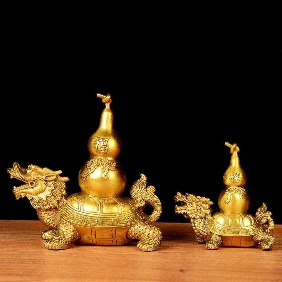 Adorno de Calabaza Tortuga Dragón de Latón, Calabaza de Cobre Tortuga Dragón Decoración para el Hogar