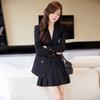 2024 Primavera y otoño nuevo azul manga larga simple profesional pequeño traje cuello chaqueta mujer falda plisada traje de dos piezas