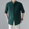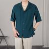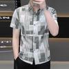 Camisa de moda de verano 2025 para hombre, camisa de media manga con cuello de seda helada, top informal para hombre