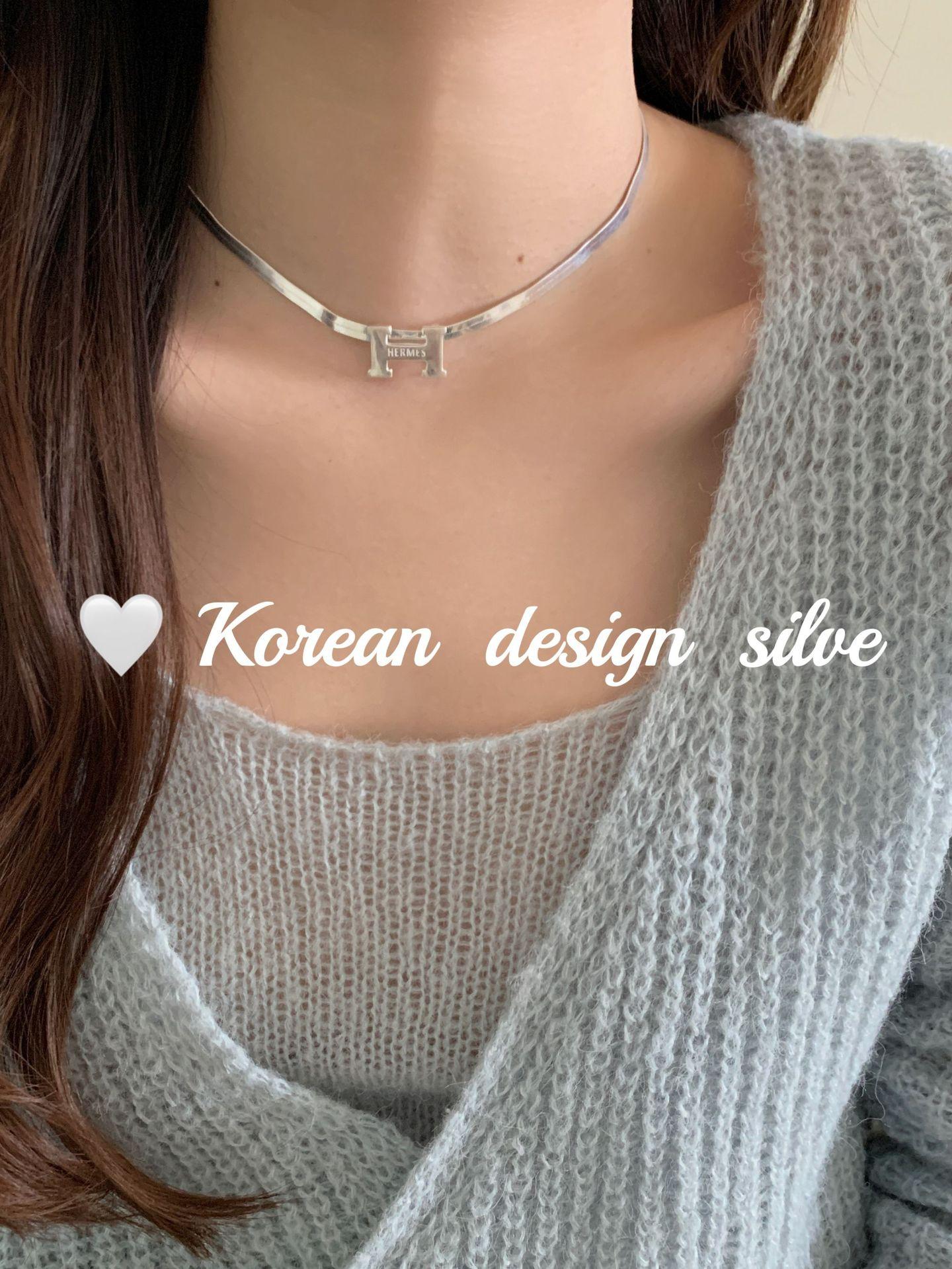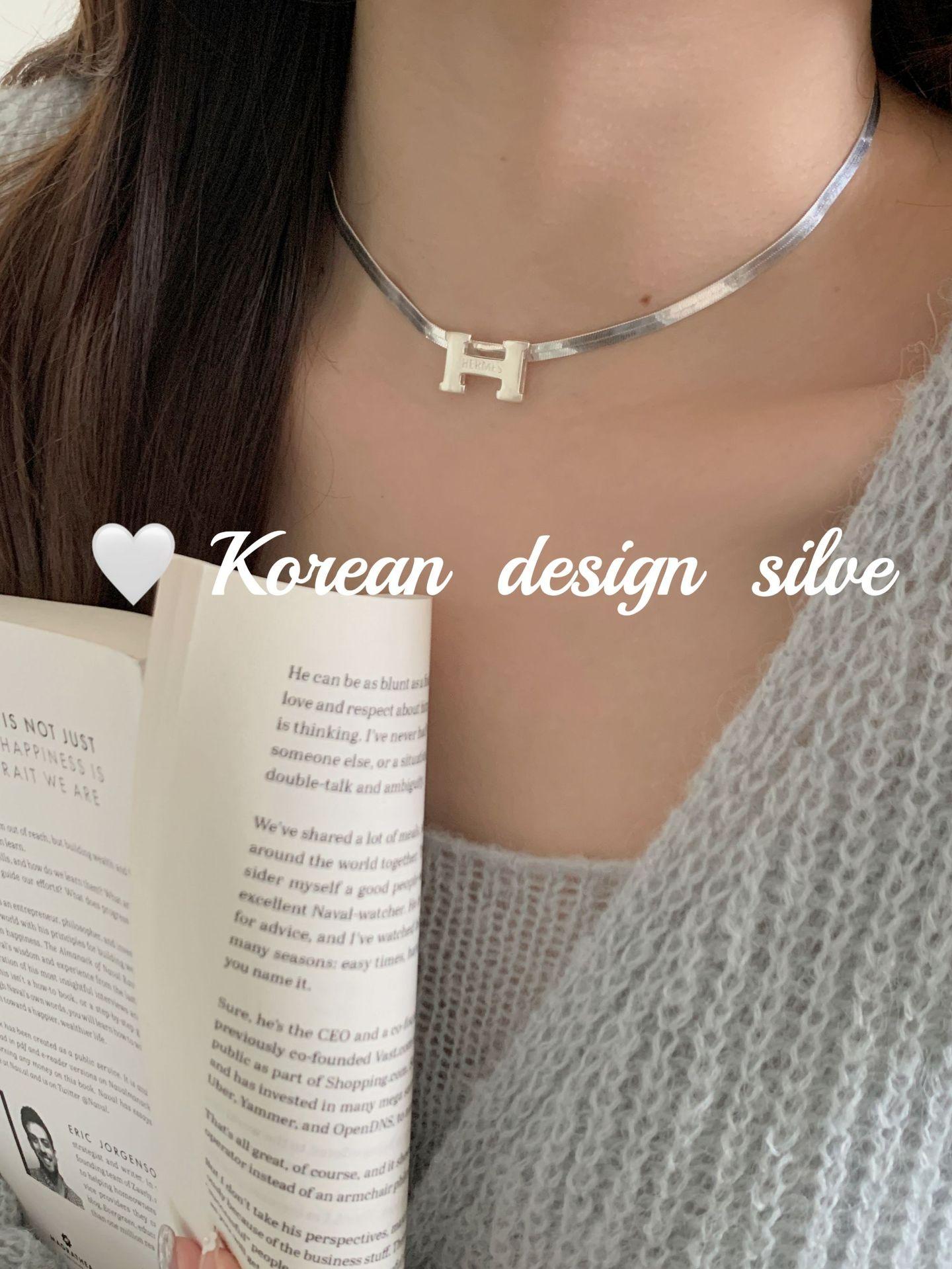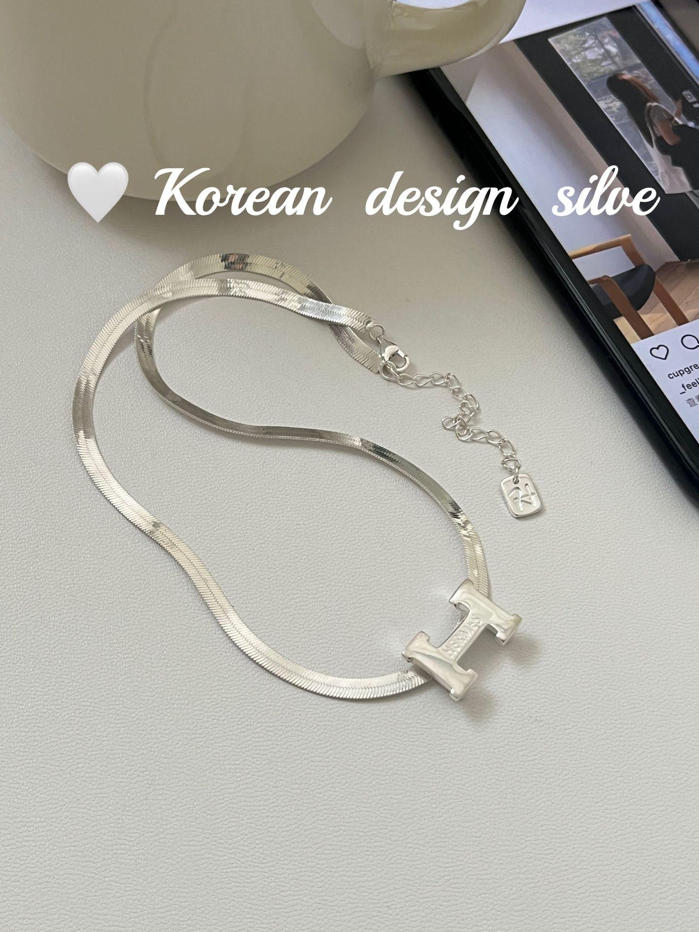 Collar elegante y ligero de lujo con forma de serpiente plana y letra H, estilo japonés y coreano, con diseño de nicho en plata de ley S925, cadena para clavícula.