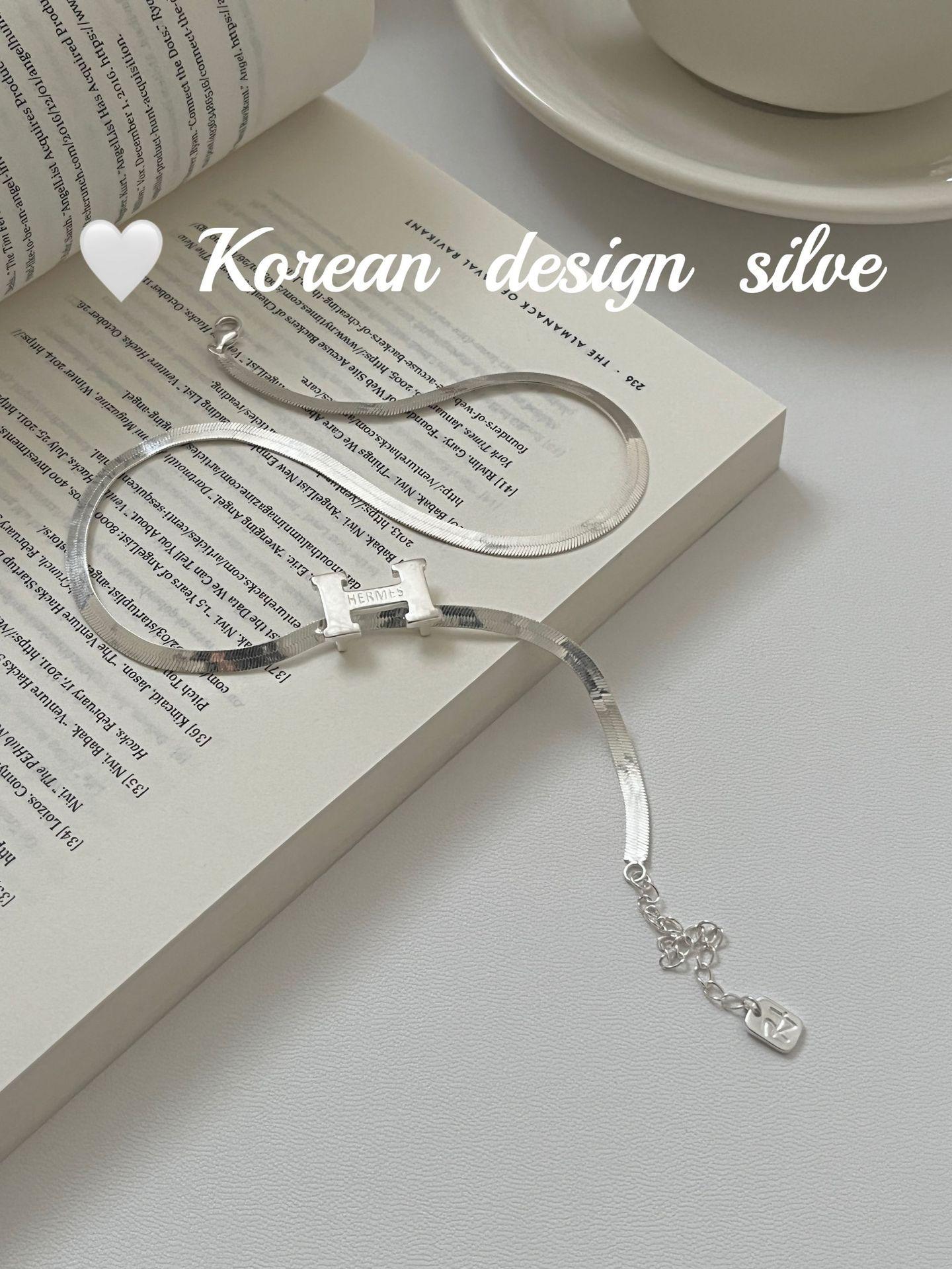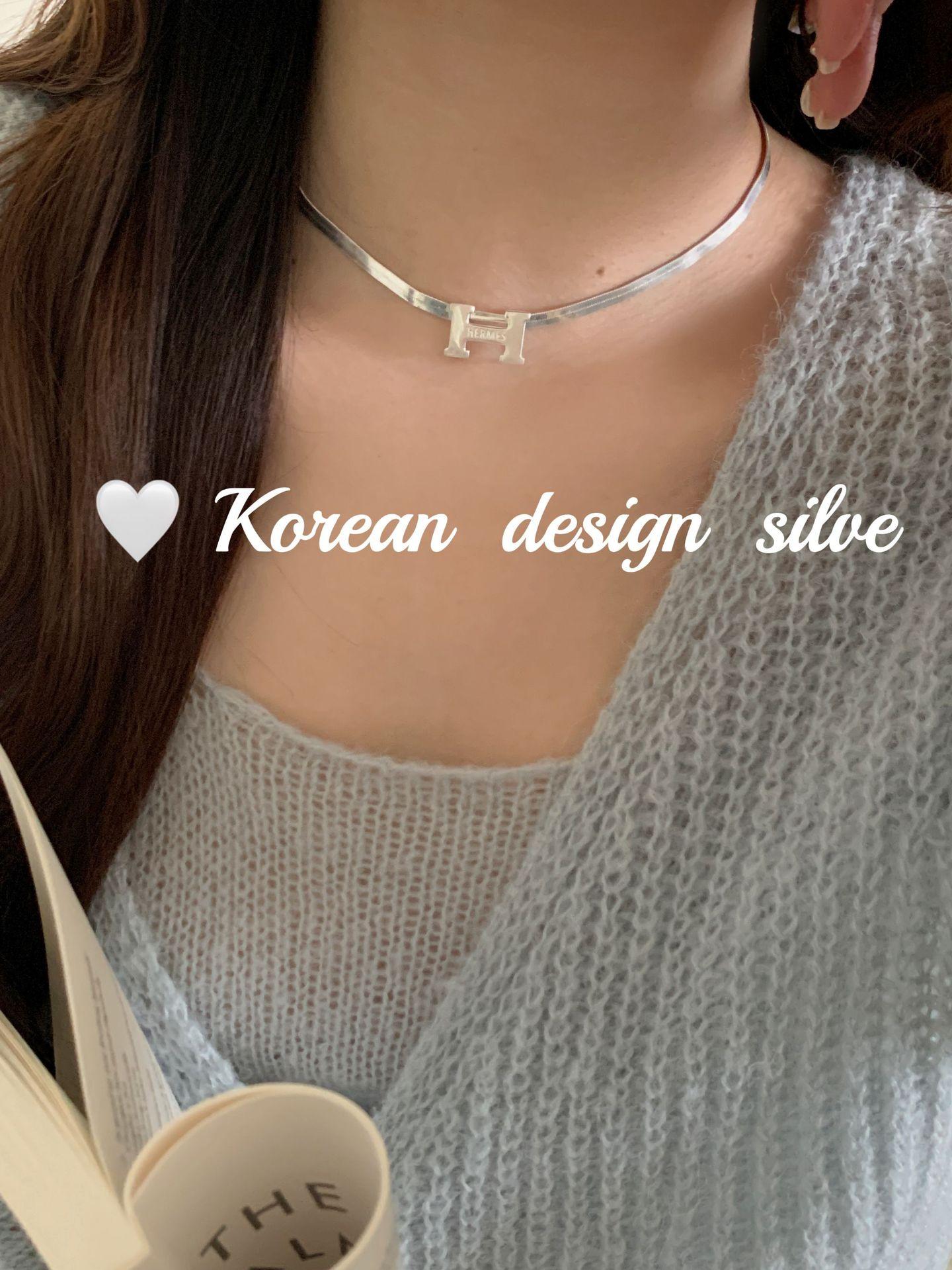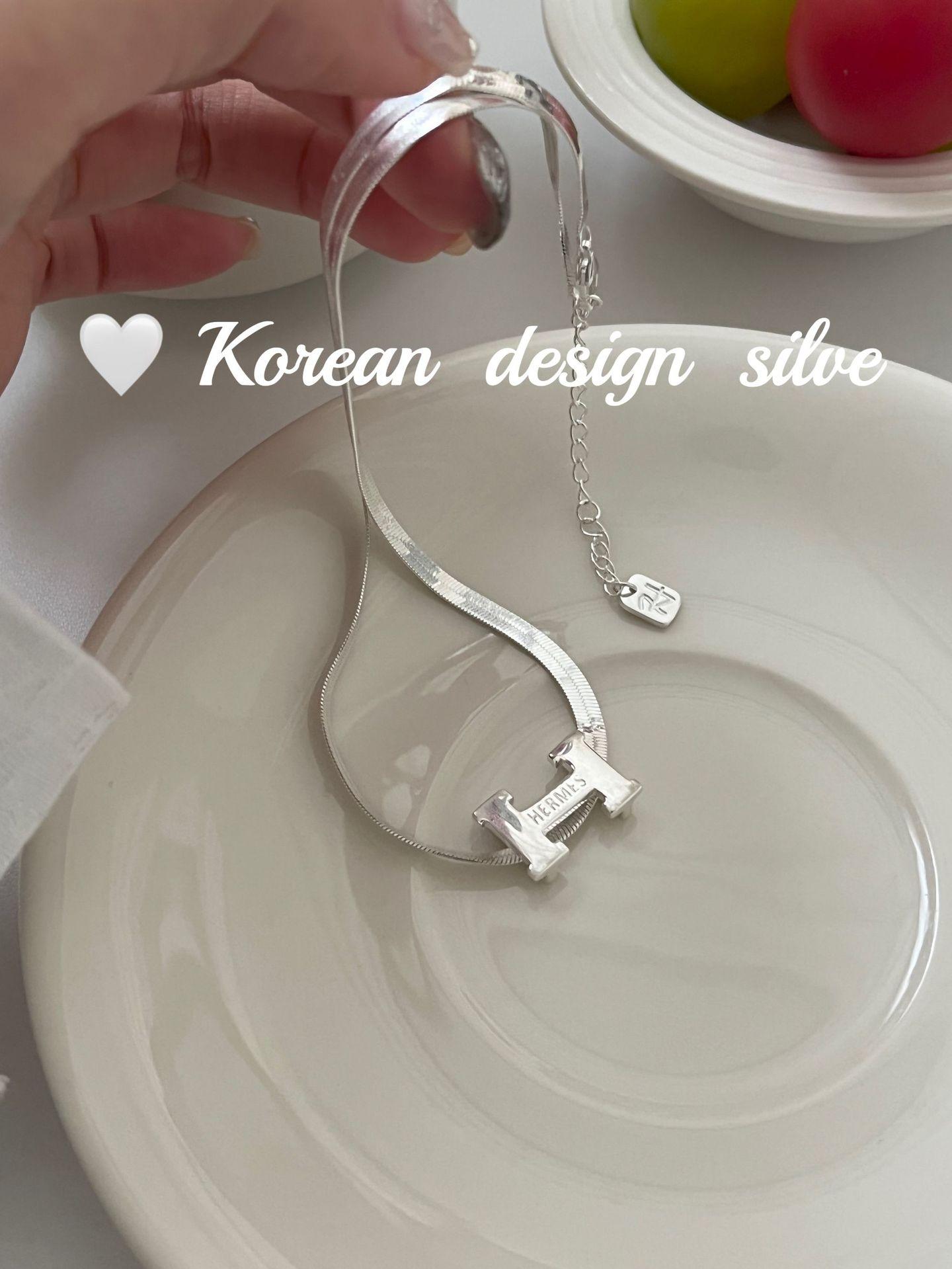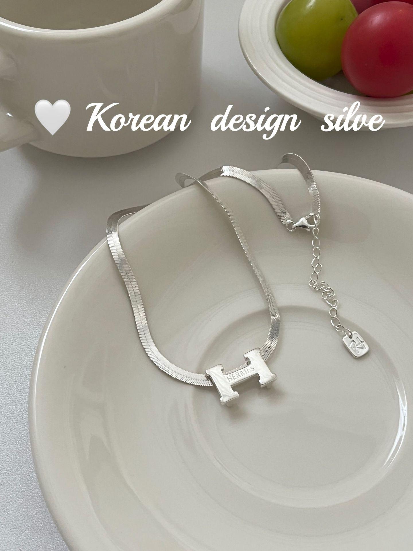 Collar elegante y ligero de lujo con forma de serpiente plana y letra H, estilo japonés y coreano, con diseño de nicho en plata de ley S925, cadena para clavícula.