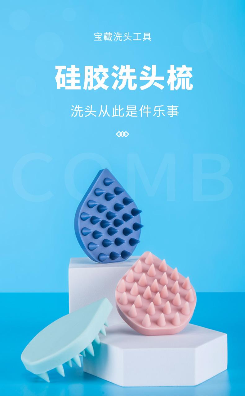 Peine de Silicona para Champú Masajeador de Cabeza Peine Gota de Agua Amazon Cepillo de Silicona para Champú para Baño Limpieza del Cuero Cabelludo
