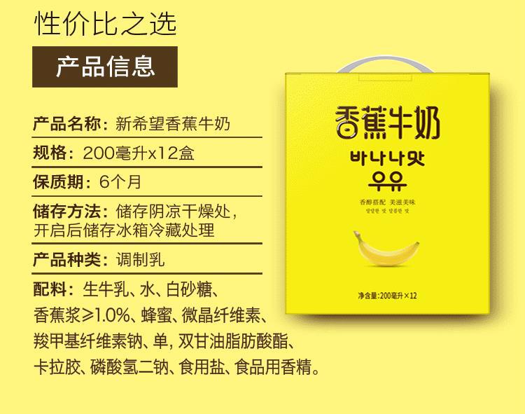 Leche de plátano New Hope 200 ml * 12 cajas Leche de sabor clásico para desayuno de estudiantes y niños