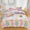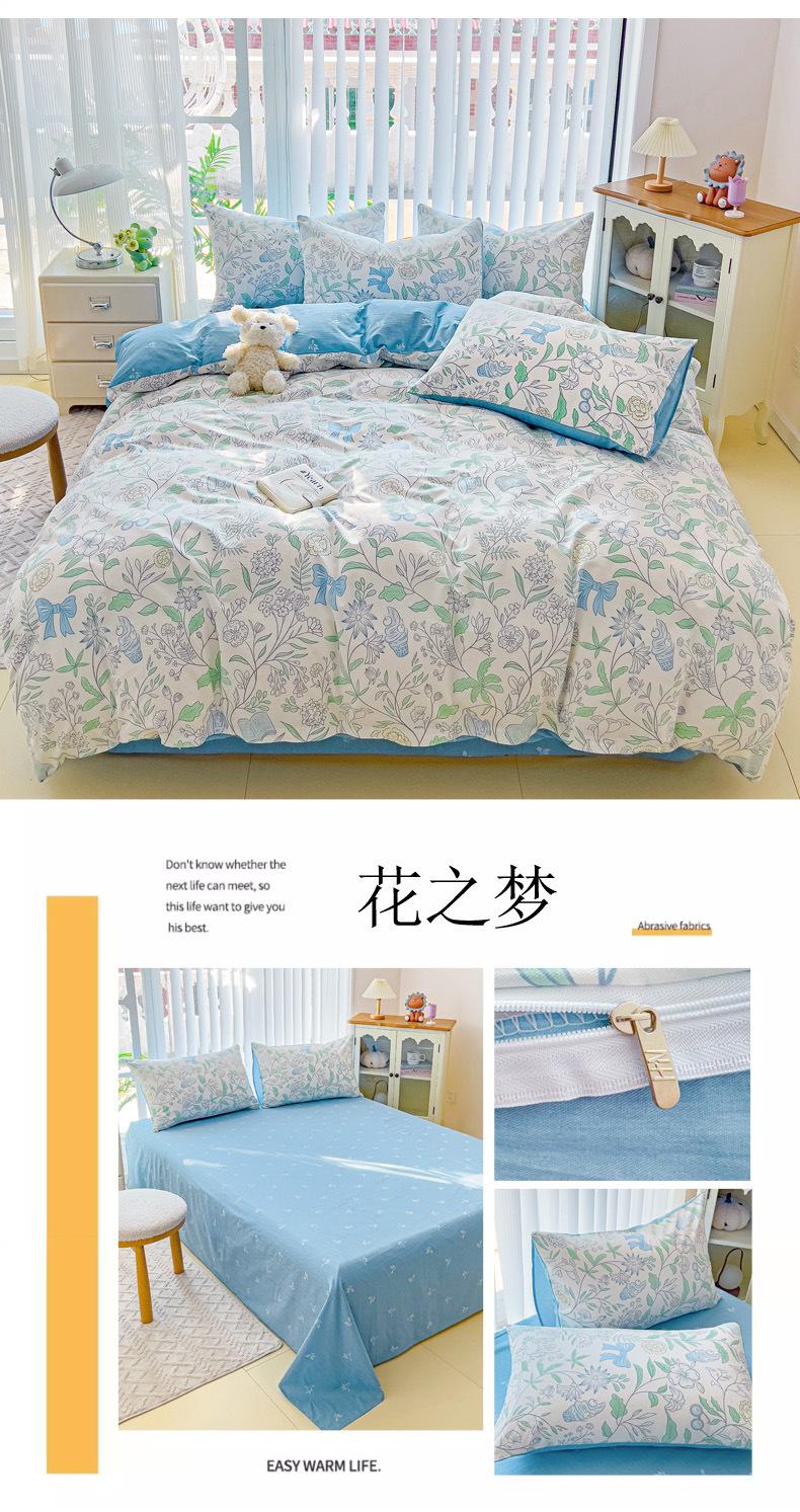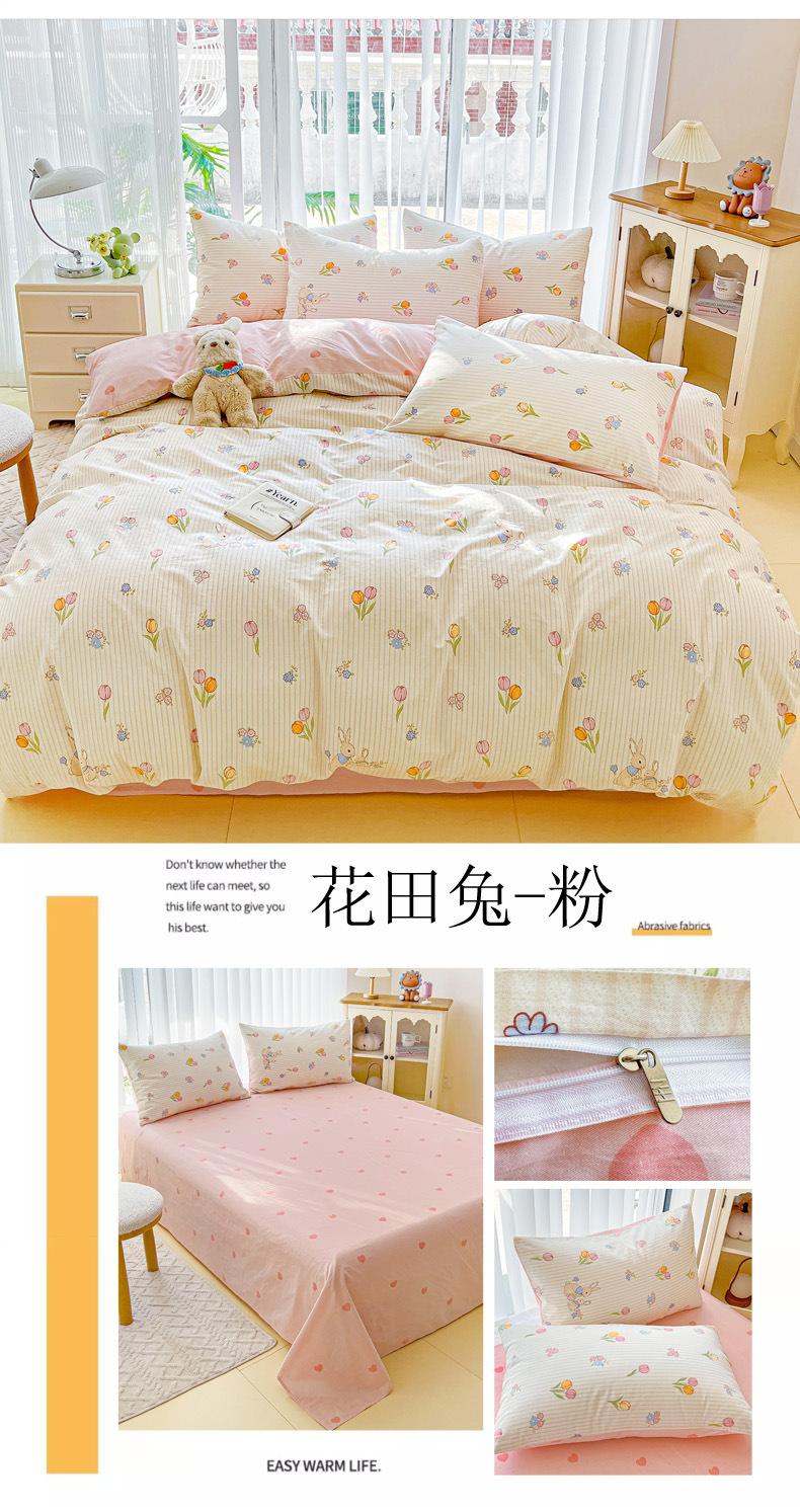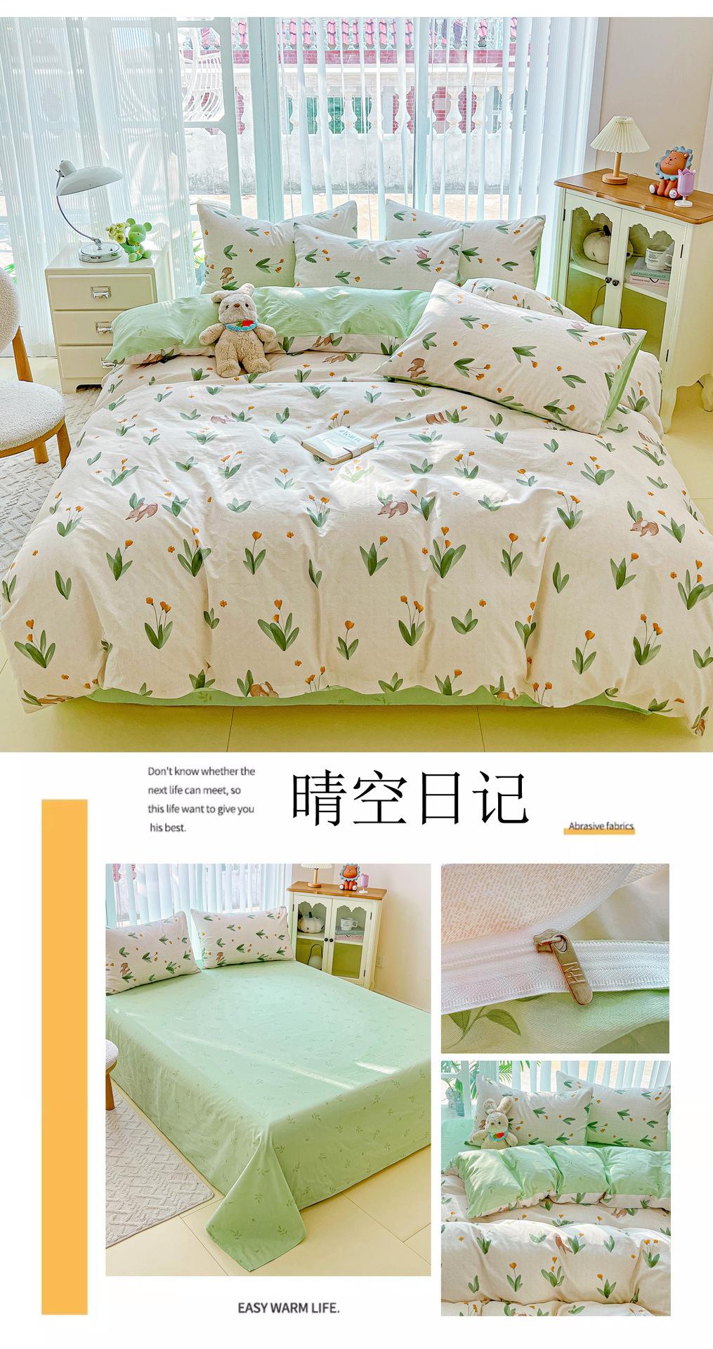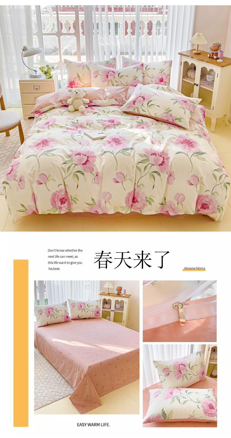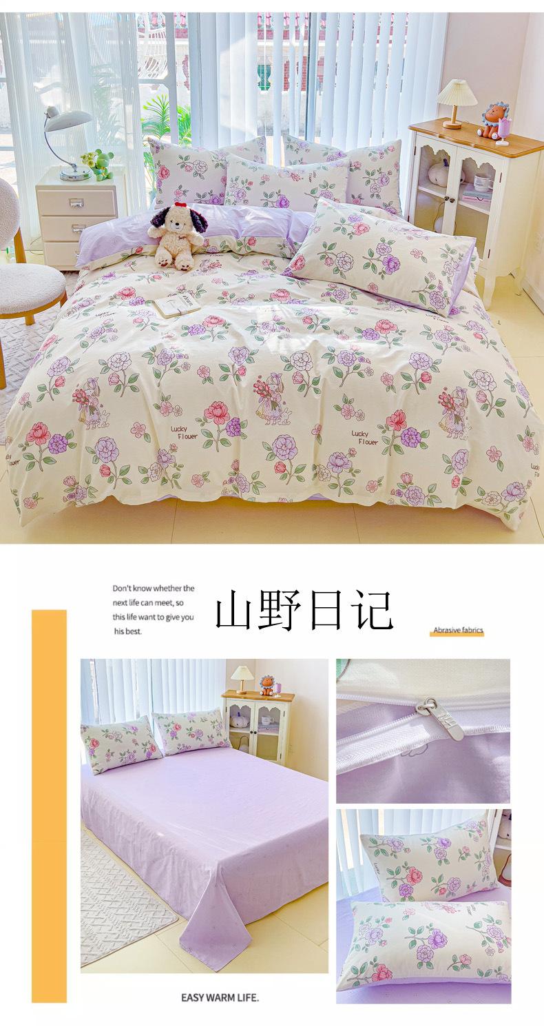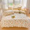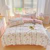 Set de cuatro piezas de algodón estampado Sarga Algodón puro Floral Funda nórdica Sábana de cama Sábana bajera Primavera y verano Ropa de cama sencilla Estilo sábana bajera