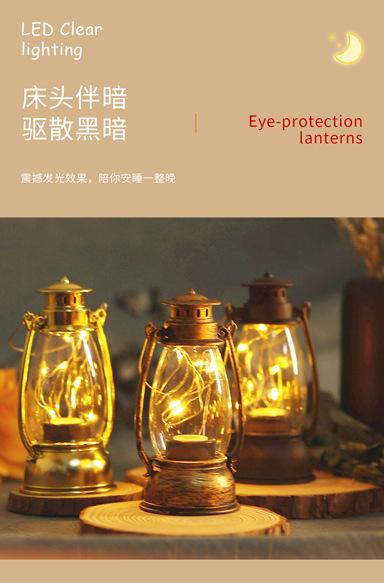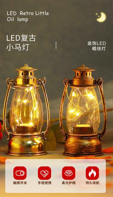 Lámpara retro de caballo pequeño, decoración para fiesta de boda, lámpara de aceite de vidrio, lámpara LED, lámpara de queroseno, lámpara de pared de plástico antigua, lámpara de alambre de cobre