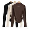 Otoño chica caliente callejero color simple bordado de estrella raglán camisa manga larga sexy ajustada camiseta corta al por mayor