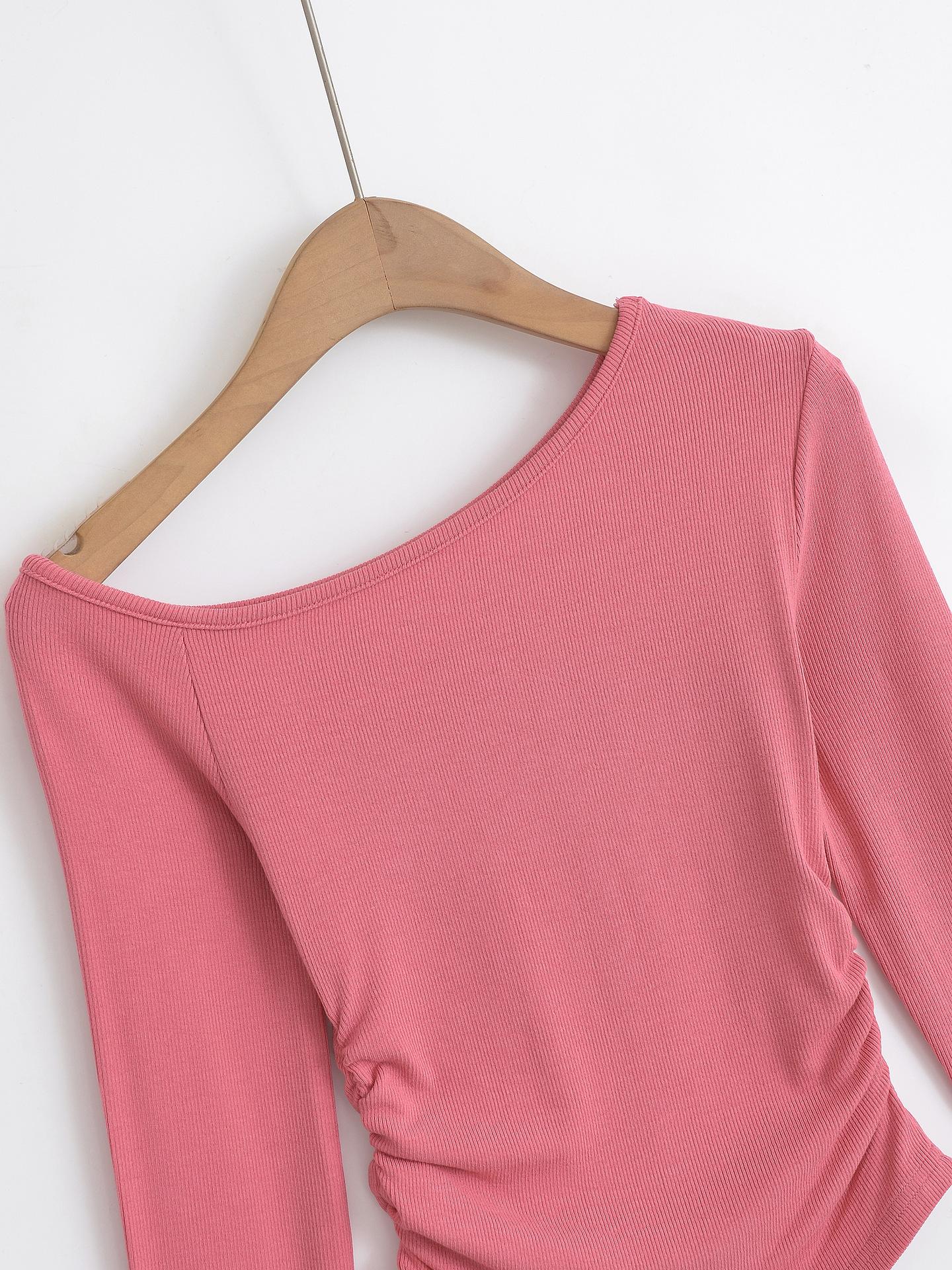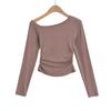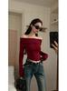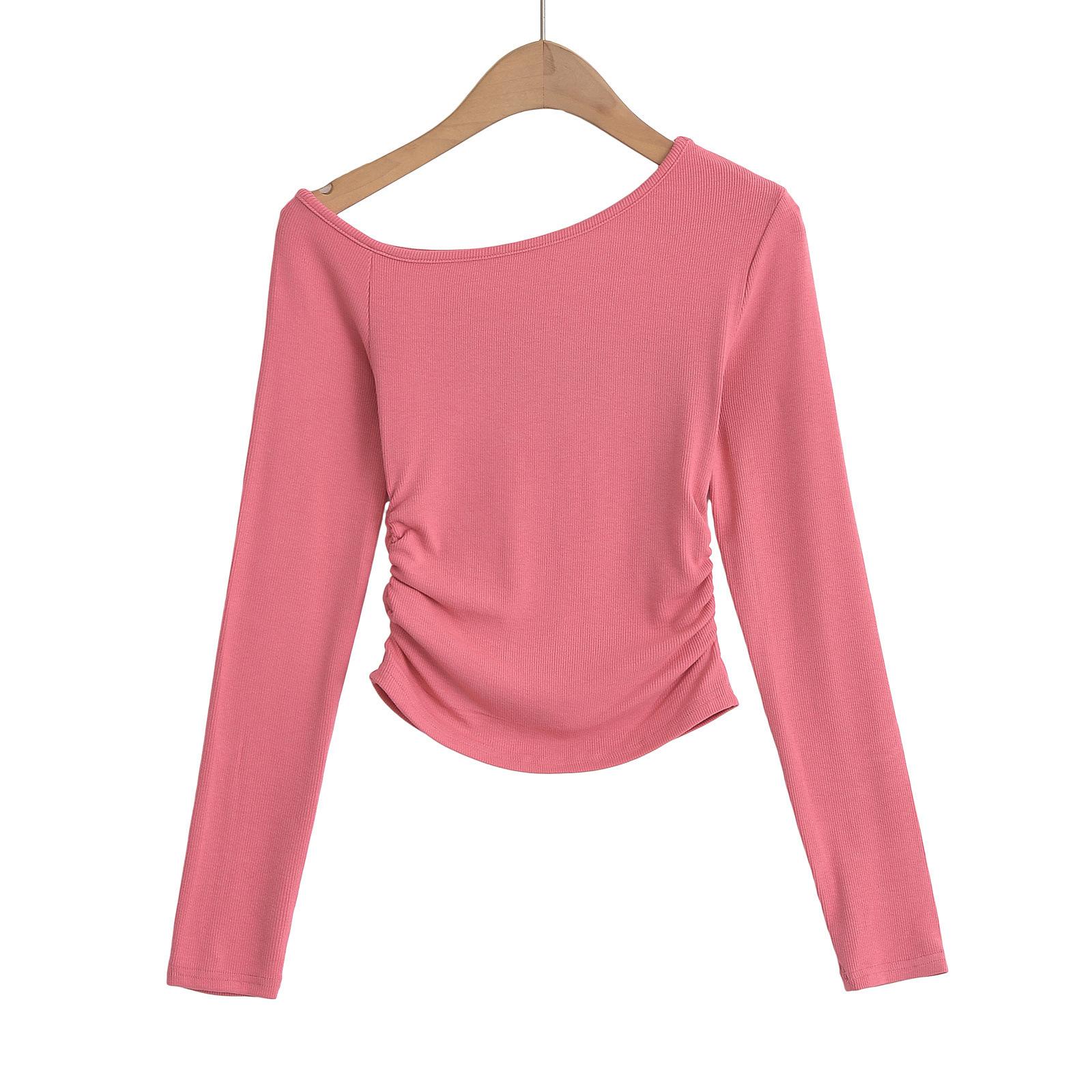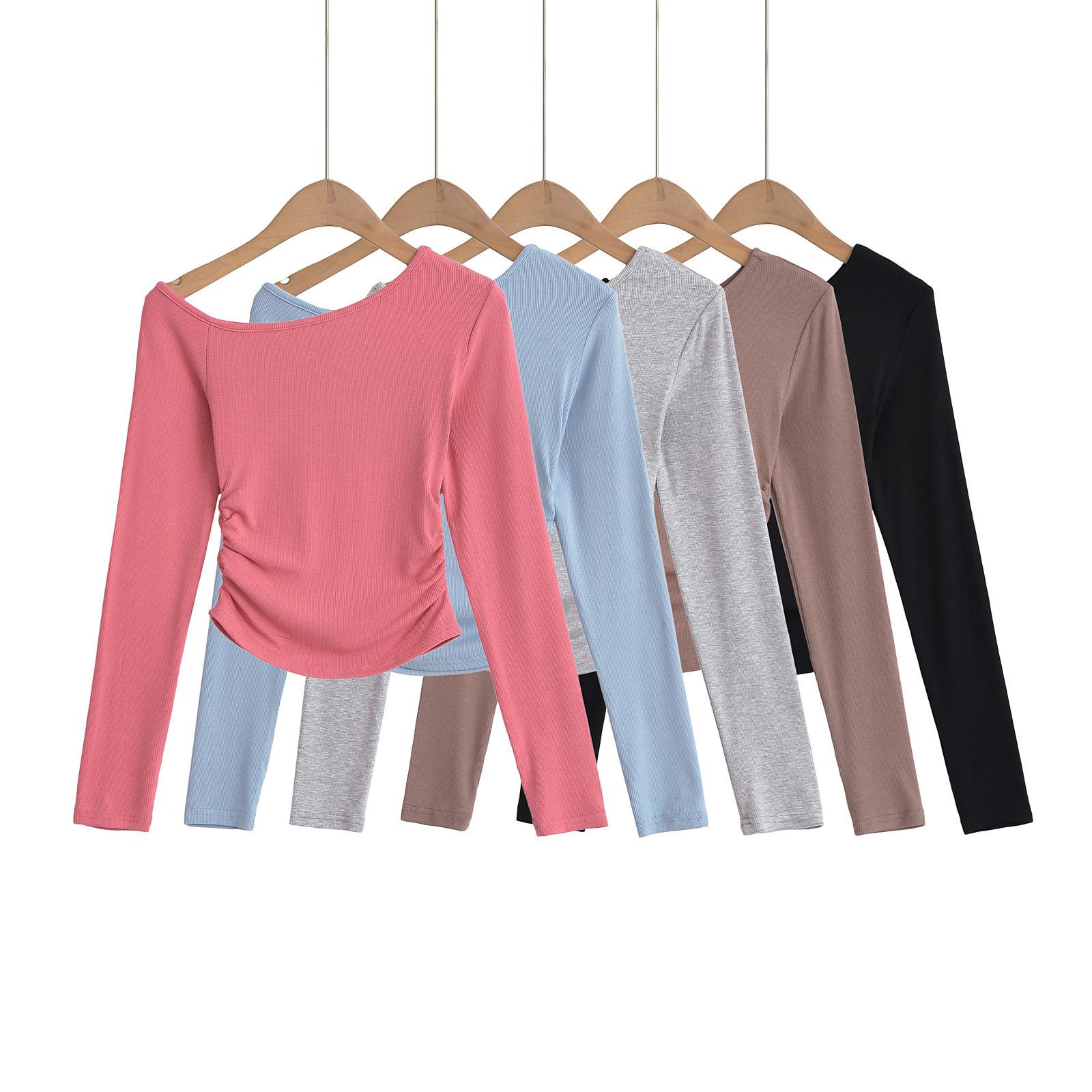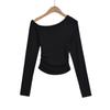 Camiseta de base negra sexy para mujer, nueva camiseta de manga larga de otoño 2024, diseño de hombros descubiertos, top con hombros oblicuos, de moda