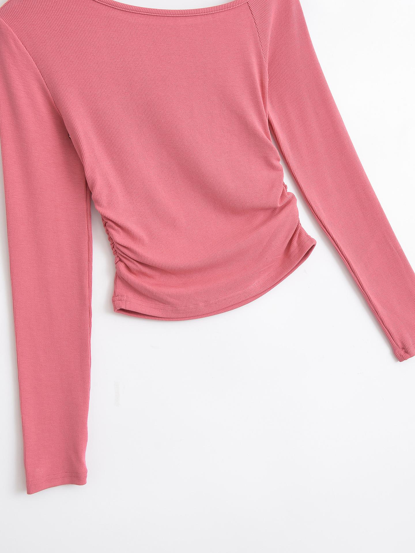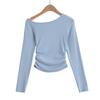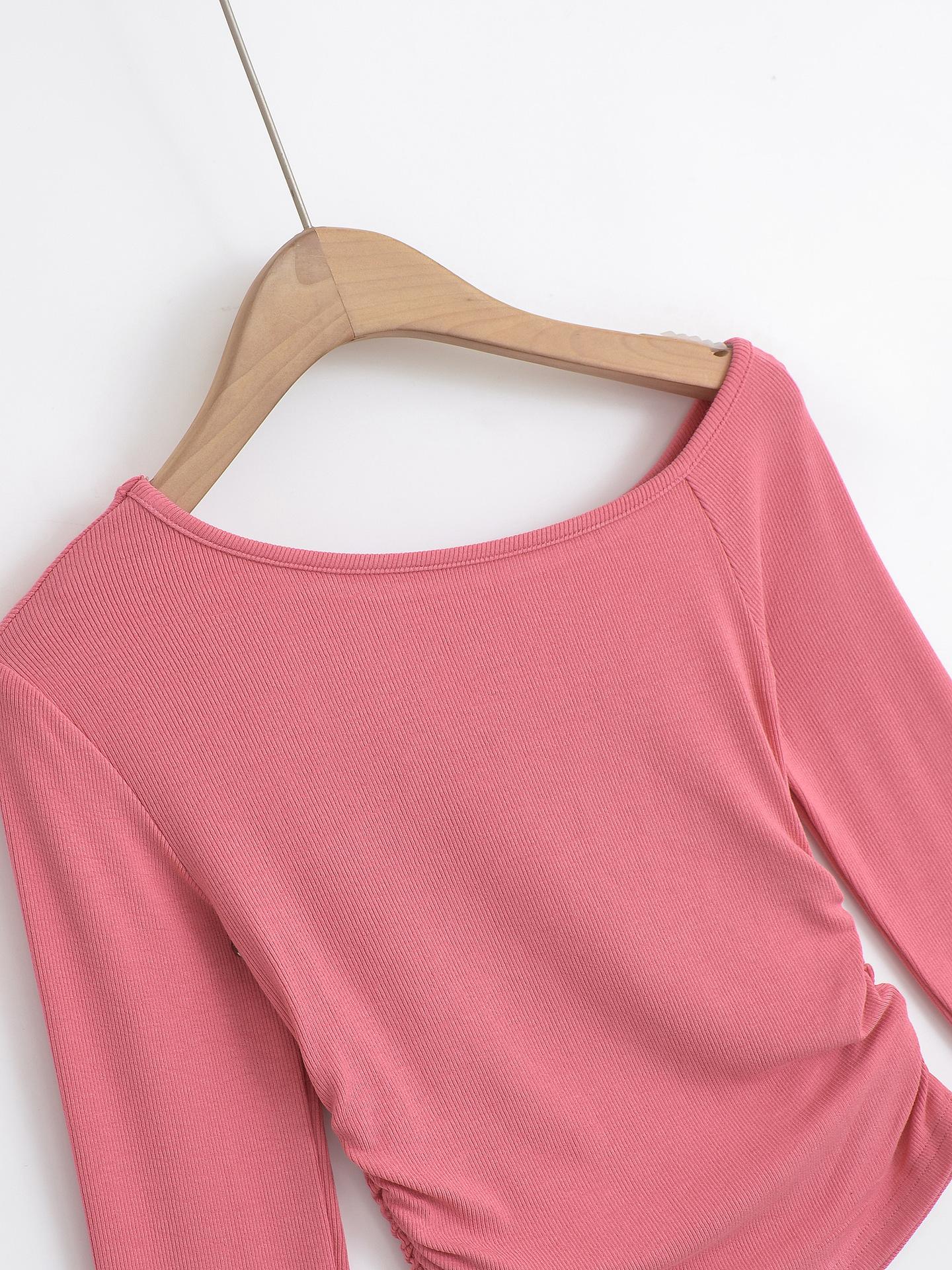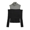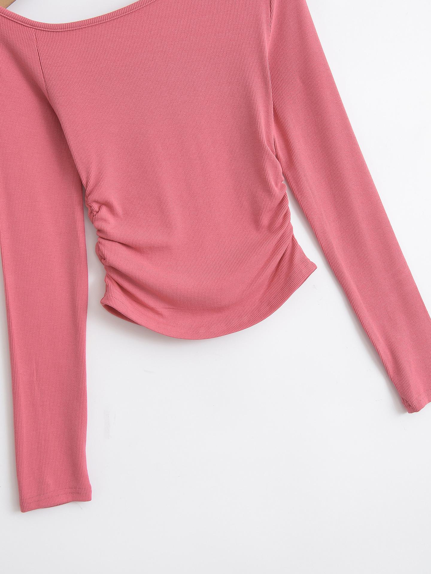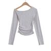 Camiseta de base negra sexy para mujer, nueva camiseta de manga larga de otoño 2024, diseño de hombros descubiertos, top con hombros oblicuos, de moda