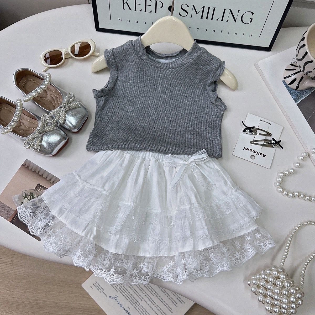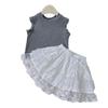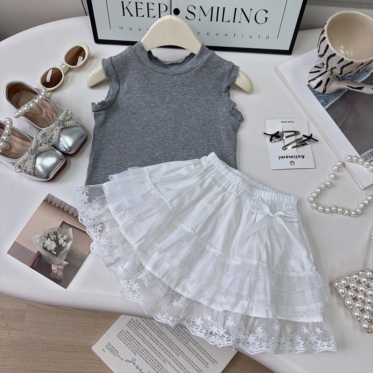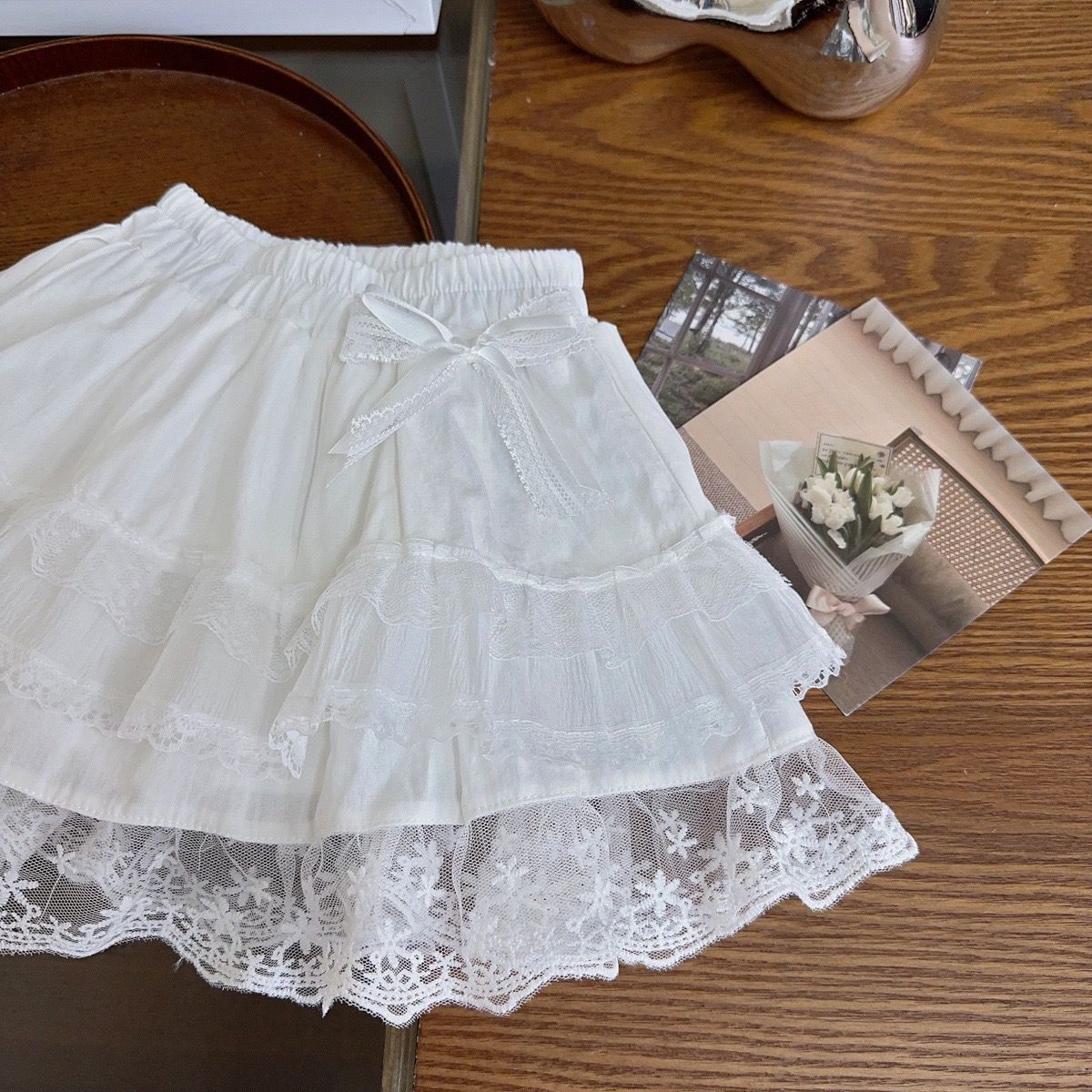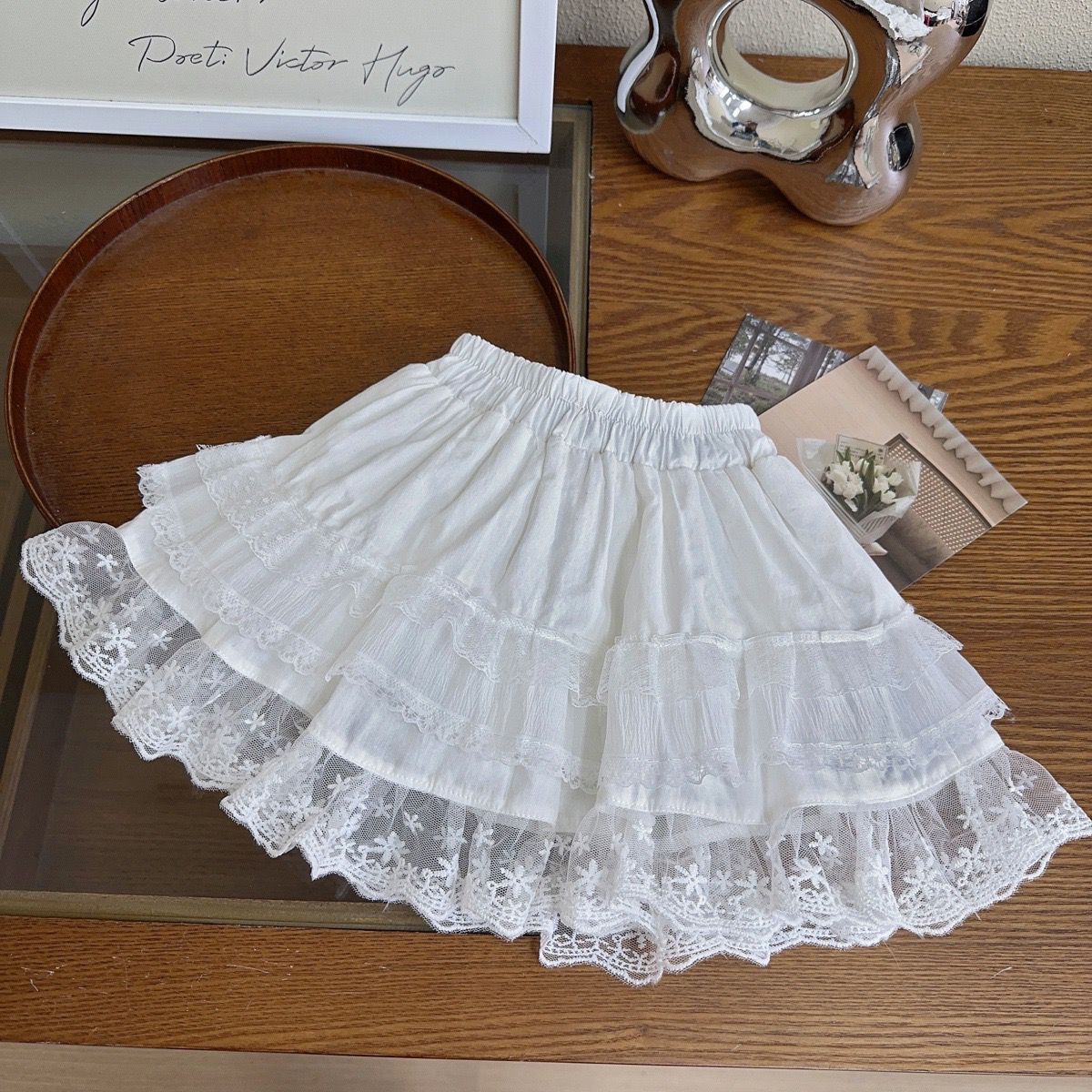 Falda de niña 2025 Falda de malla de encaje de verano Falda de princesa para niña pequeña Cabello cruzado