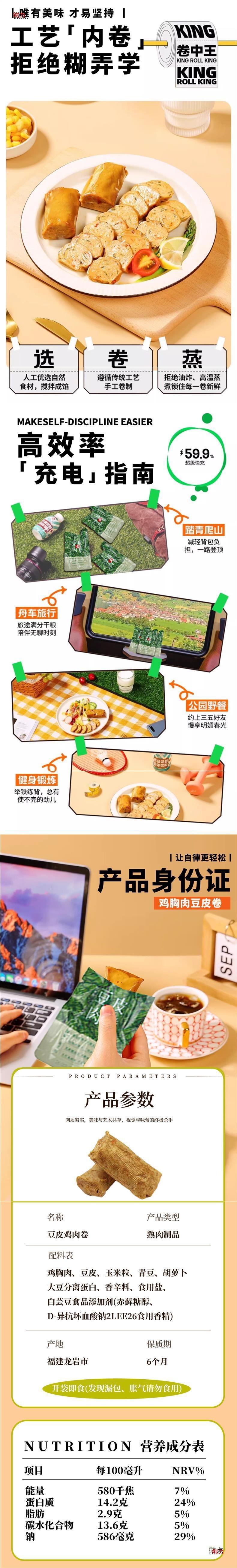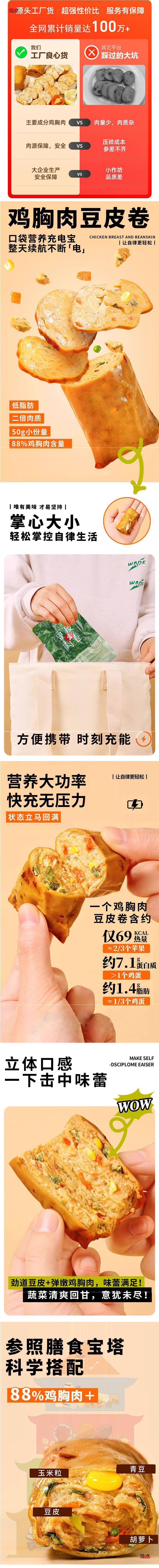 Rollo de pechuga de pollo instantáneo, rollo de frijoles, rollo de pollo, comida fitness, comida instantánea completa envasada al vacío, refrigerios, comida cocinada