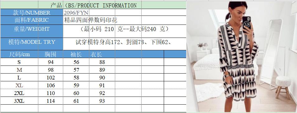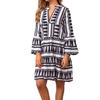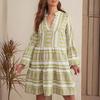 Vestido Nuevo de Primavera y Verano 2025 Europeo y Americano Transfronterizo para Mujer, Estampado Geométrico de Venta Caliente, Cuello en V, Vestido Casual en Stock