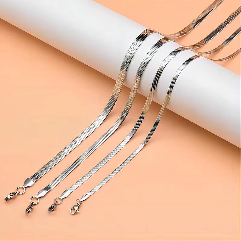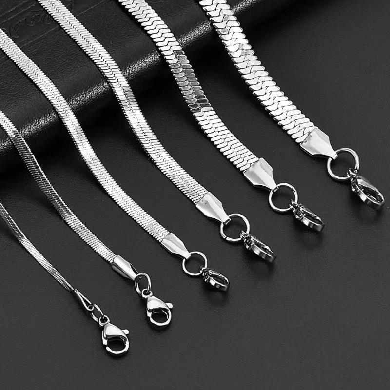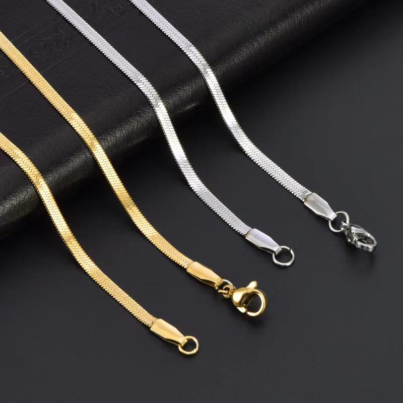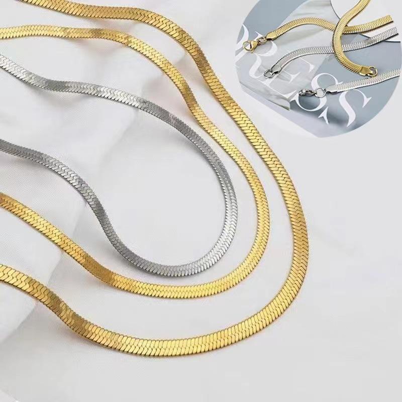 Compra Collar europeo y americano simple de acero inoxidable con hoja de nicho, cadena plana de serpiente, tendencia de moda, hip hop, acero de titanio, para mujer, al por mayor al por mayor en Joom.pro