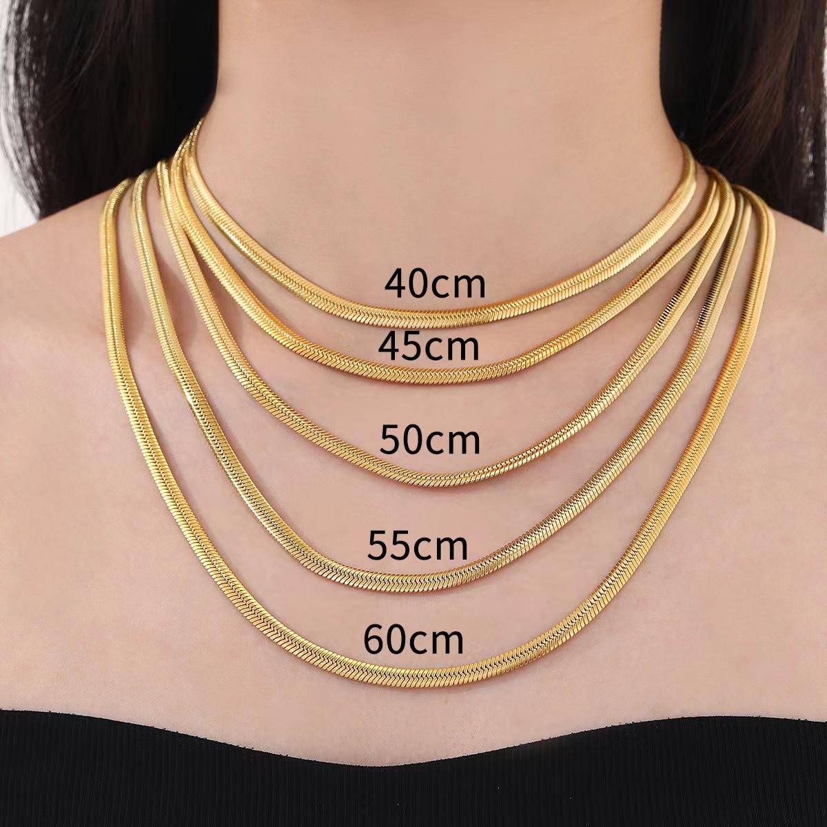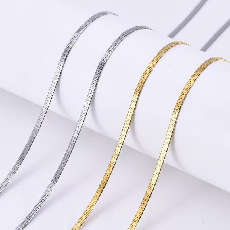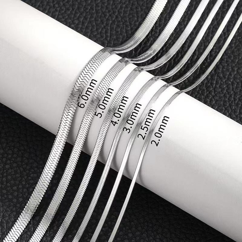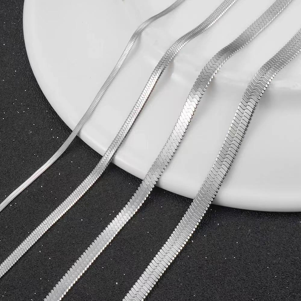 Cadena de hoja de acero inoxidable cadena clavicular estilo ins acero de titanio cadena de hueso de serpiente cadena clavicular plana de serpiente de acero de titanio de venta caliente europea y americana