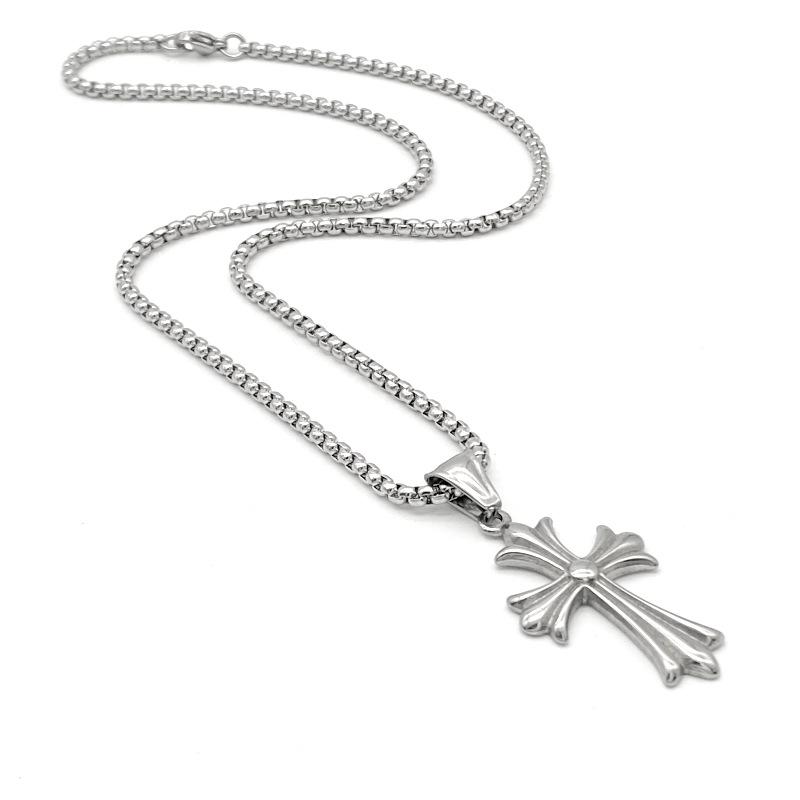 Cadena de lana retro de acero inoxidable estilo hip-hop para hombre y mujer, colgante de cruz, collar con colgante de cruz