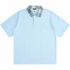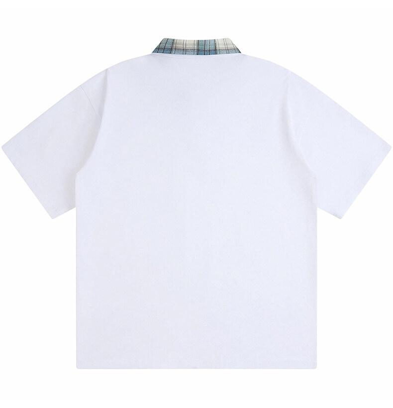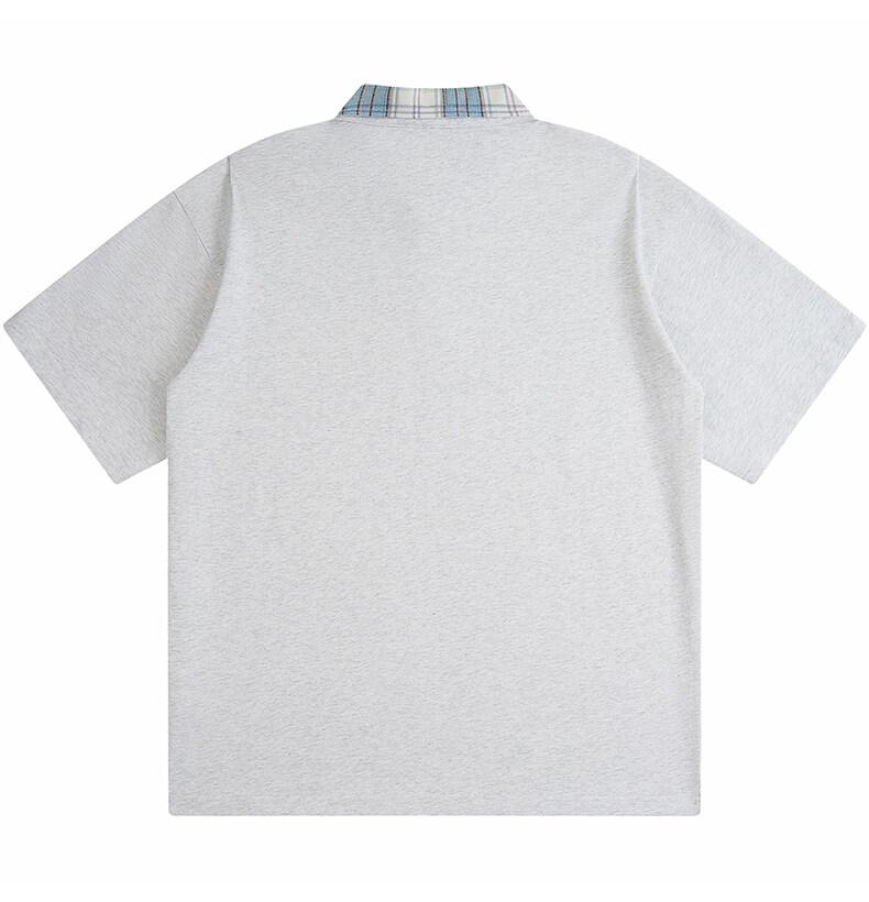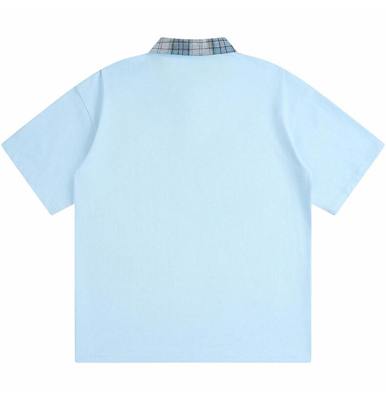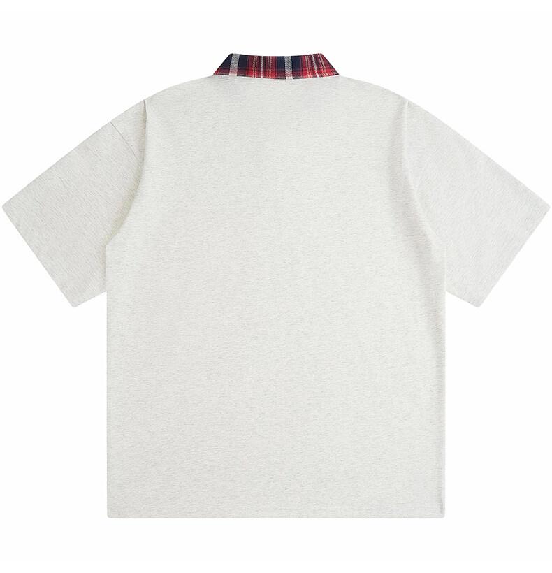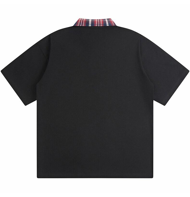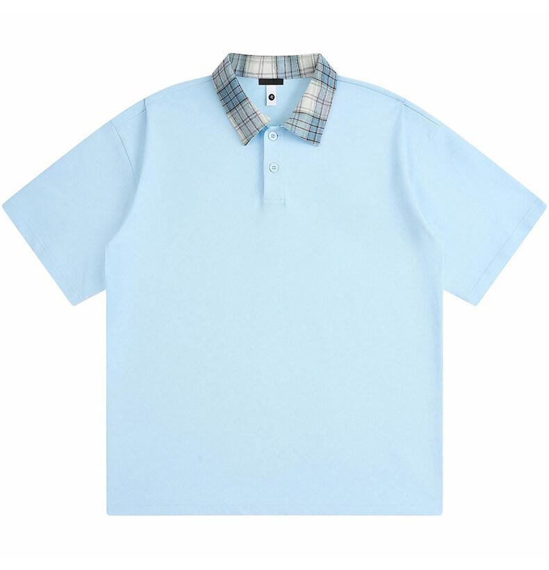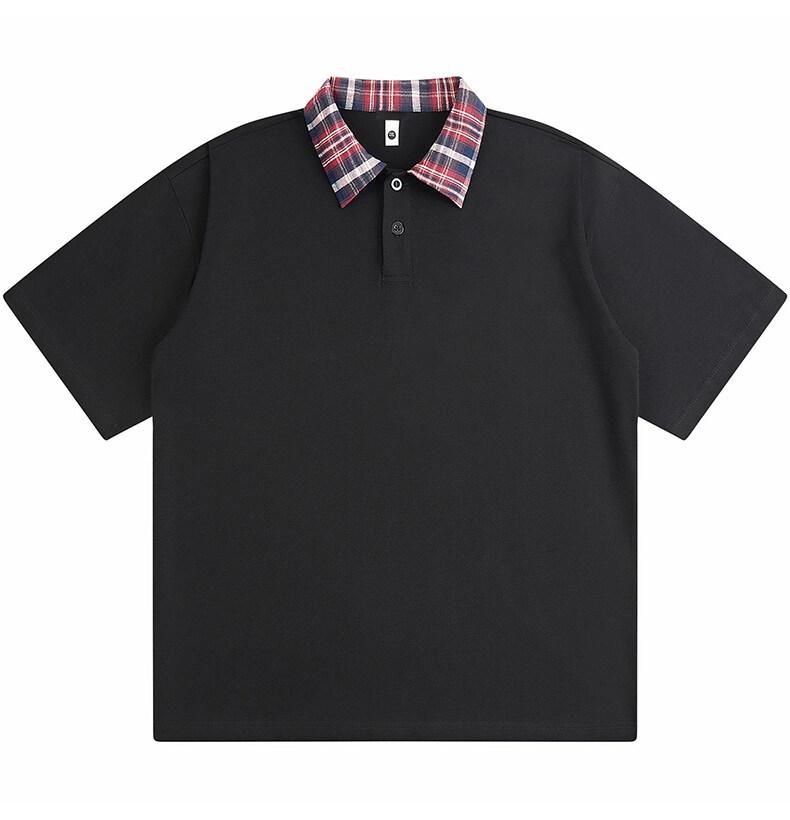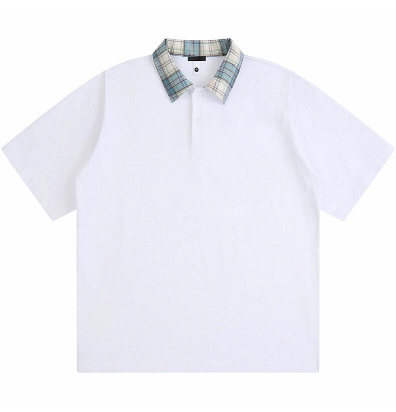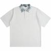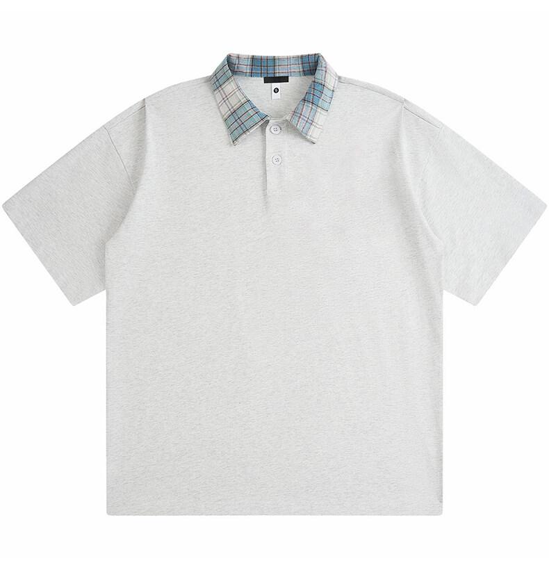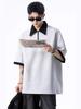 Polo Fresco de Solapa Contrastante Estilo Americano para Hombre de Manga Corta de Verano de Gama Alta con Mangas de Hombro Pesado Holgado de Secado Rápido