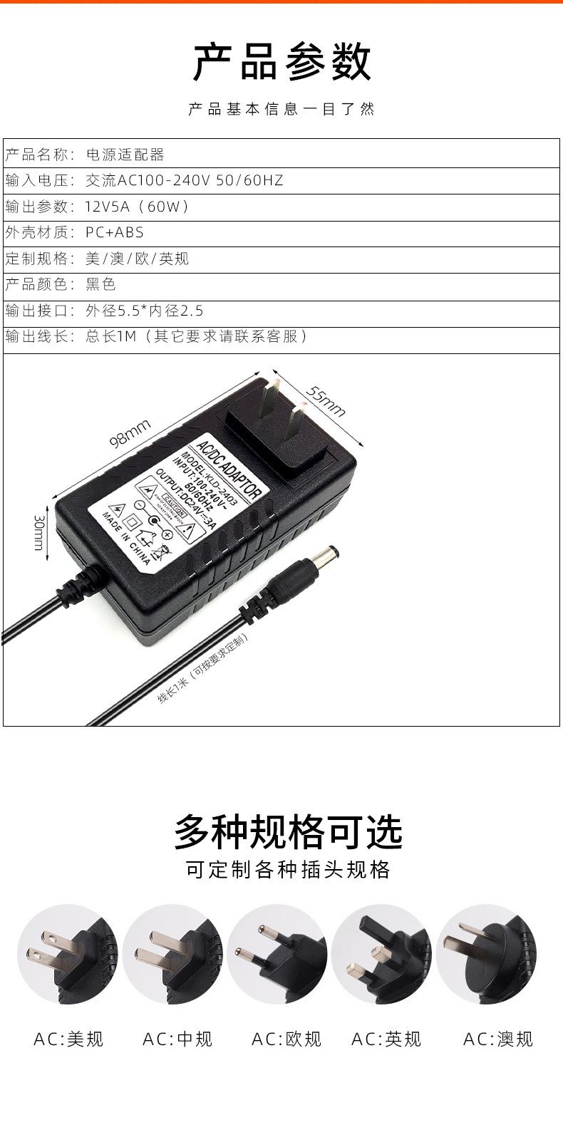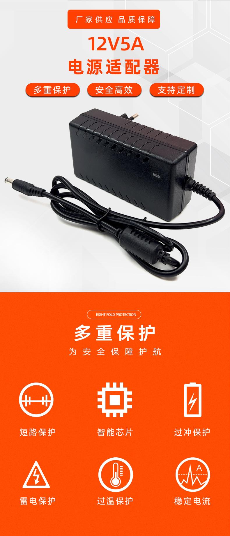 Adaptador de corriente de escritorio de 12 V y 5 A para pantalla LED de 60 W, fuente de alimentación conmutada de 12 V.