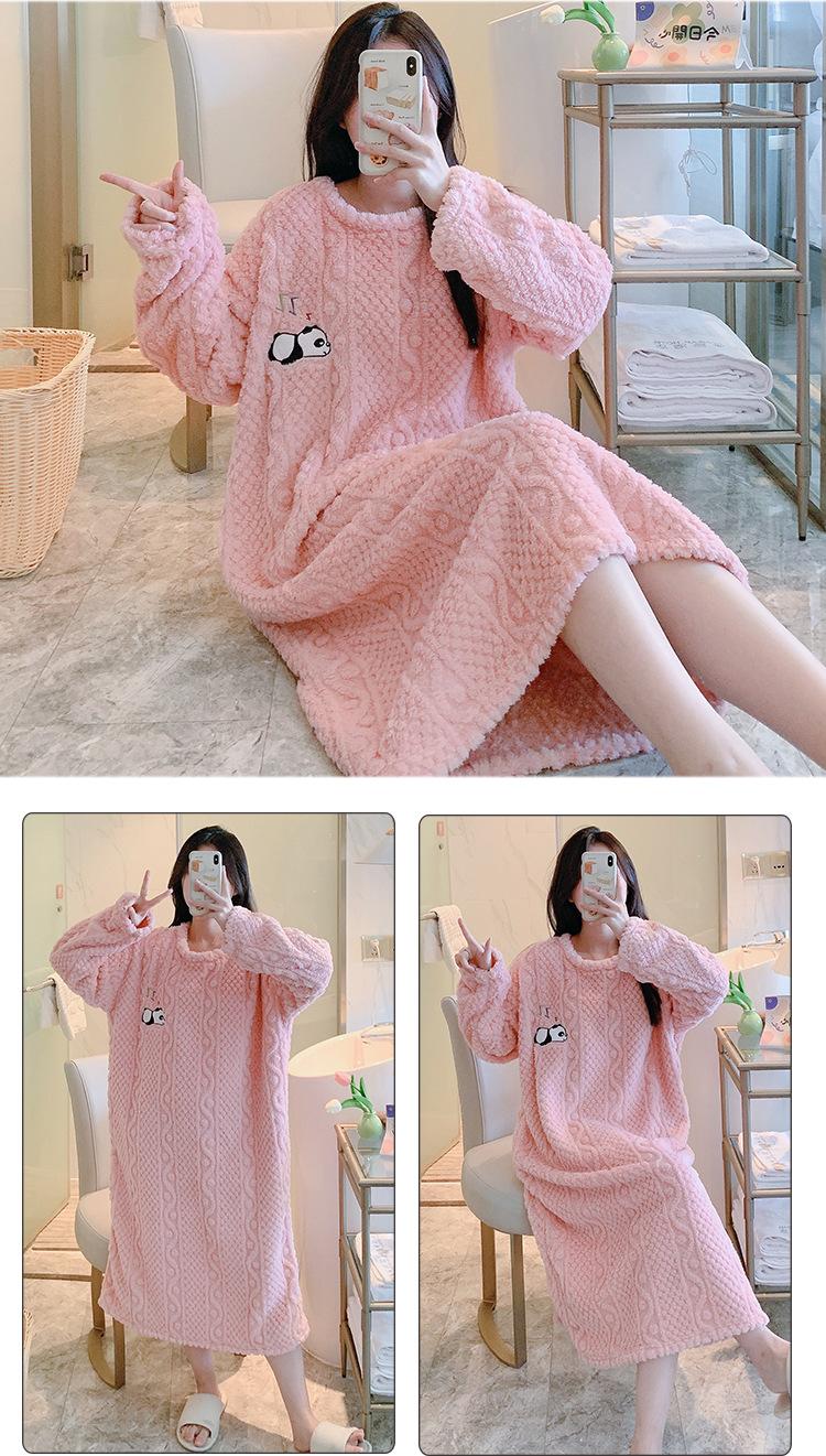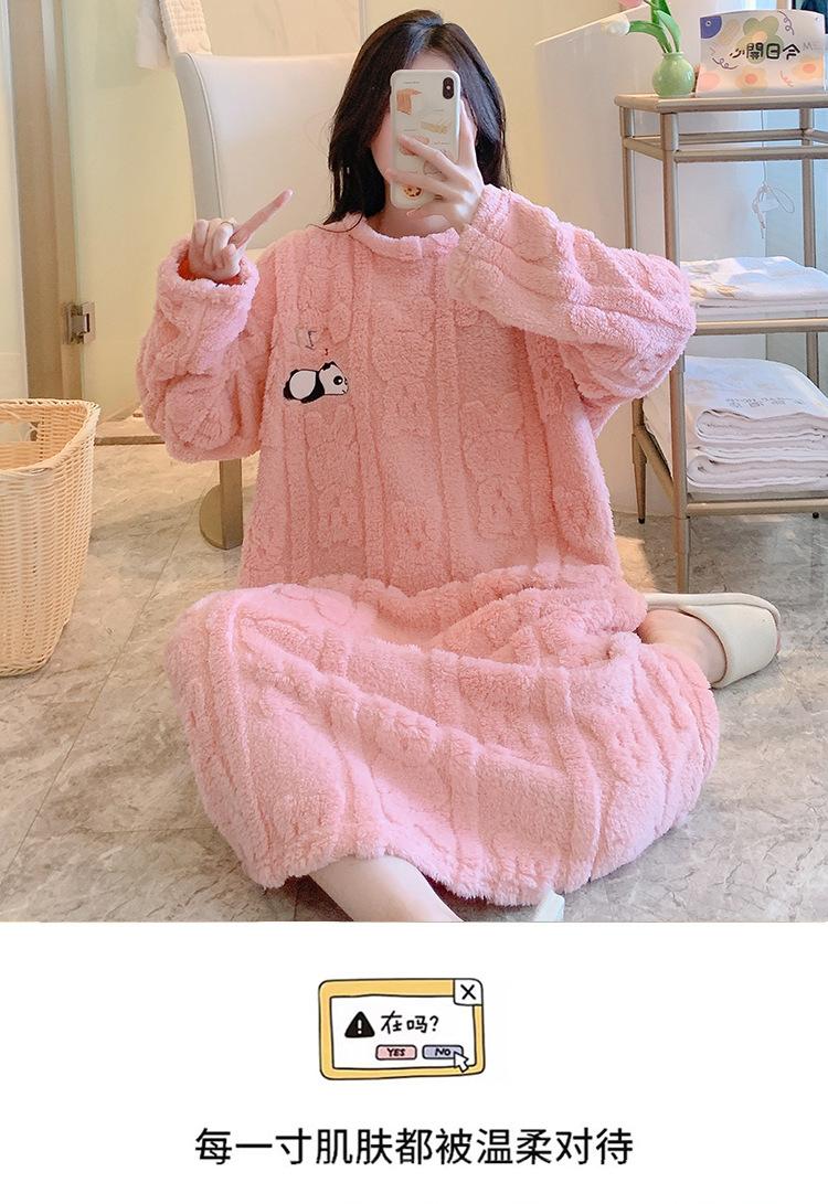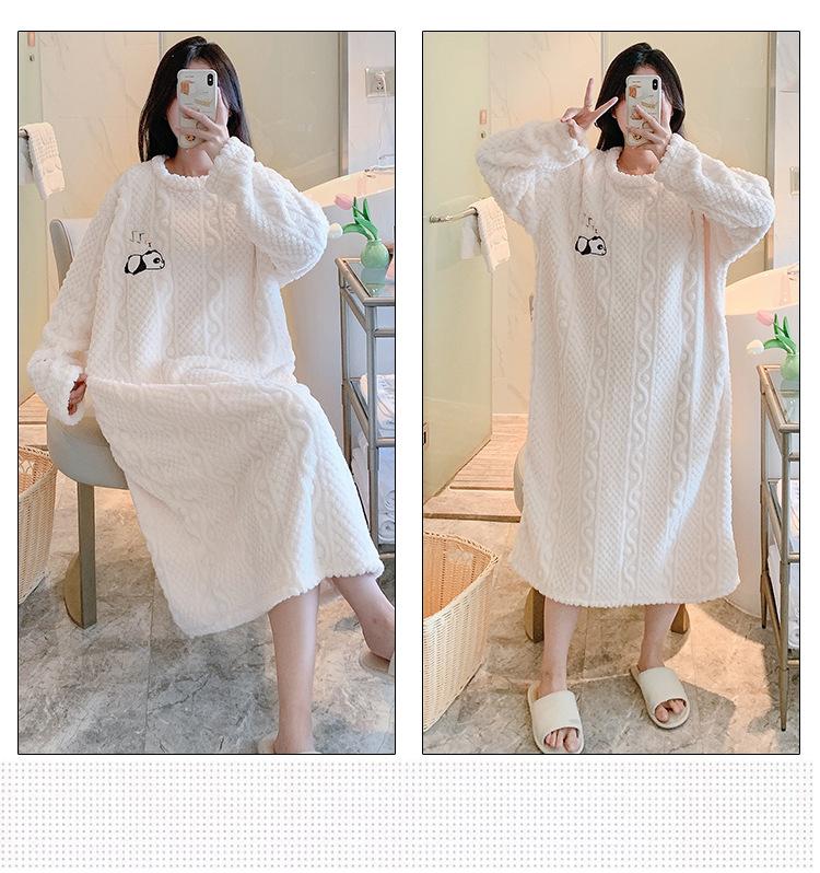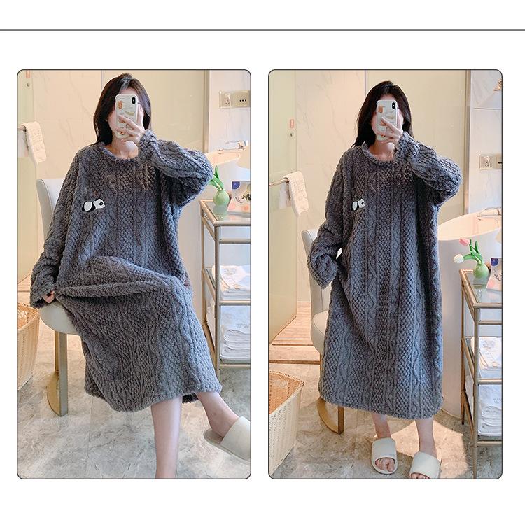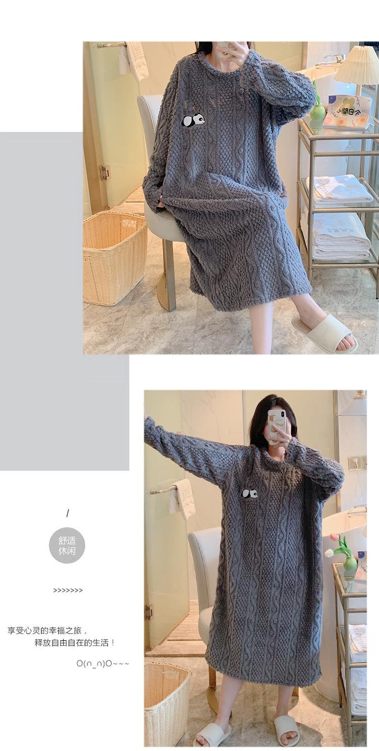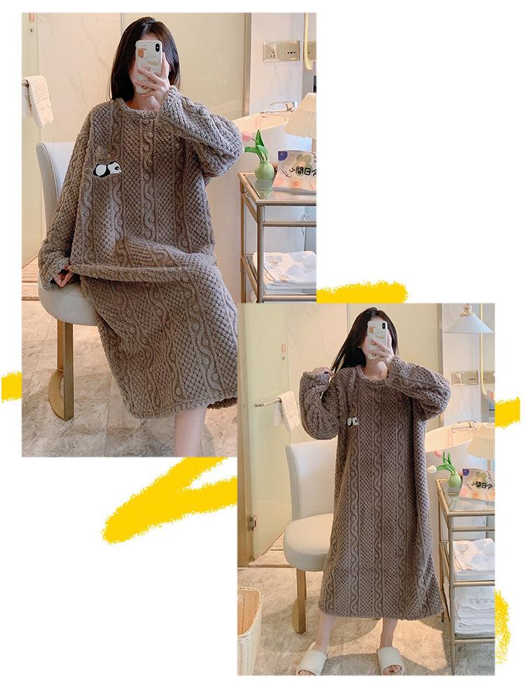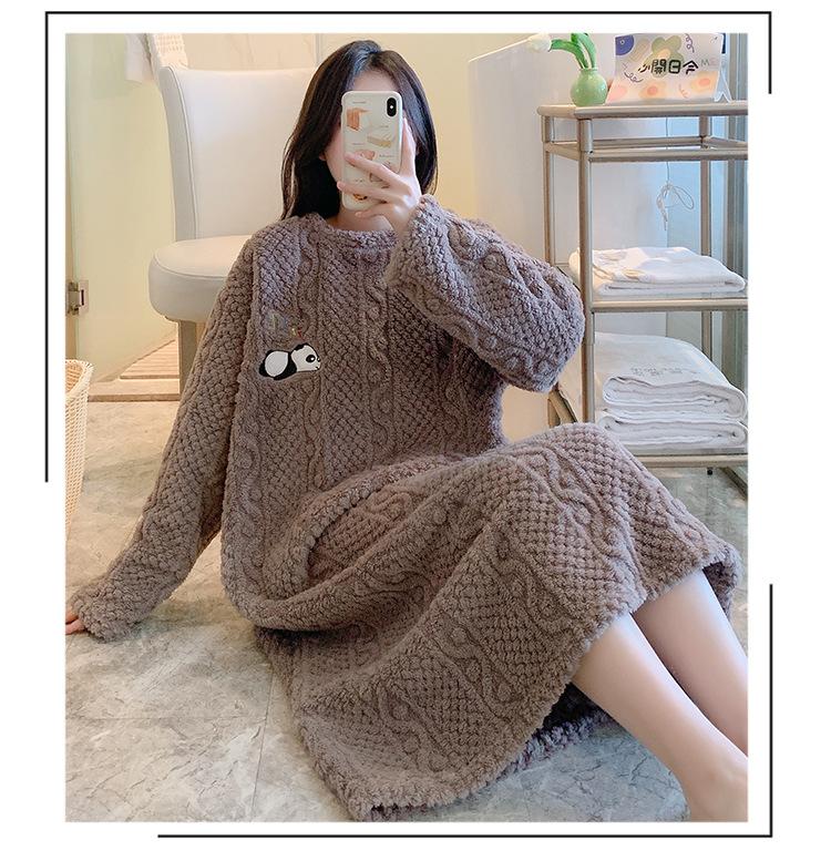 Camisón de vellón coral para mujer, forro polar de invierno, grueso, estilo princesa dulce, lindo pijama de felpa para mujer, jacquard, largo medio