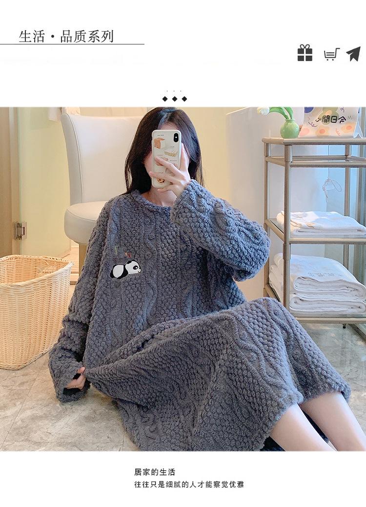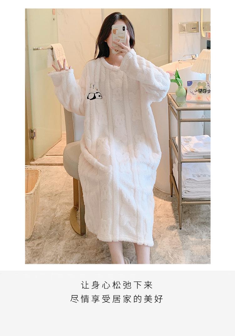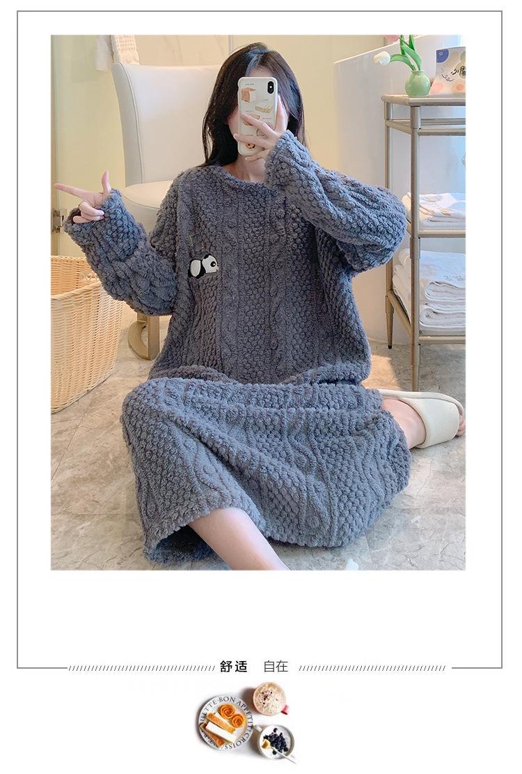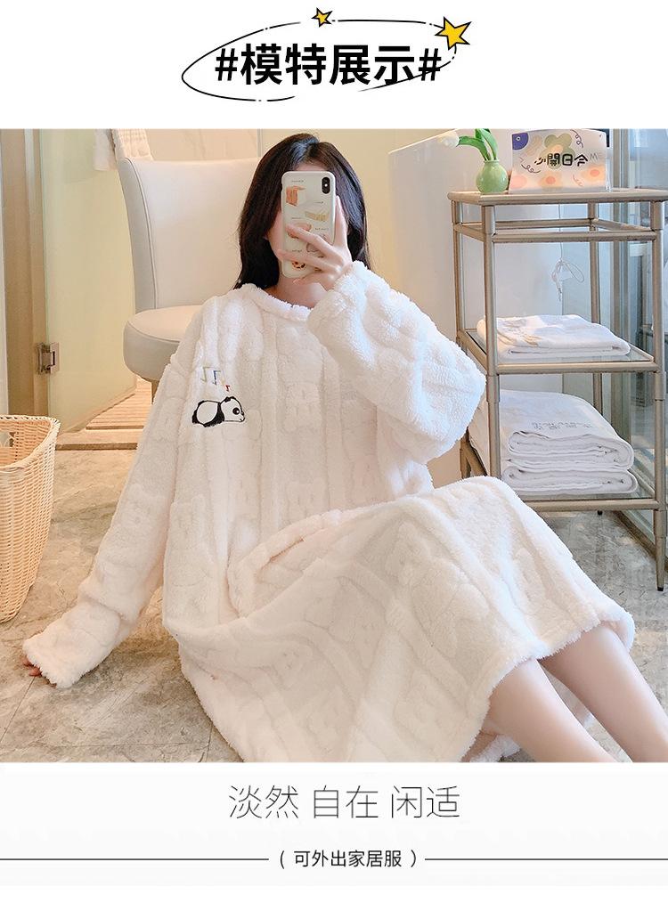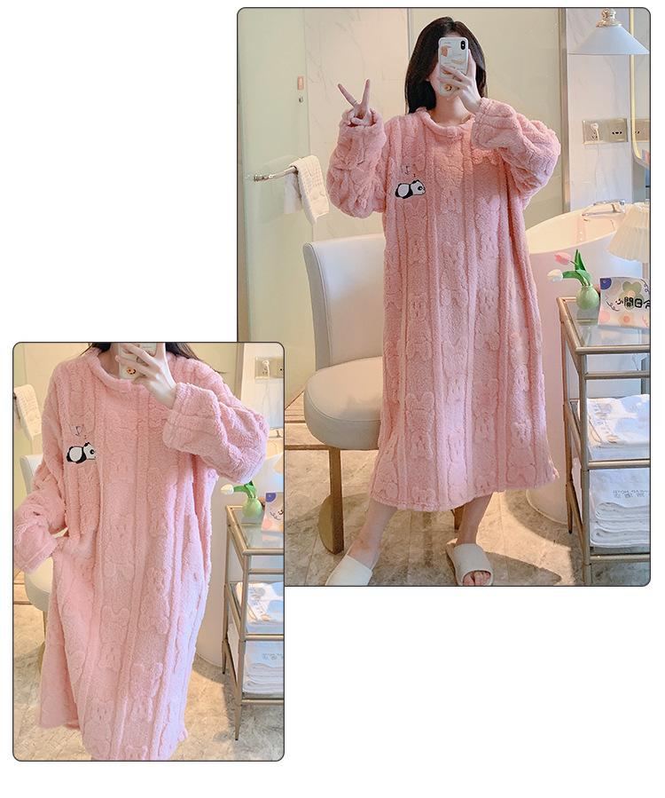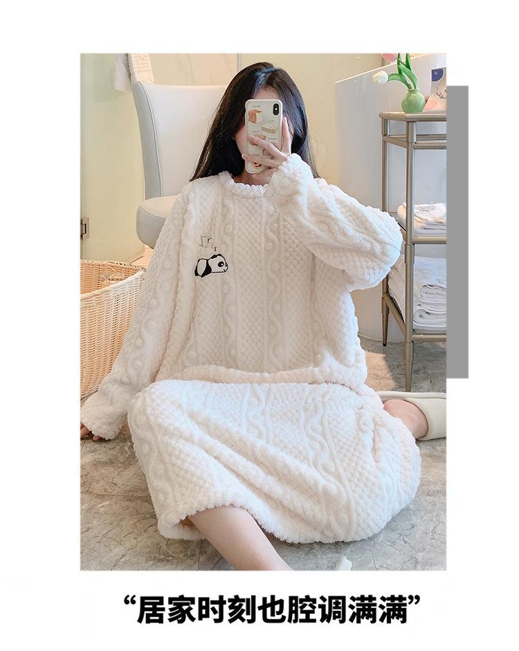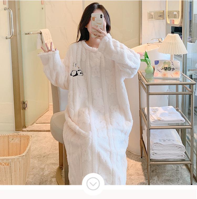 Camisón de vellón coral para mujer, forro polar de invierno, grueso, estilo princesa dulce, lindo pijama de felpa para mujer, jacquard, largo medio