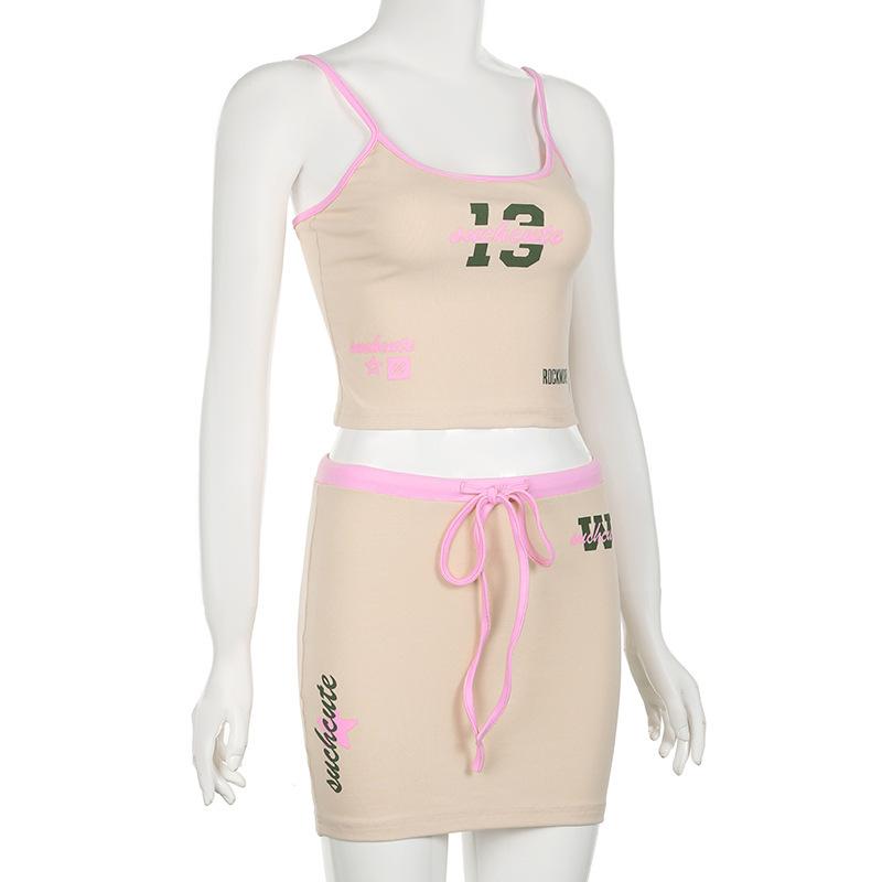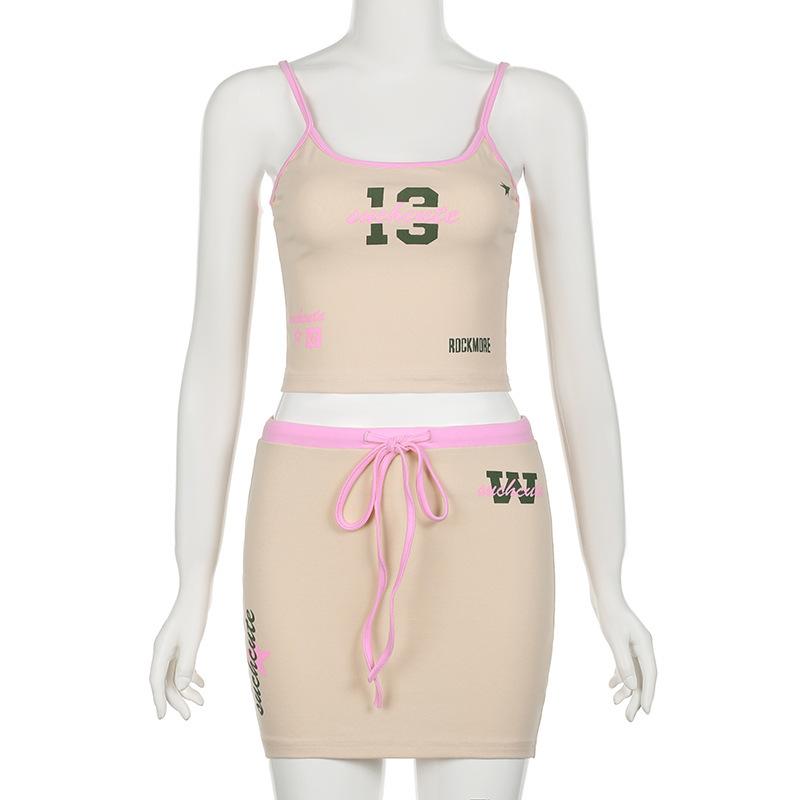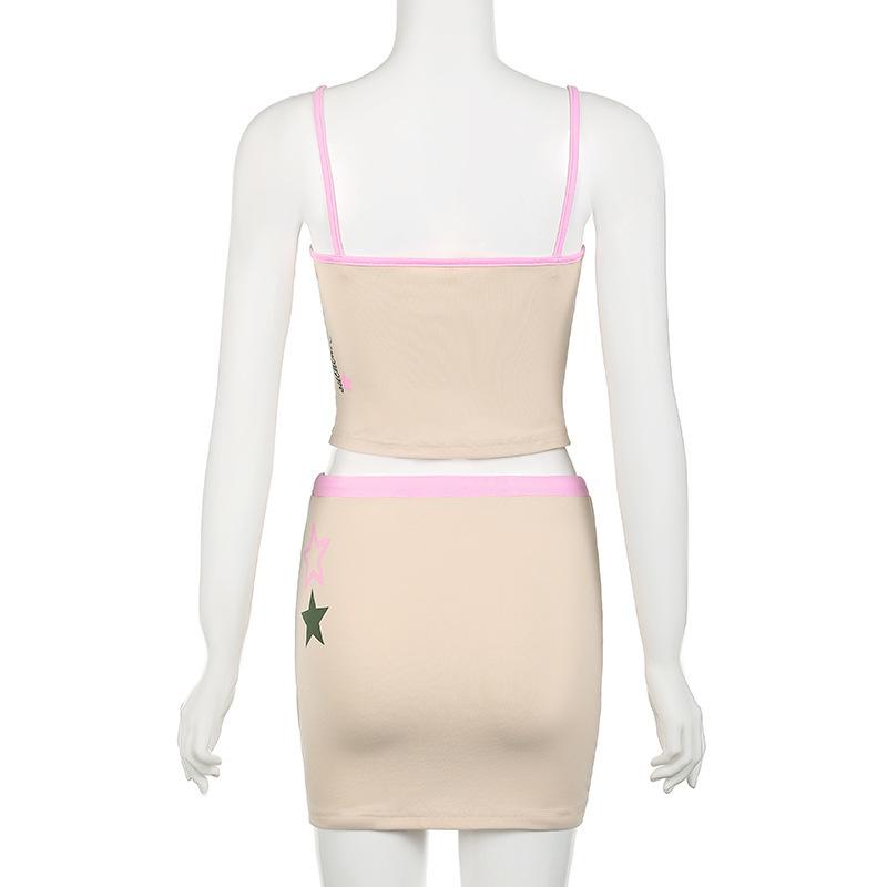 2025 Verano Estilo Americano Vacaciones Camisola Estampada Falda Traje de Falda Top de Chica Caliente para Mujer