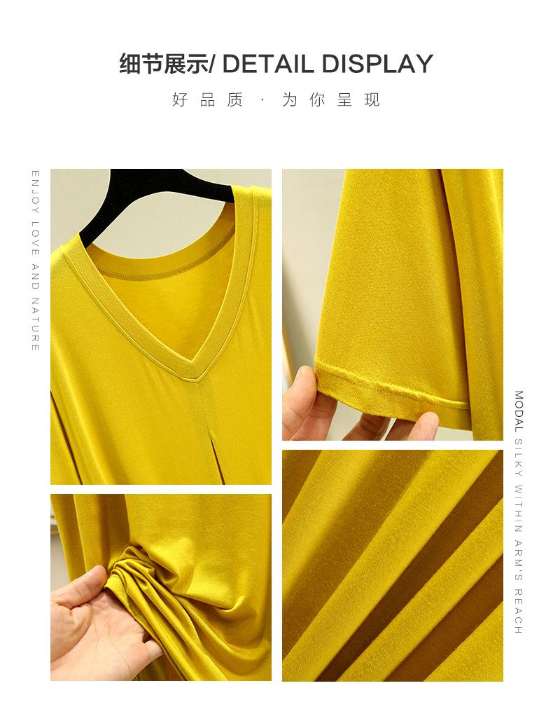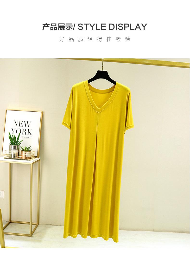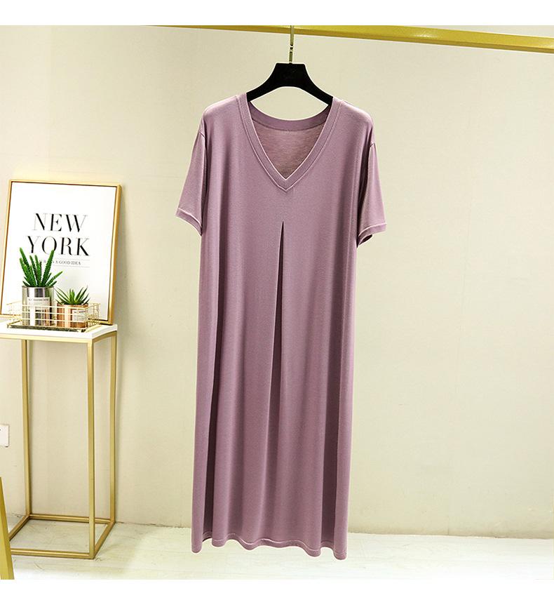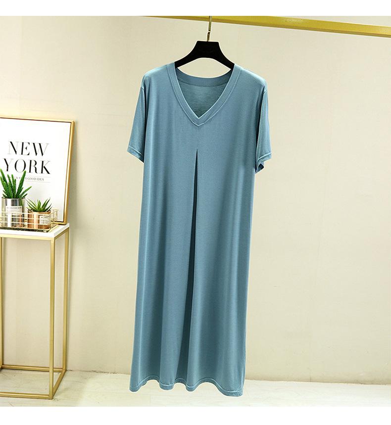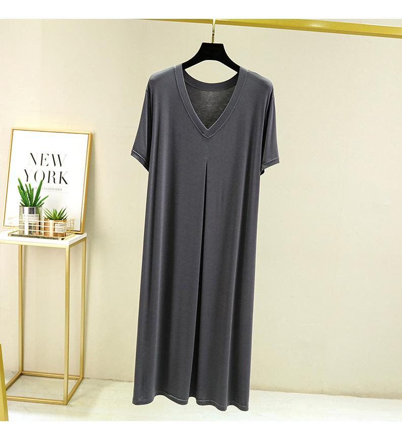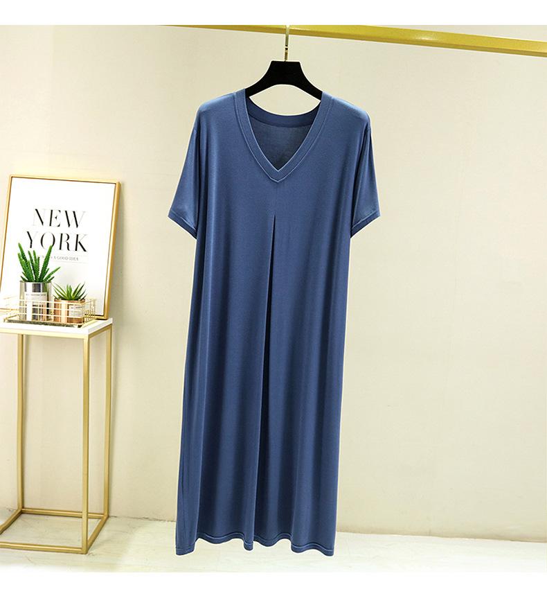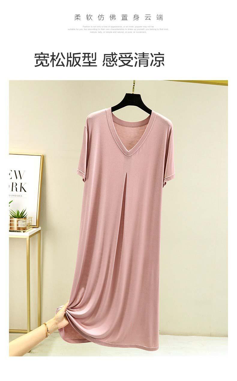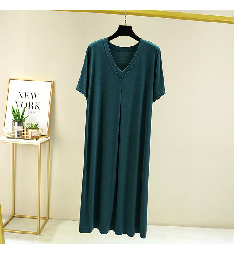 Camisón Modal para Mujer Verano Talla Grande Vestido Holgado Cuello en V Largo Medio Falda Línea A Fino Hogar Nuevo Estilo Falda