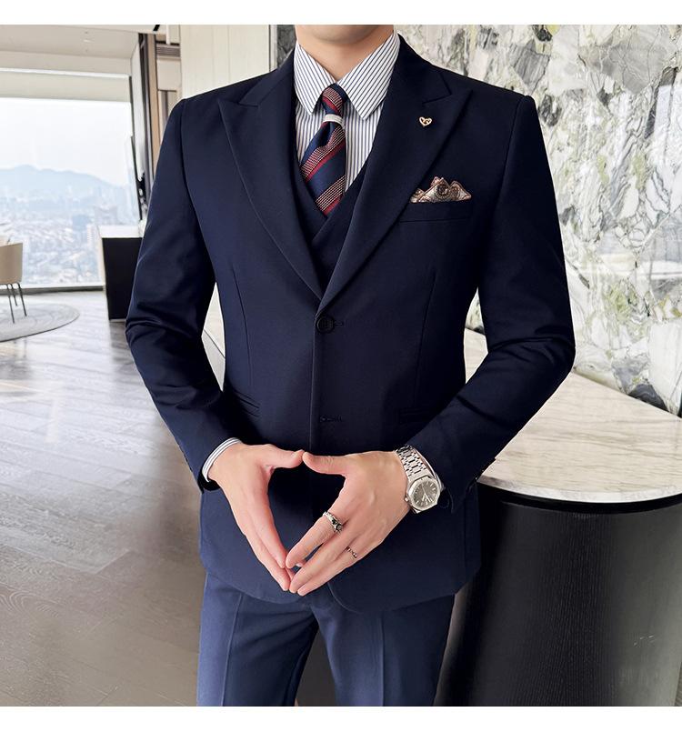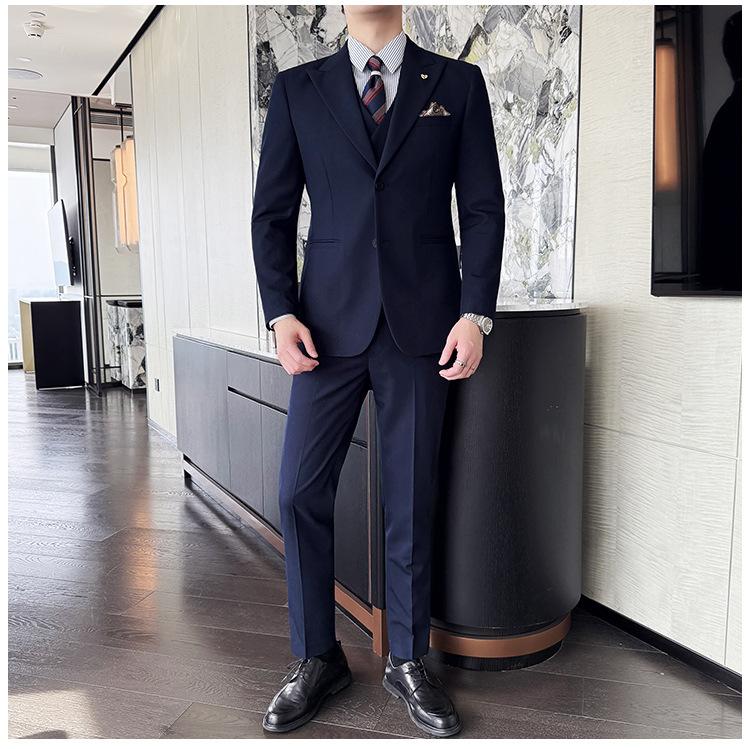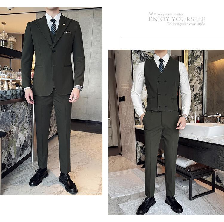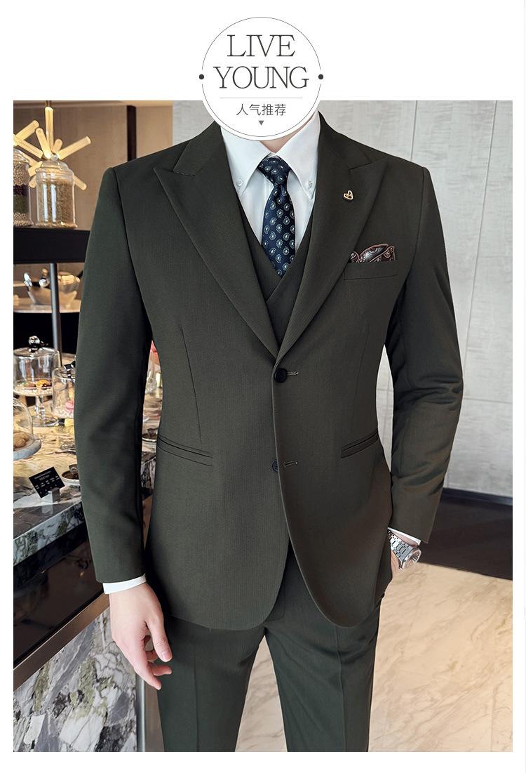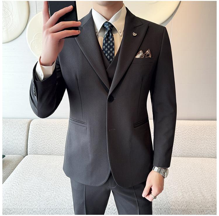 Traje de color liso para hombre, traje para hombre 2025, nuevo traje informal de negocios de corte entallado para novio de boda, chaqueta, conjunto de tres piezas