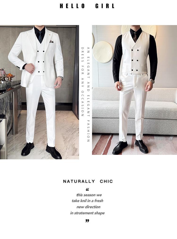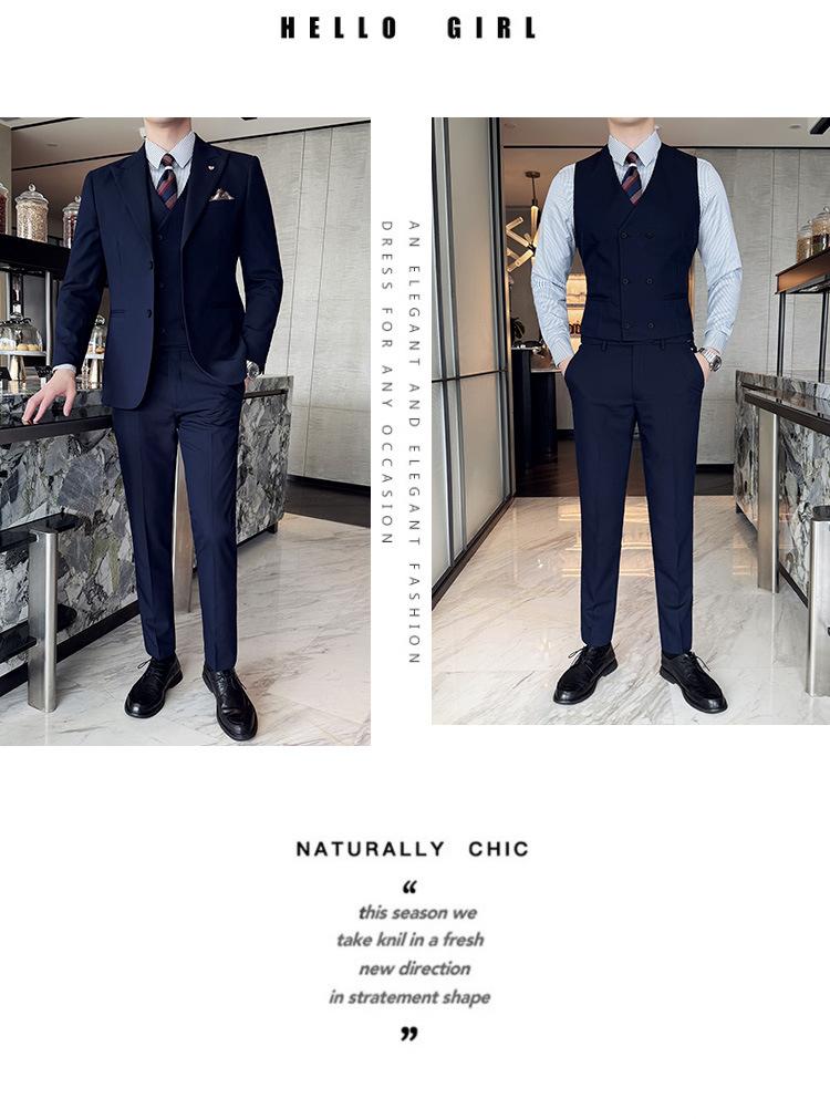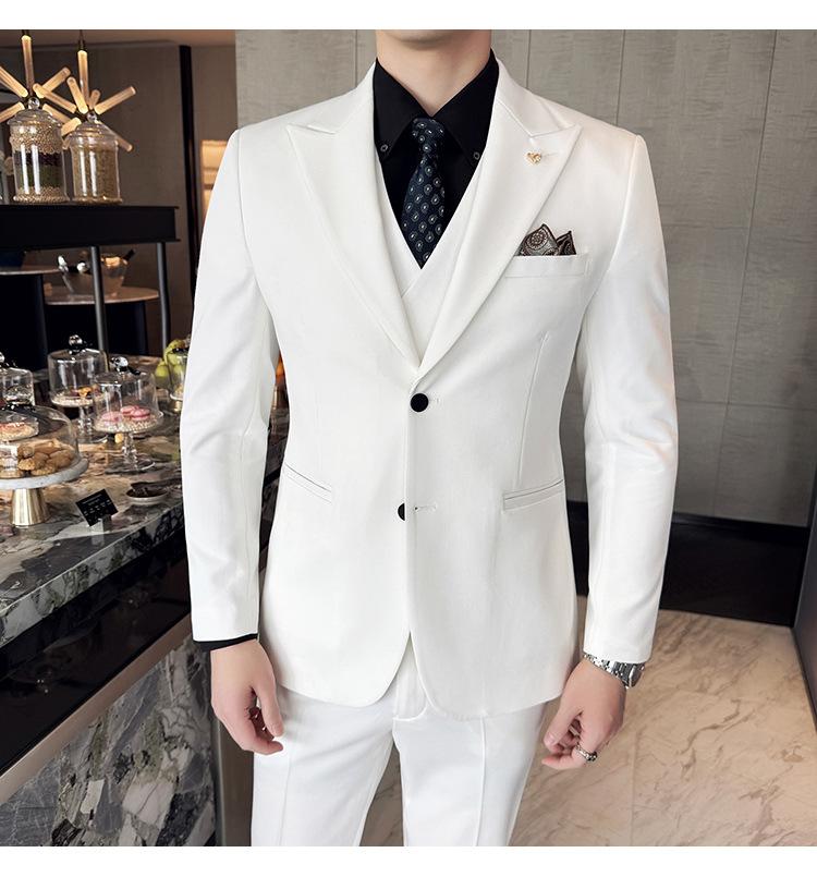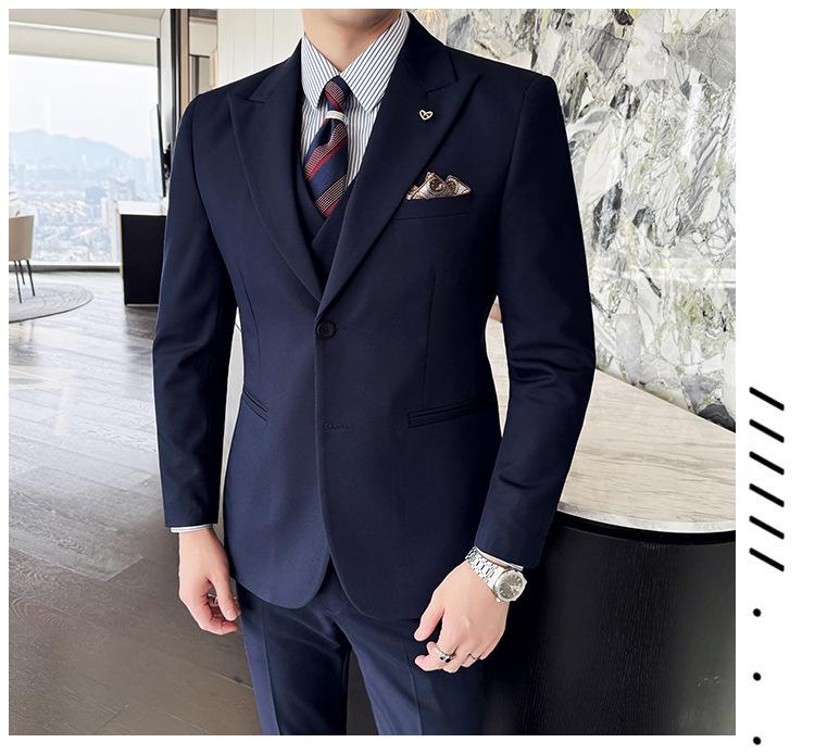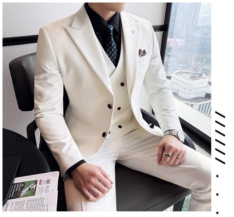 Traje de color liso para hombre, traje para hombre 2025, nuevo traje informal de negocios de corte entallado para novio de boda, chaqueta, conjunto de tres piezas