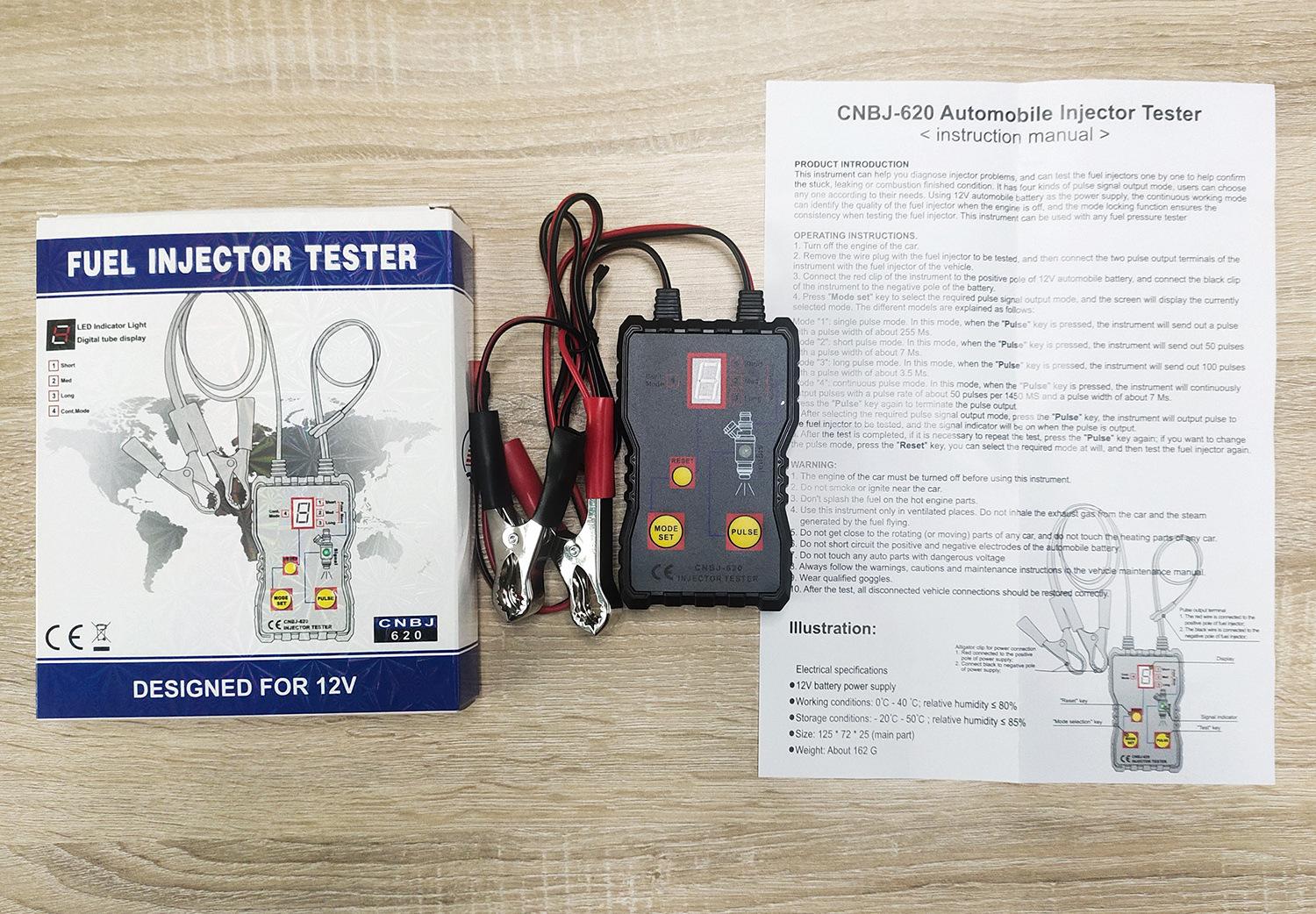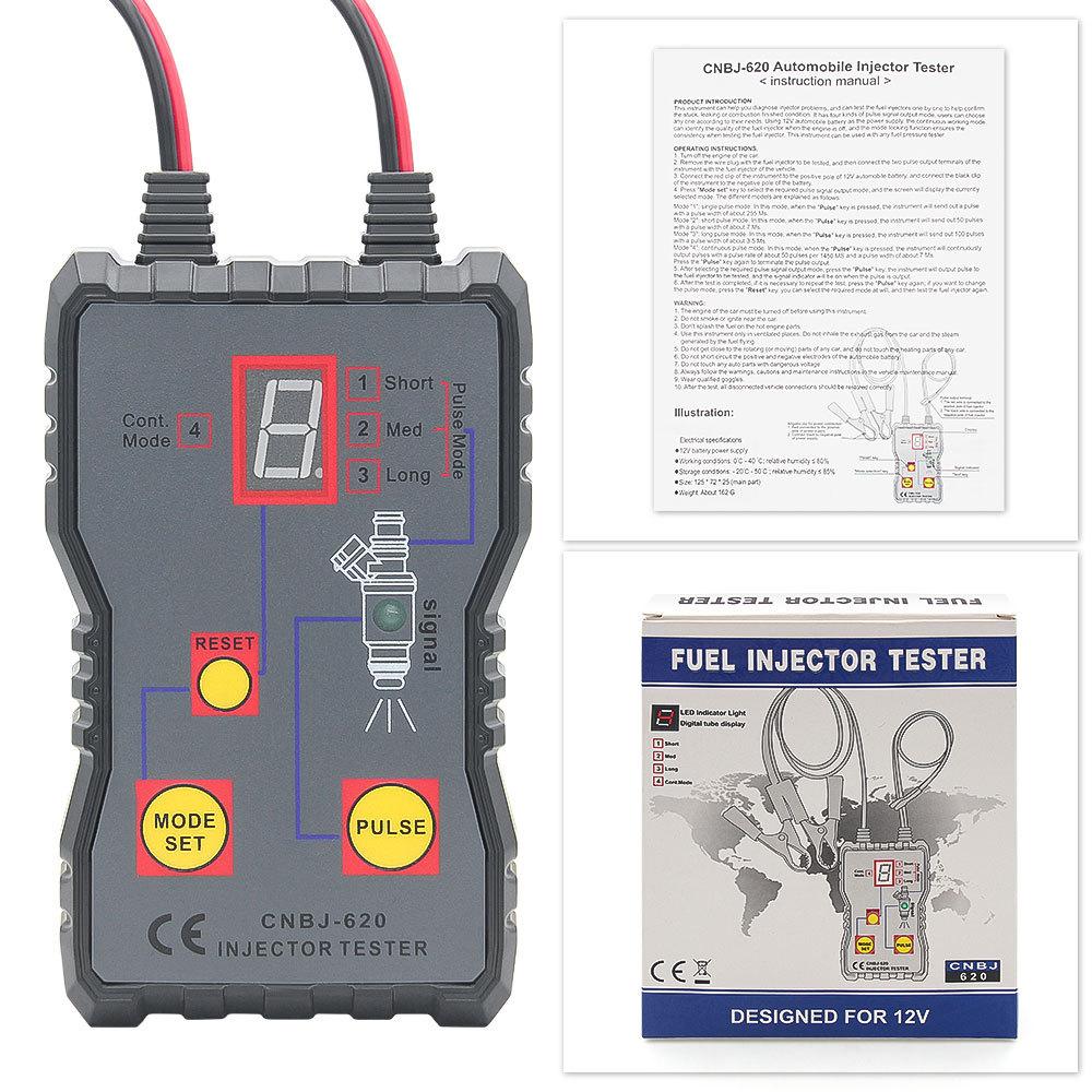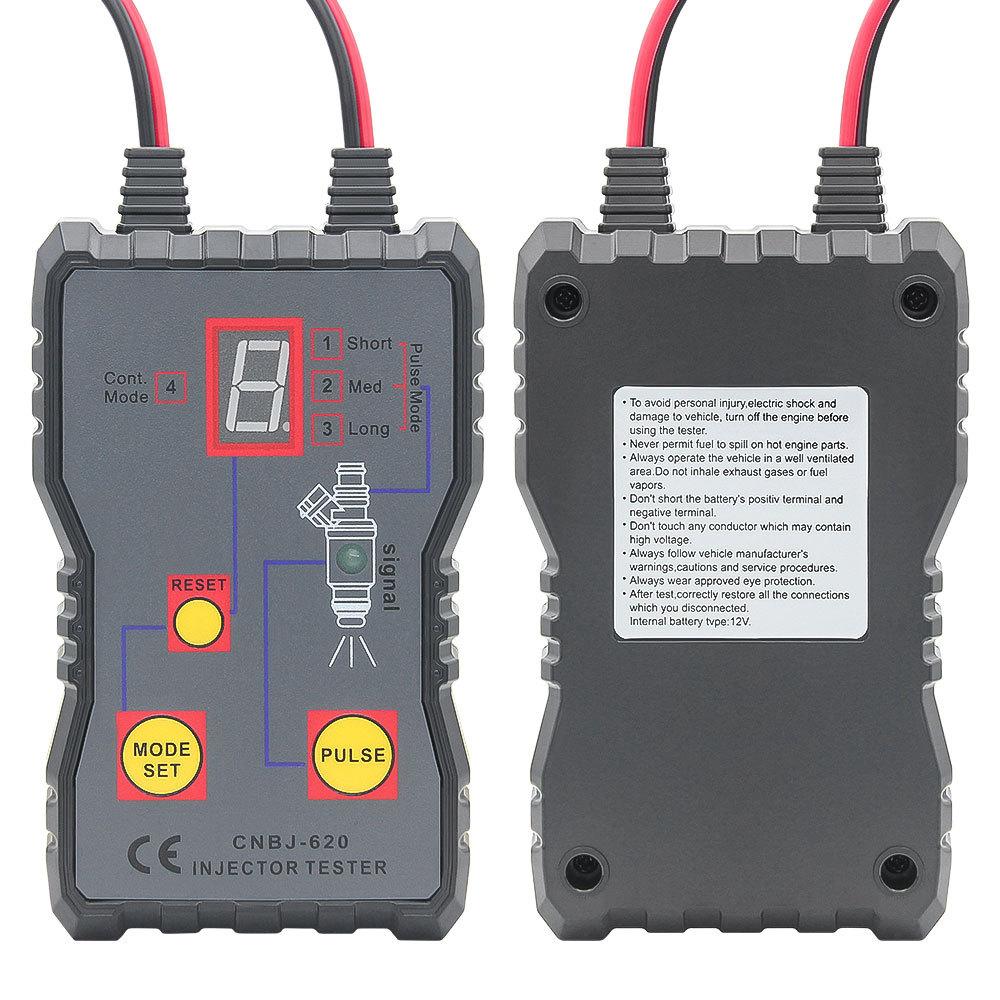 Este instrumento puede ayudarle a diagnosticar problemas de inyectores. Puede probar cada inyector uno por uno para ayudar a confirmar la condición de atascamiento, fuga o quemado. Tiene 4 modos de salida de señal de pulso, y el usuario puede elegir uno según las necesidades. Usando la batería de coche de 12V del vehículo como fuente de alimentación, el modo de trabajo continuo puede identificar la calidad del inyector cuando el motor está apagado, y la función de bloqueo de modo asegura la consistencia al probar el inyector. Este instrumento se puede utilizar con cualquier probador de presión de combustible.