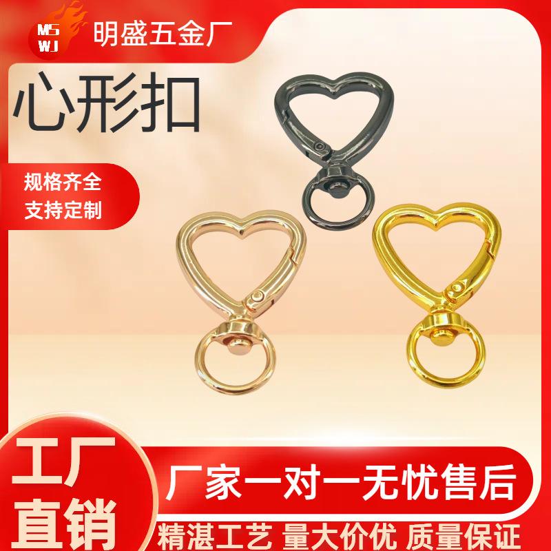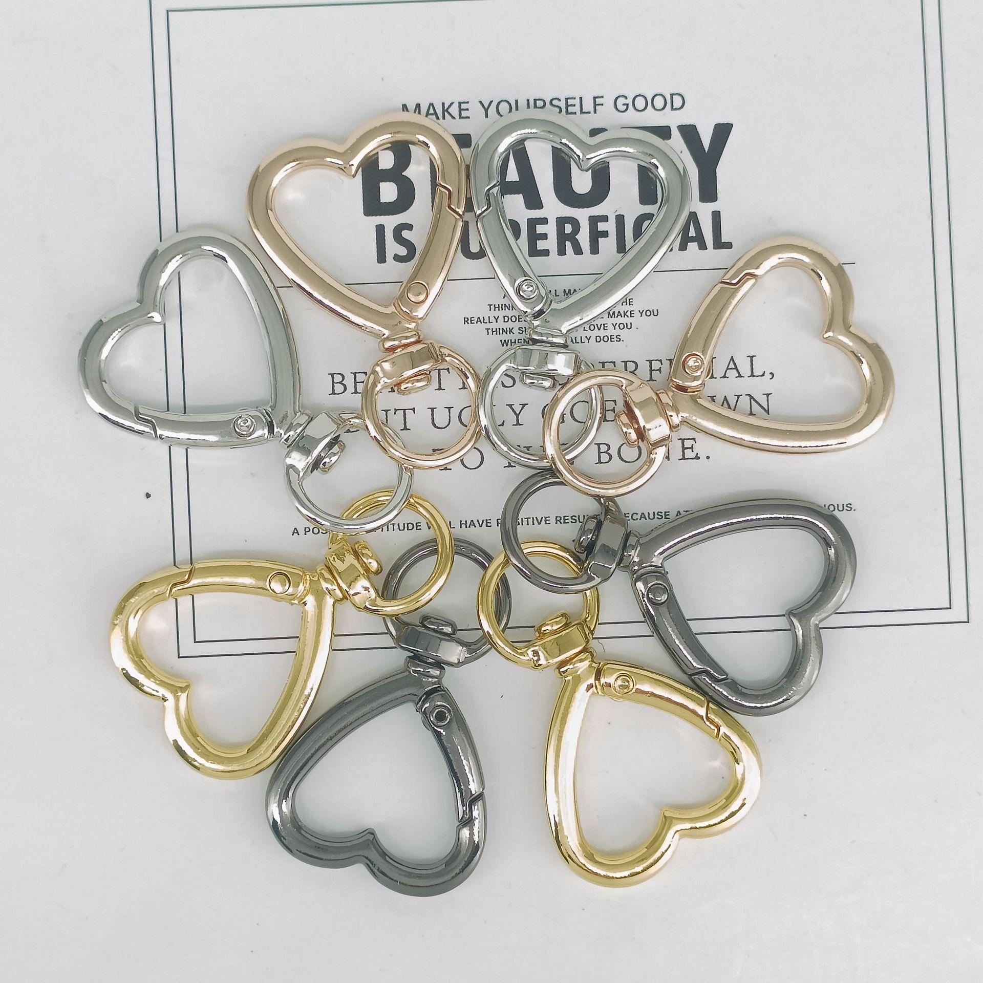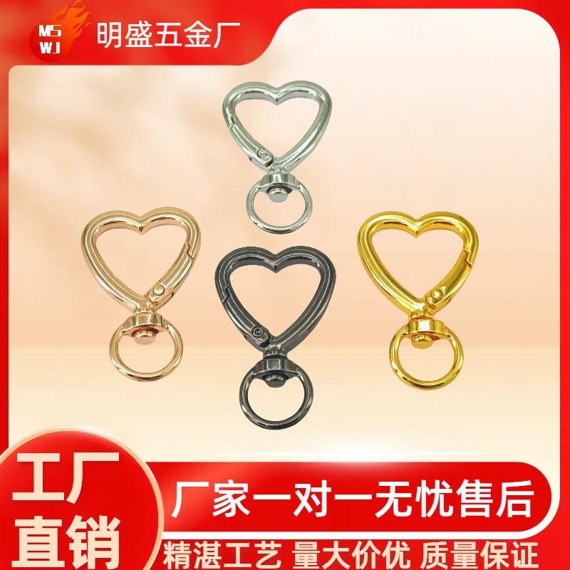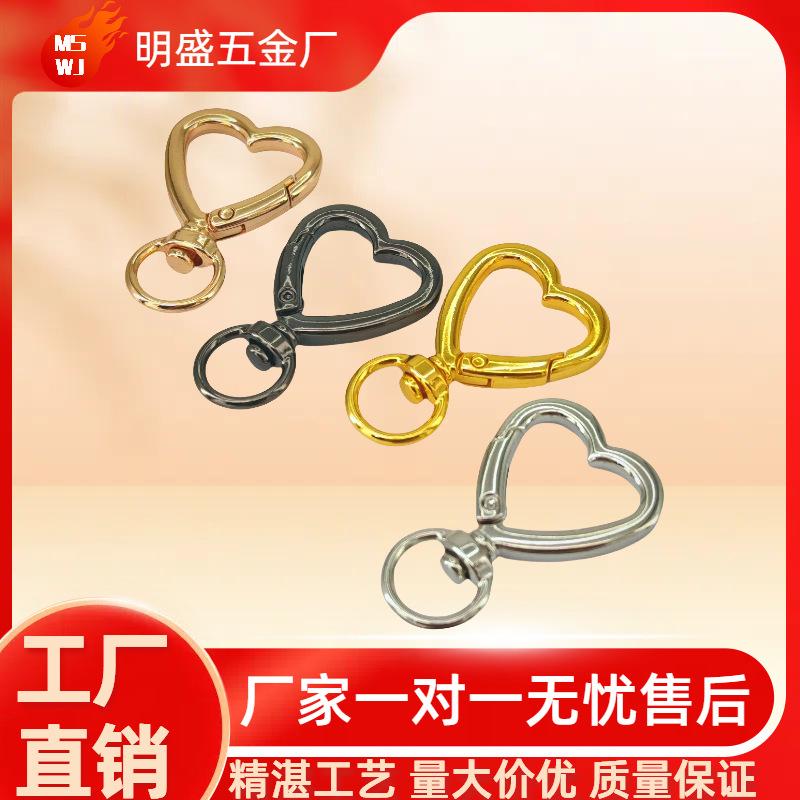 Hebilla de gancho con forma de corazón giratorio de aleación de zinc, color rojo melocotón, con apertura en forma de corazón, anillo de resorte, hebilla de conexión de 3 puntos, accesorios de hardware para equipaje