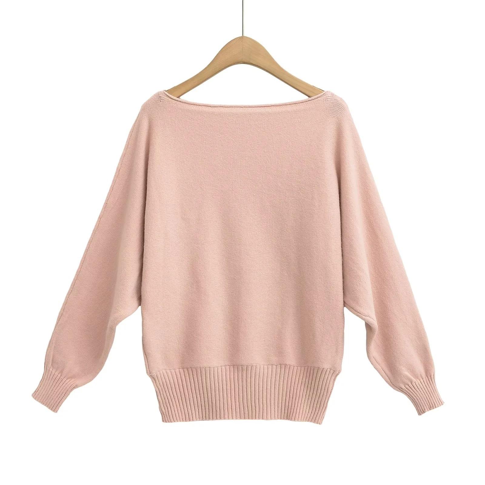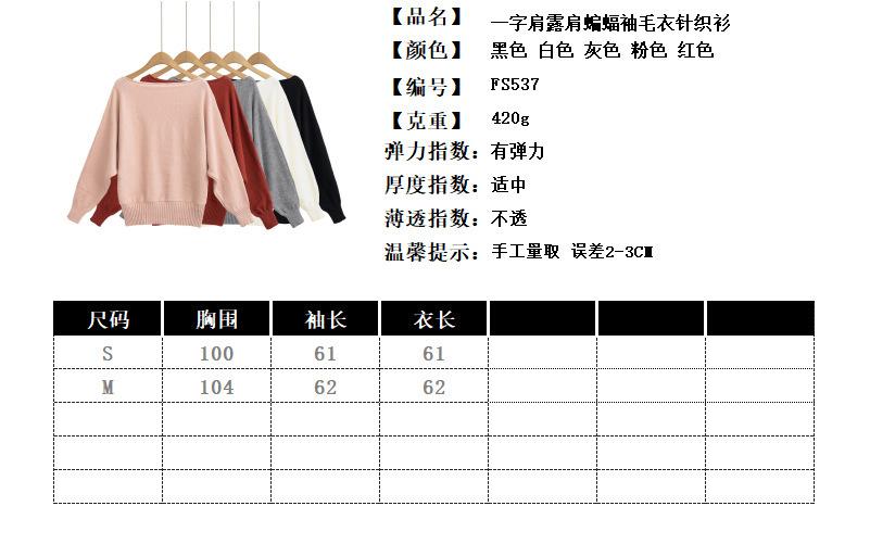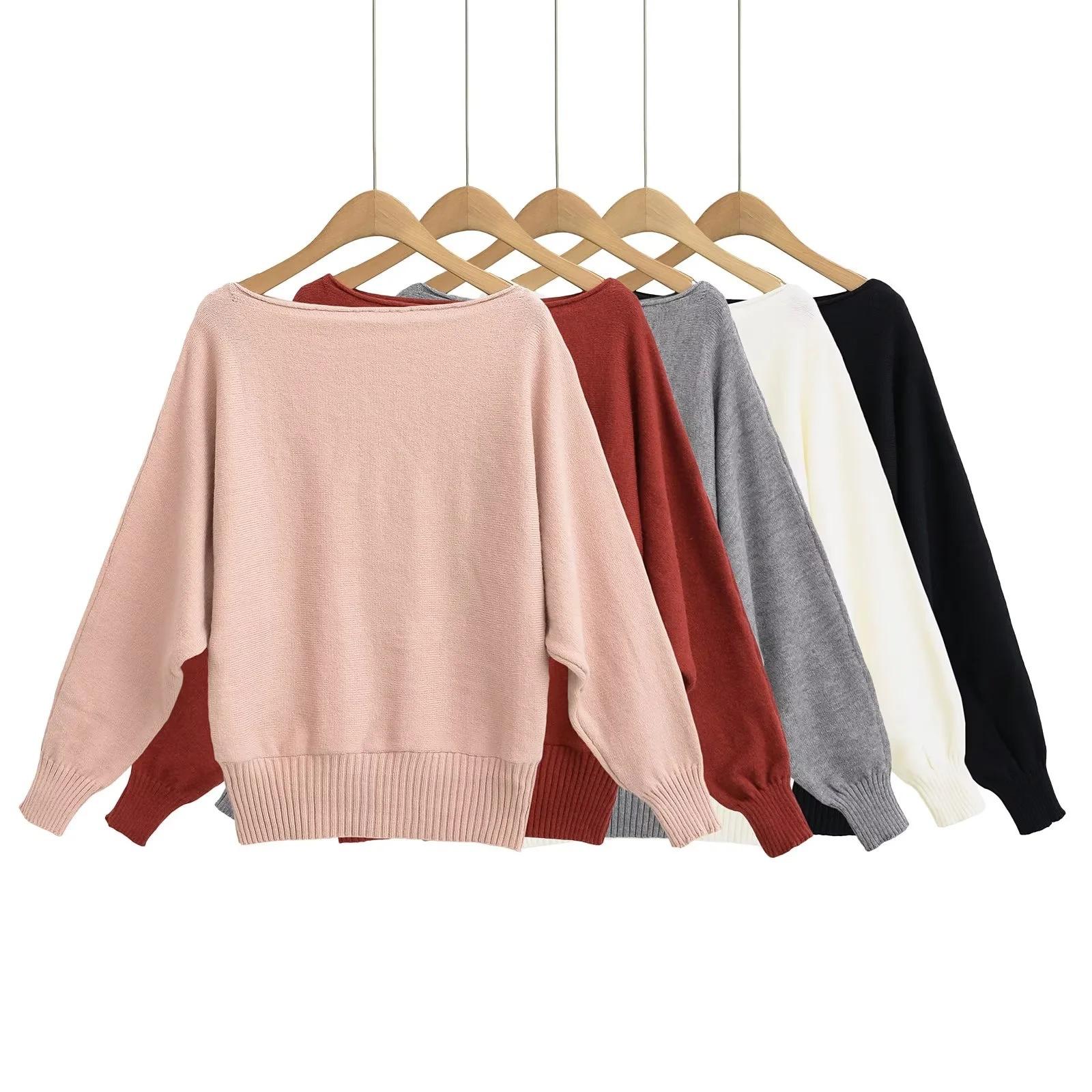 Compra Suéter holgado con mangas murciélago y hombros descubiertos para chicas sexys de estilo perezoso 2024, top de punto con hombros descubiertos para mujer al por mayor en Joom.pro