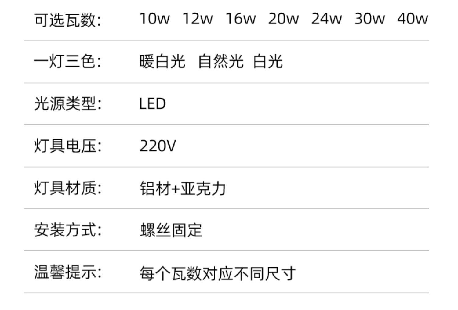 Light rainproof model-White- 0.5m -10W-three-tone lighting, Slight rainproof model-White- 0.6m -12W-three-tone...