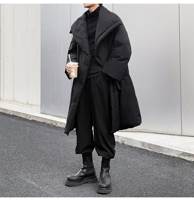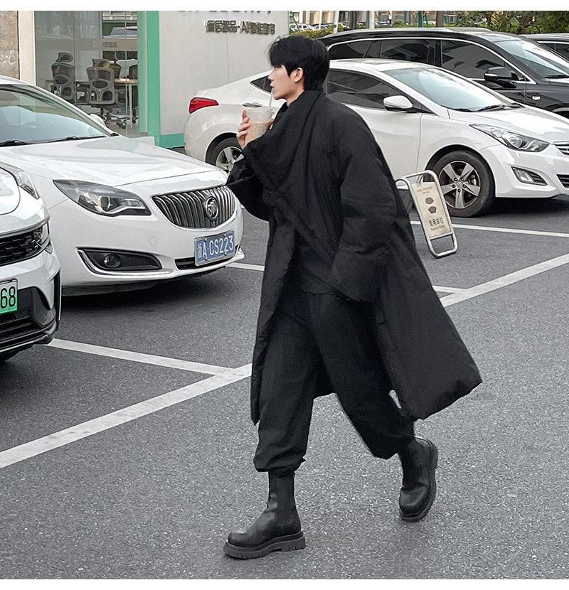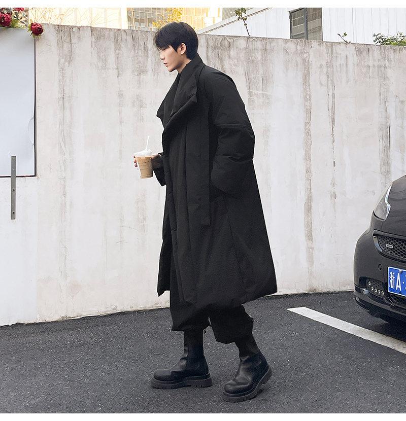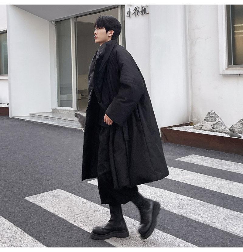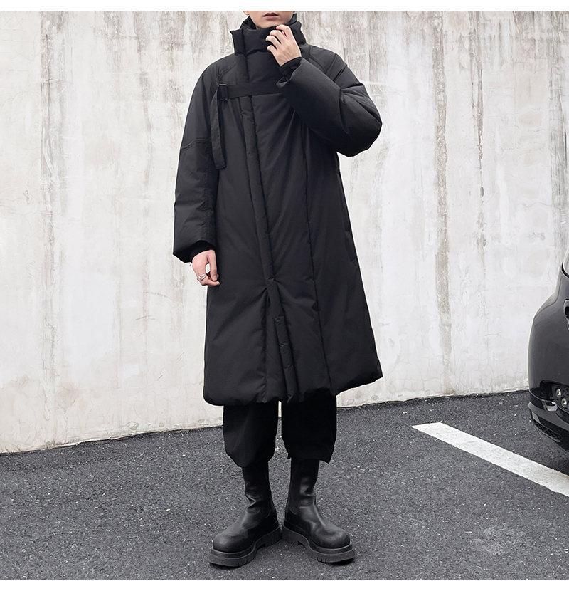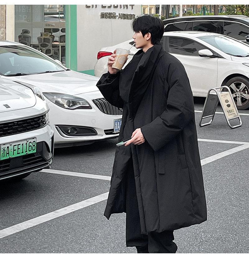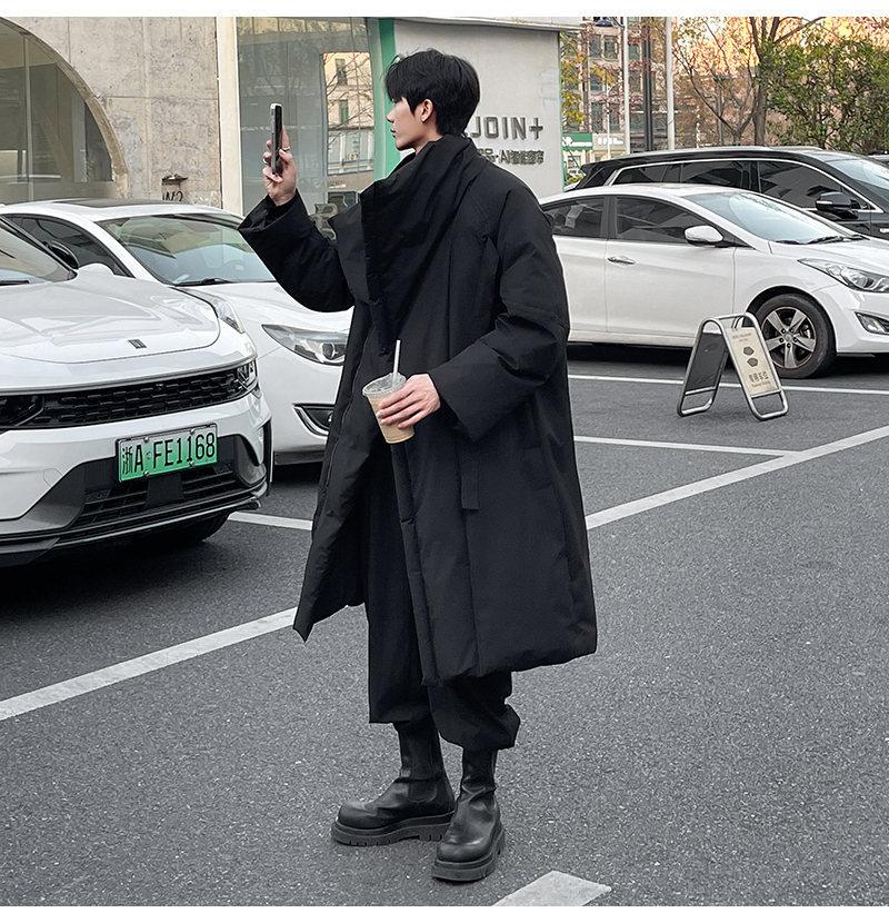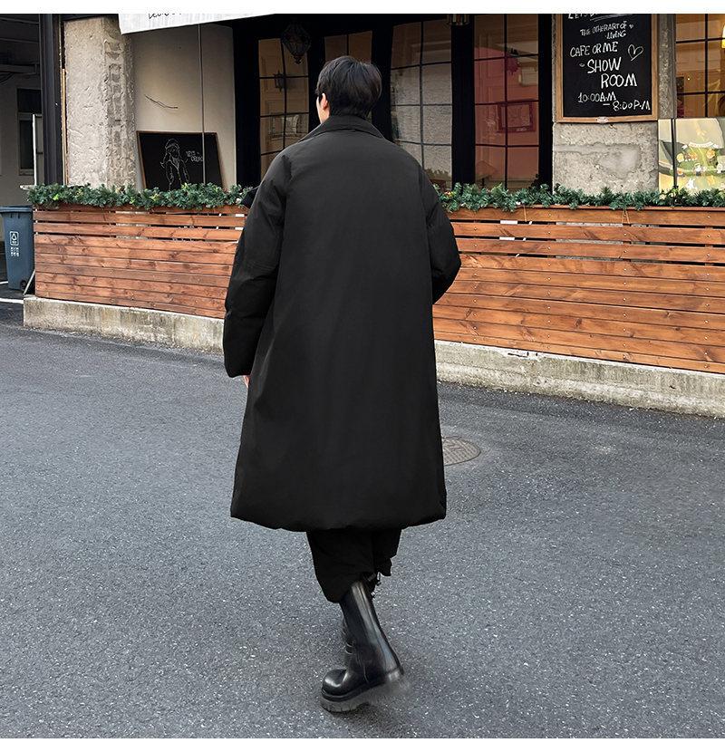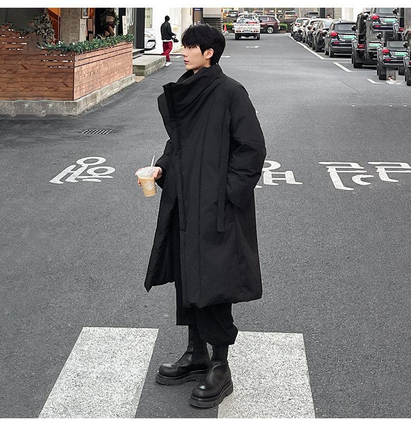 Invierno nuevo abrigo acolchado de algodón grueso con cuello alto para hombre, largo medio, estilo oscuro, juvenil, color sólido, ancho y cálido, abrigo acolchado de algodón para hombre