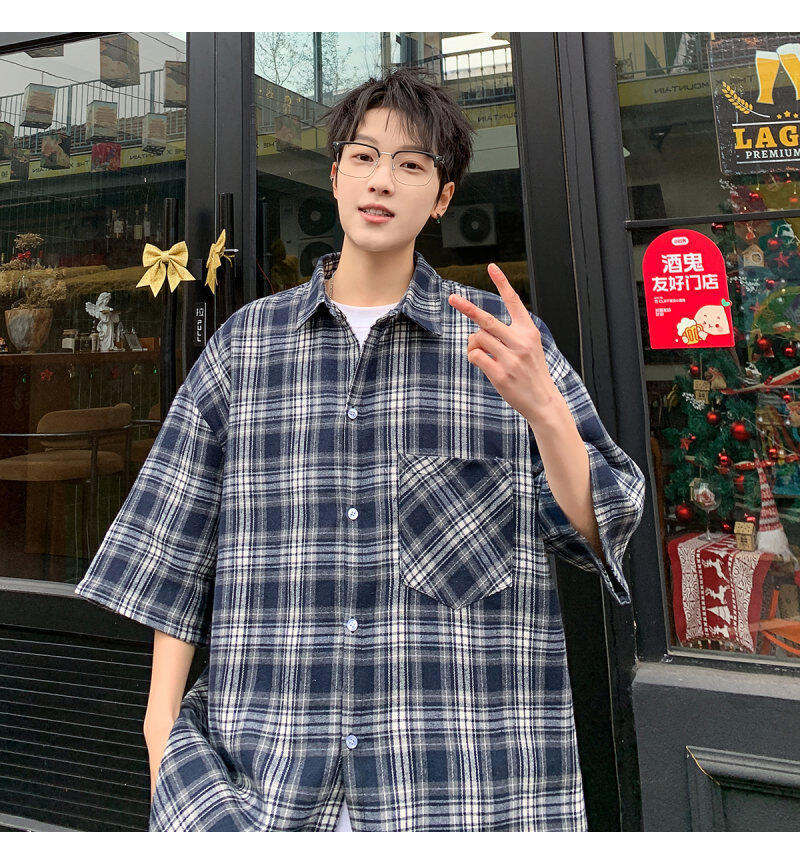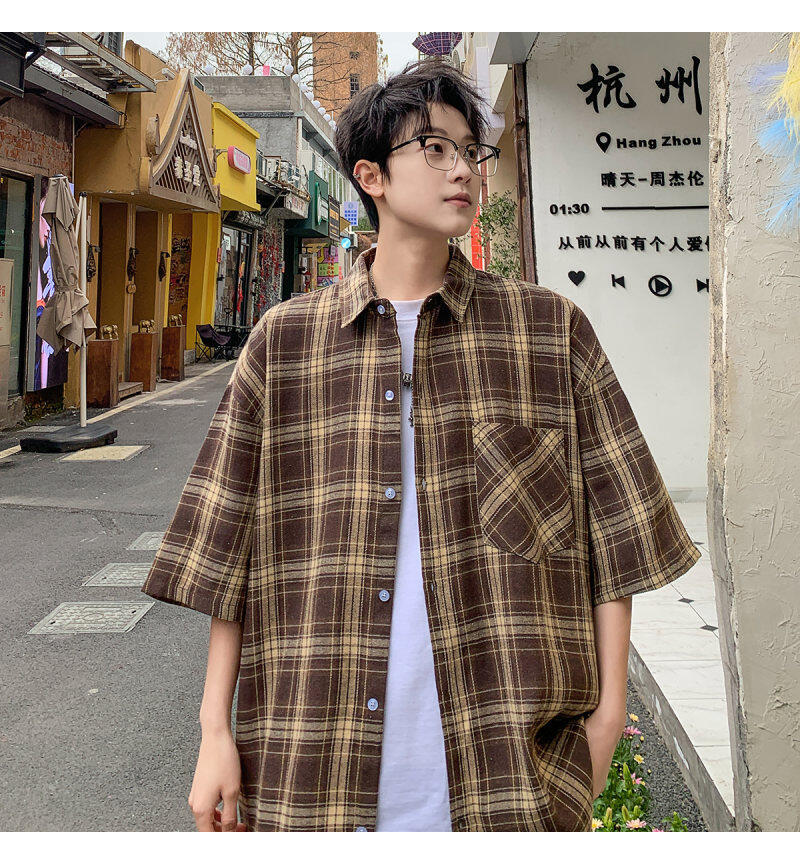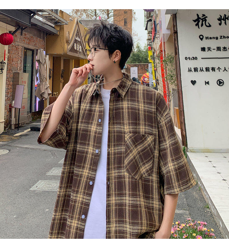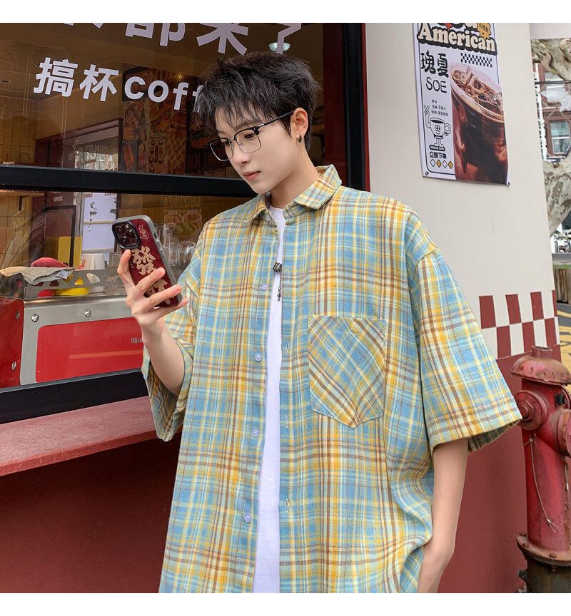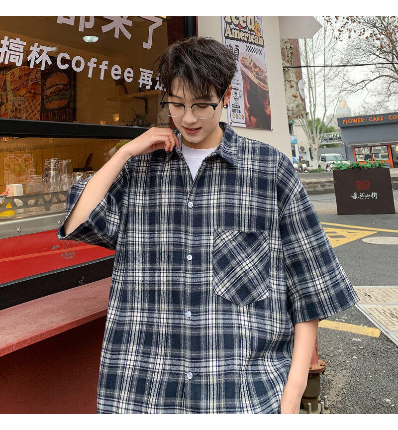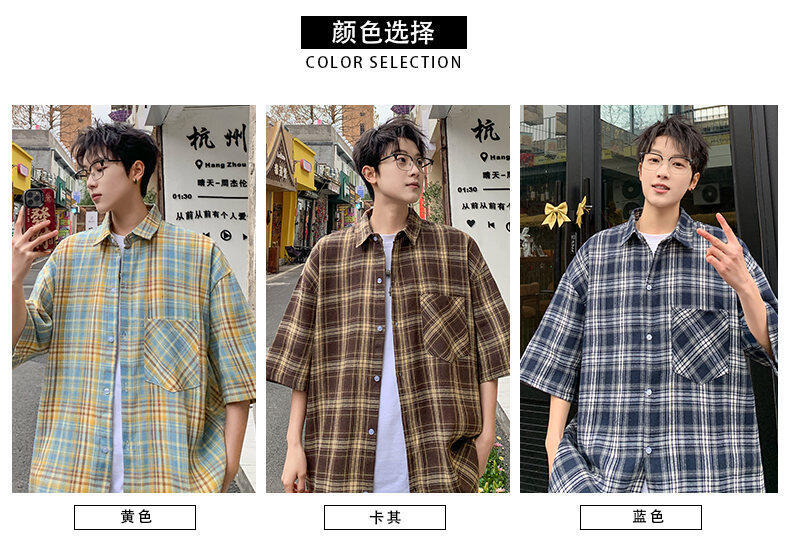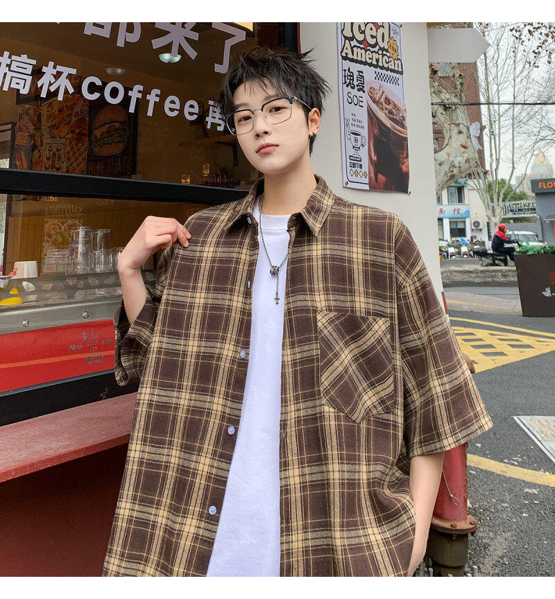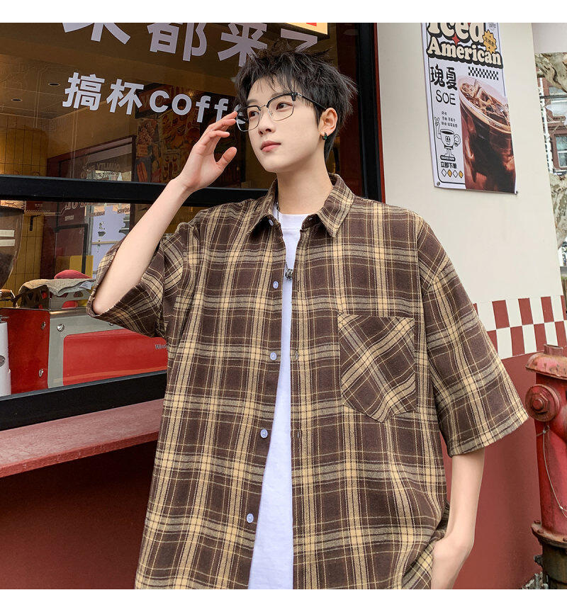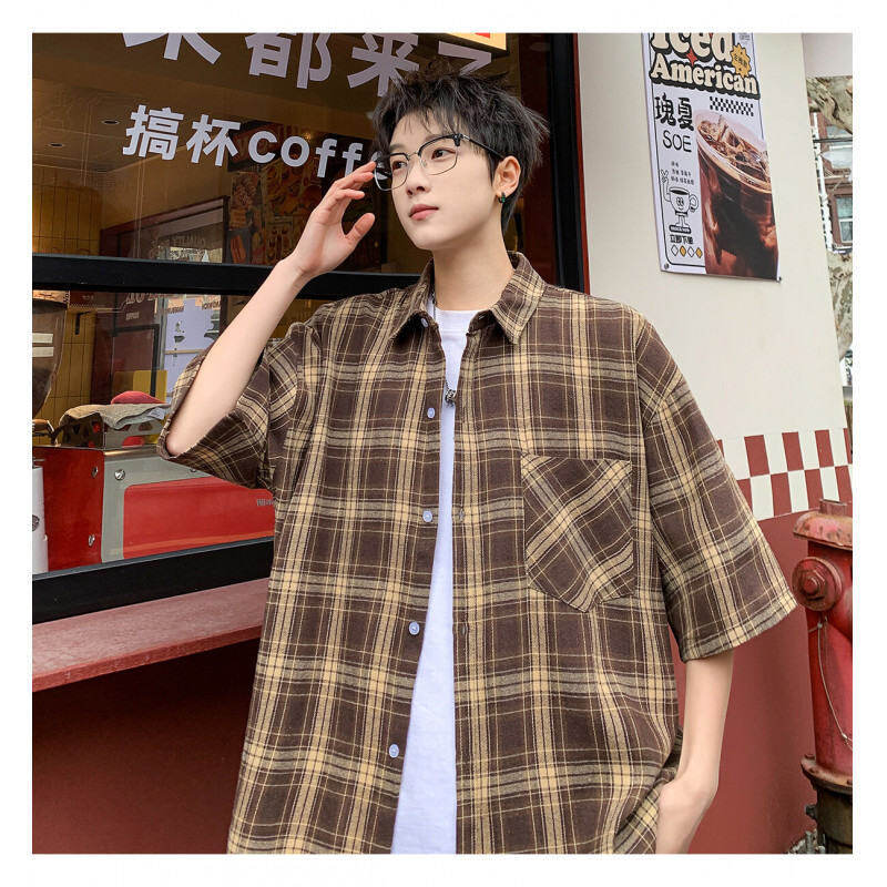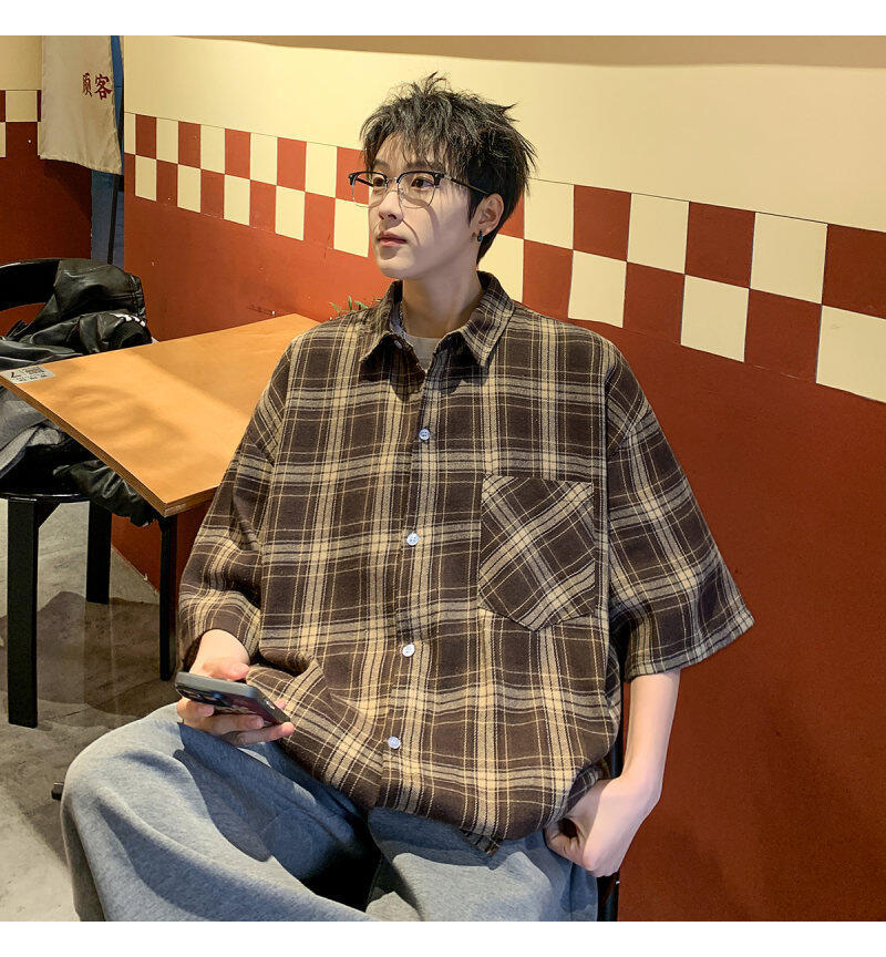 Compra Camisa informal de manga corta para hombre, nueva marca de moda, holgada, de talla grande, con estampado a cuadros, 2025 al por mayor en Joom.pro