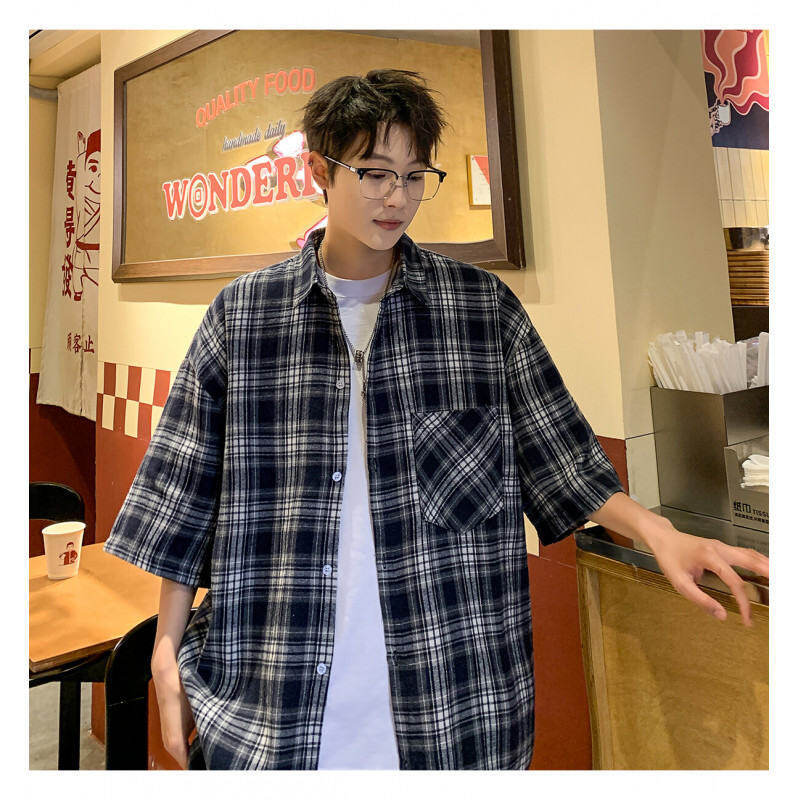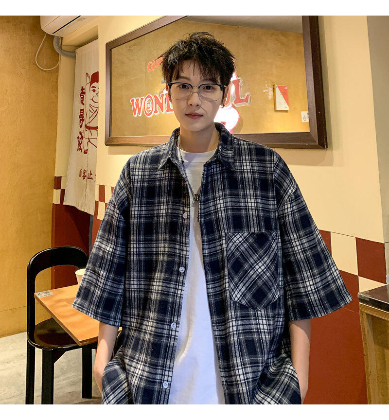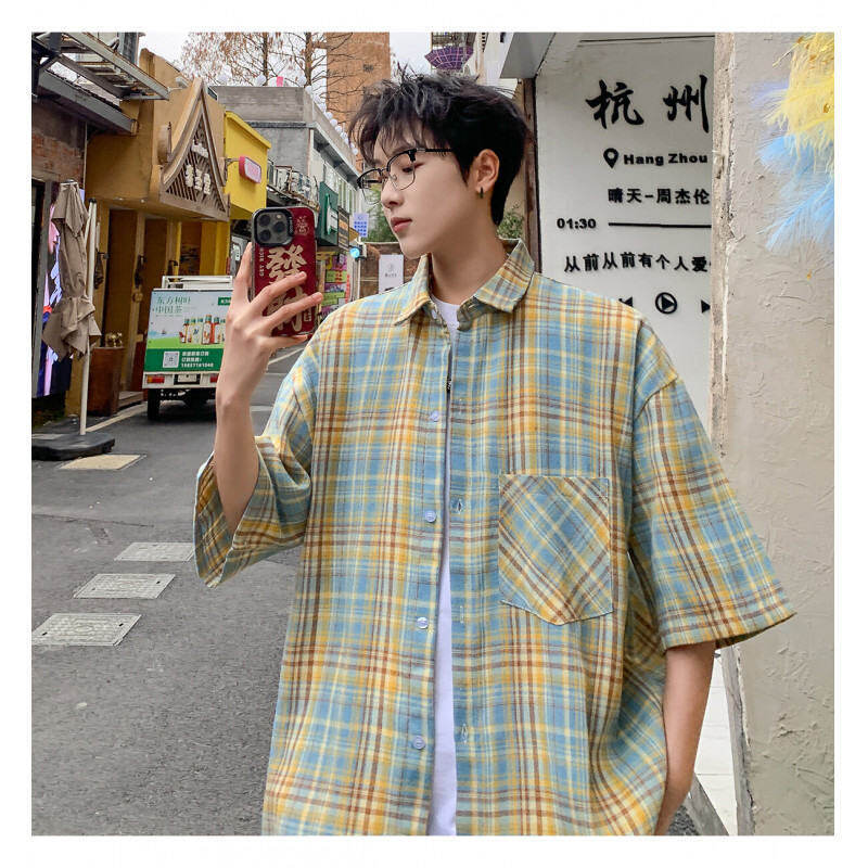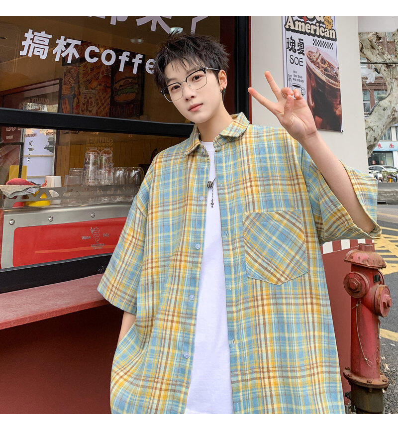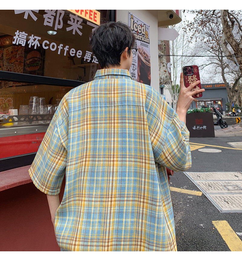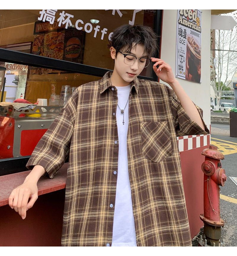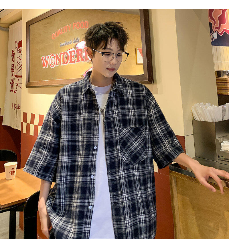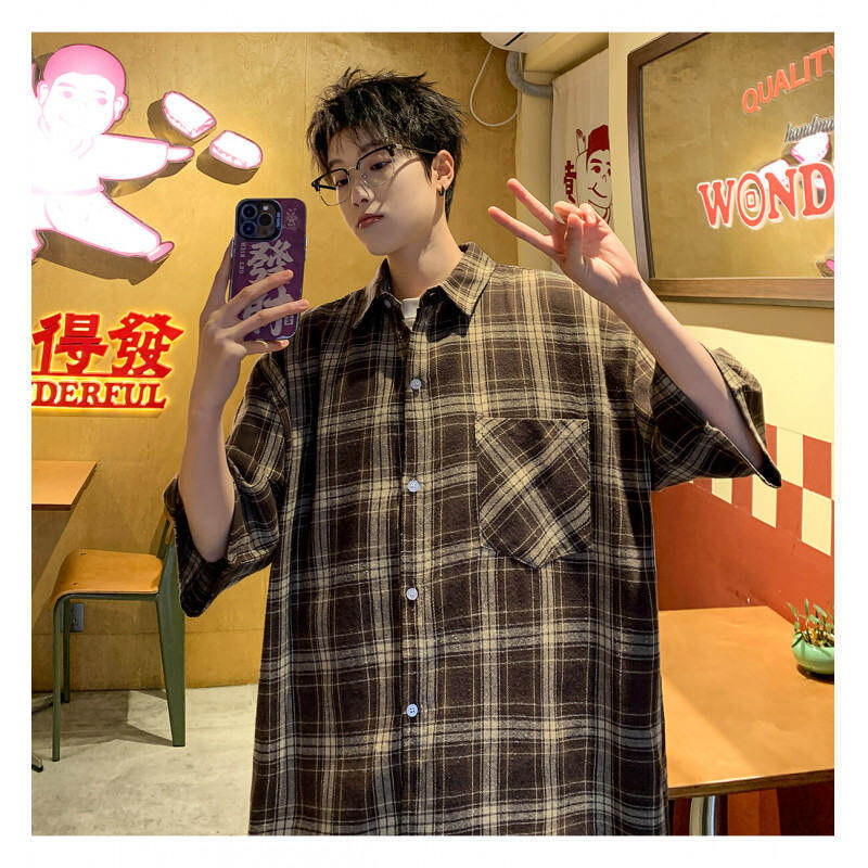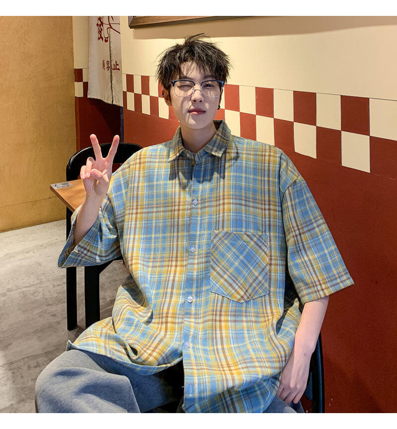 Compra Camisa informal de manga corta para hombre, nueva marca de moda, holgada, de talla grande, con estampado a cuadros, 2025 al por mayor en Joom.pro